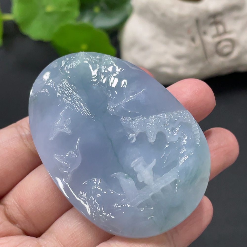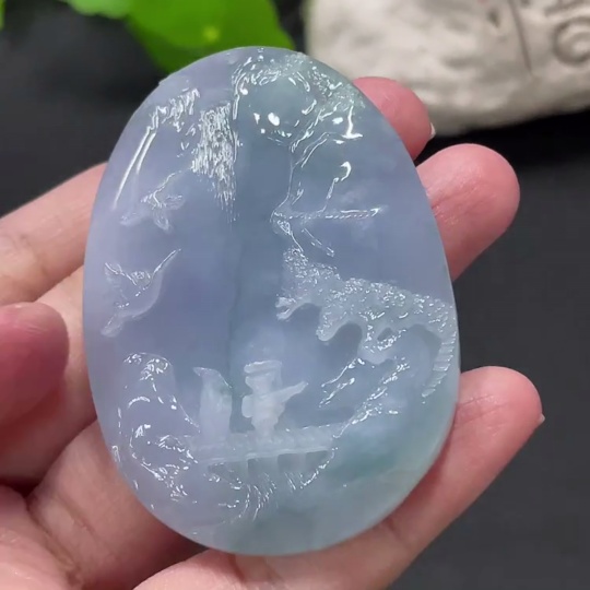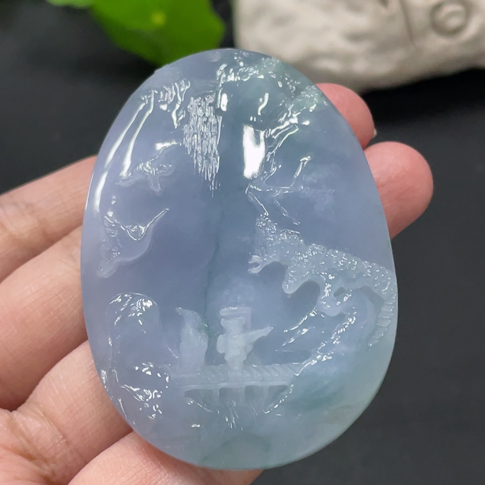Jadeite Landscape Pendant, Total Weight Approx. 50.5g