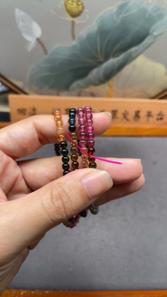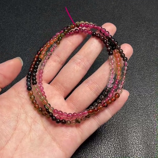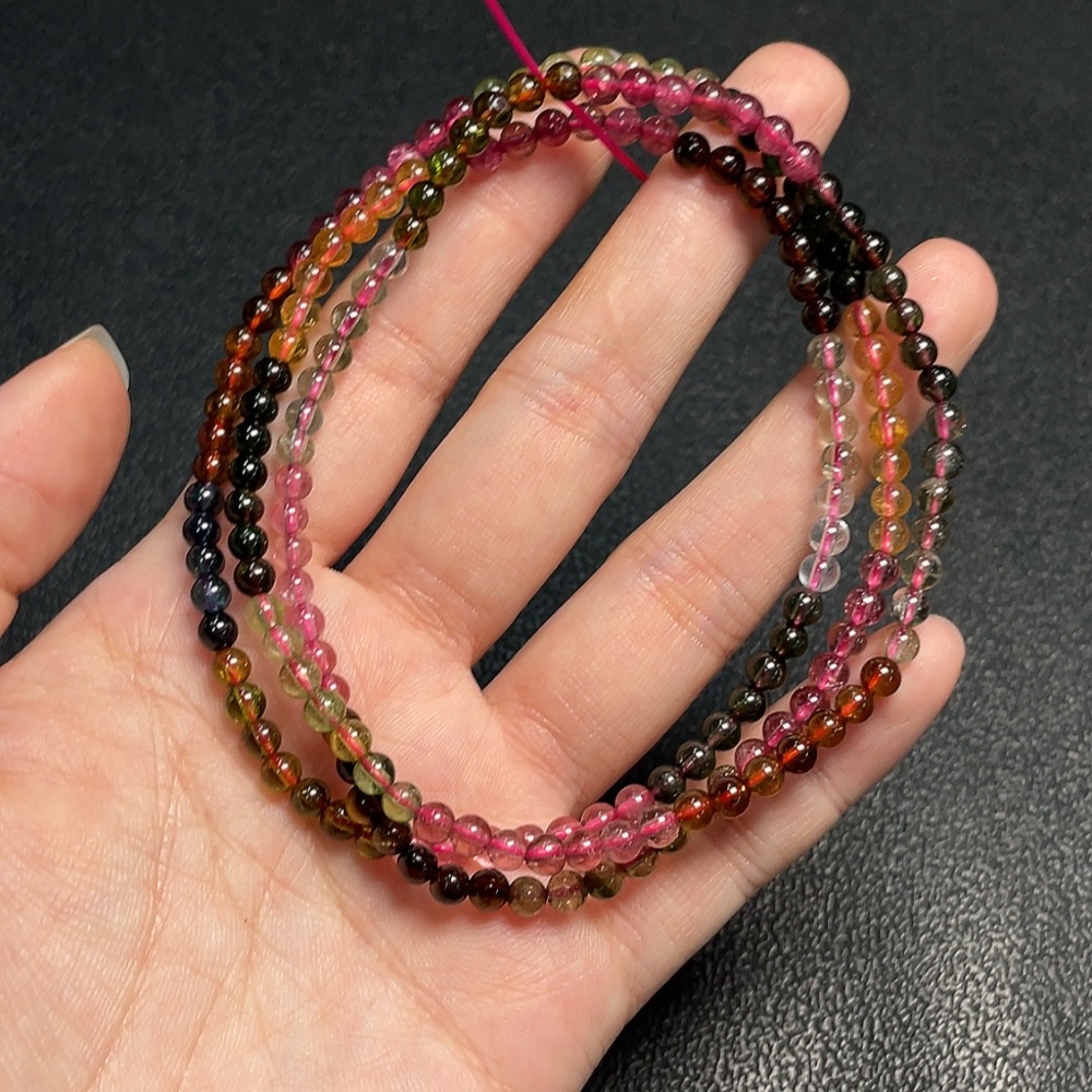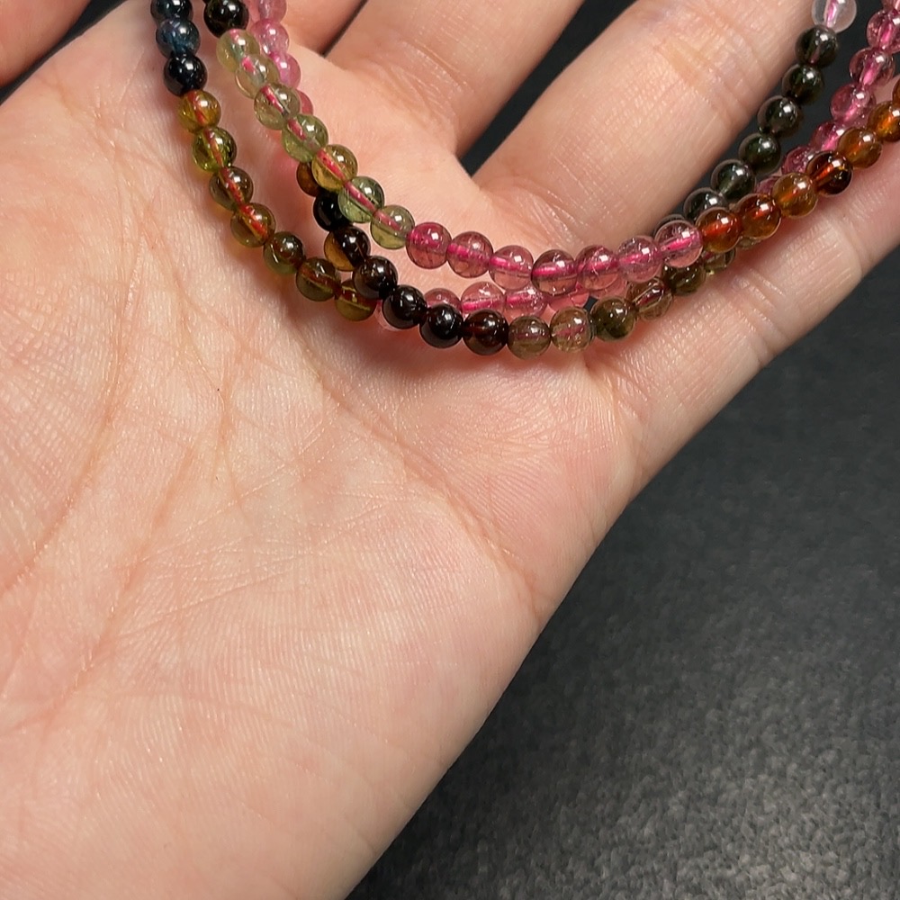 Tourmaline bead necklace containing other mineral components with visible organic matter, total weight approximately 18.2g, bead size about 3.8mm