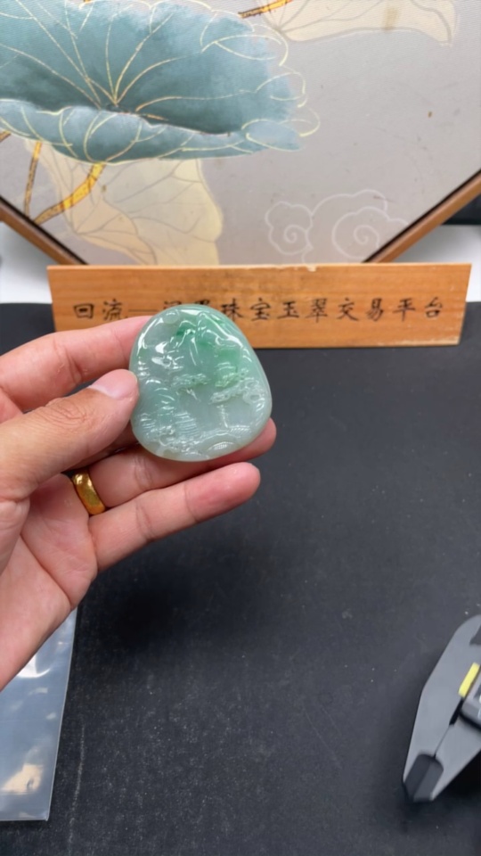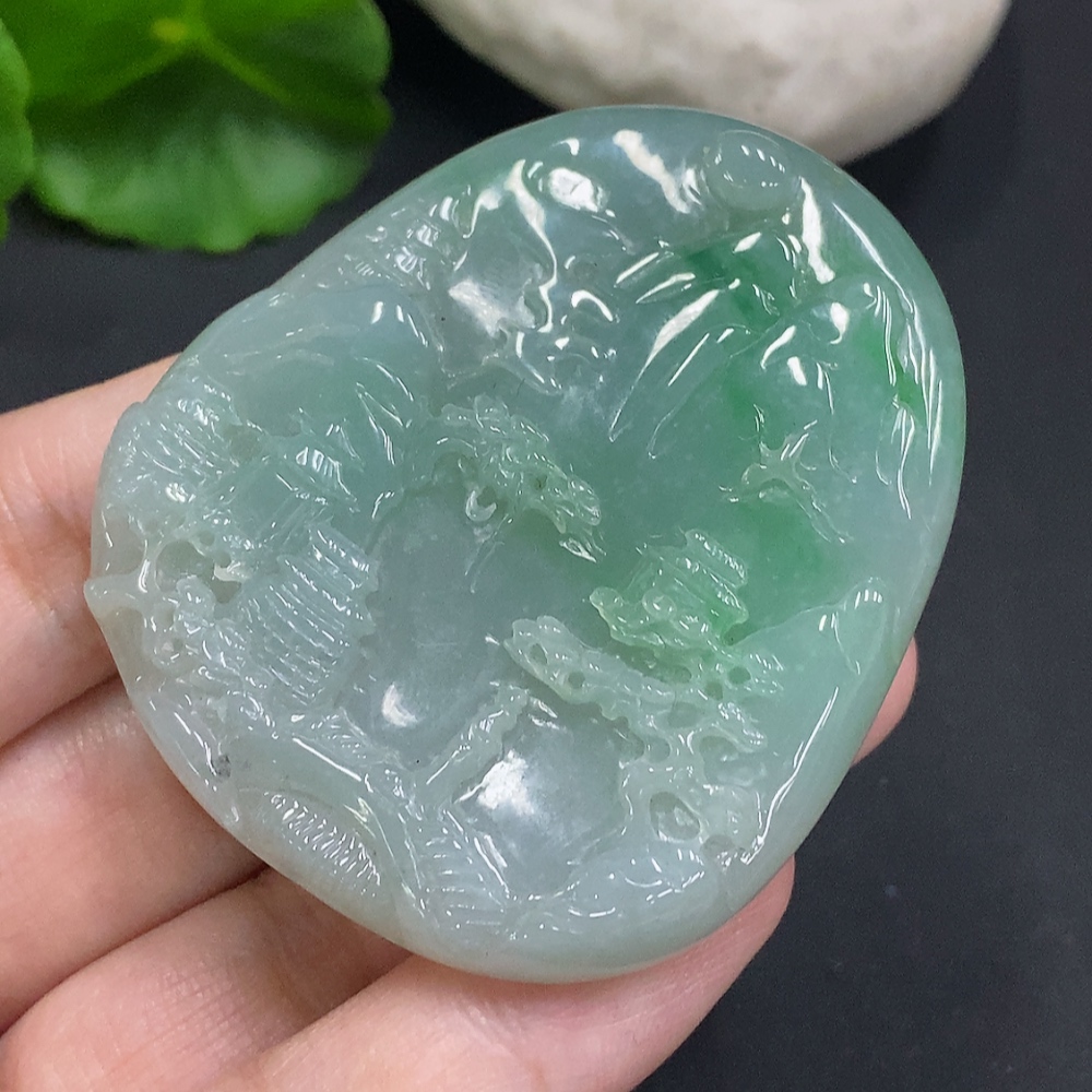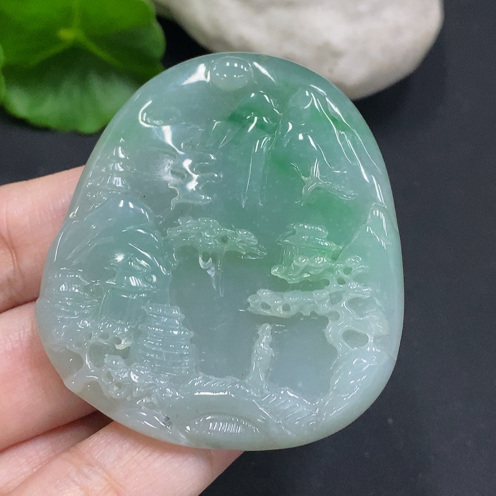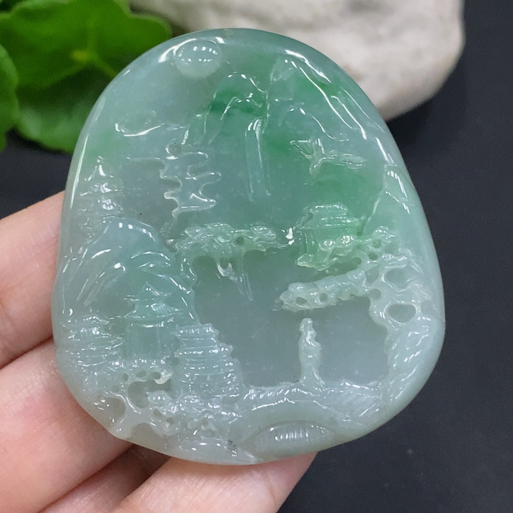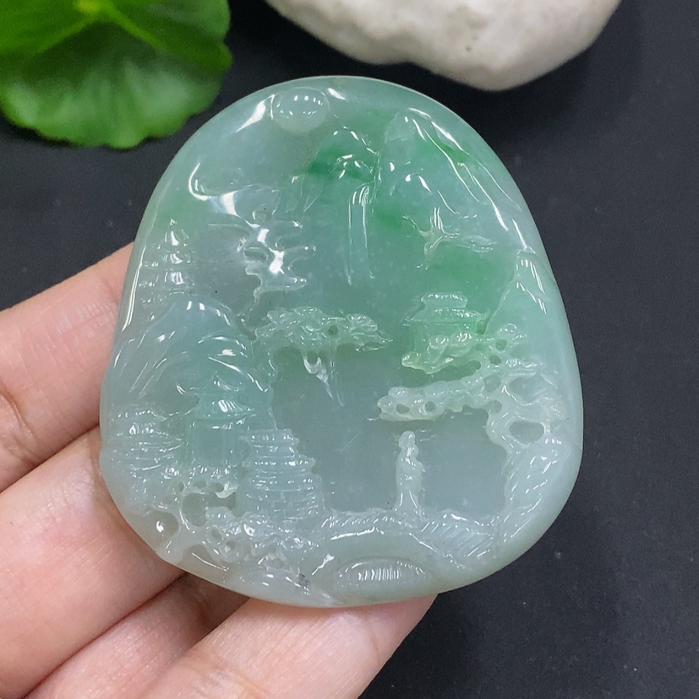 Jadeite Landscape Pendant Total Weight Approx. 34.9g