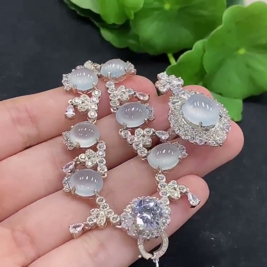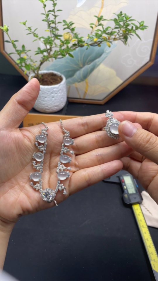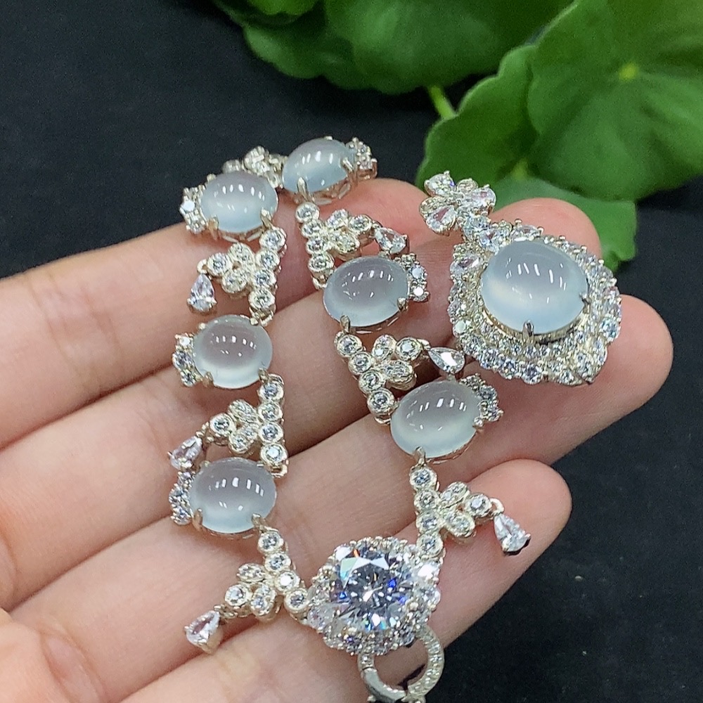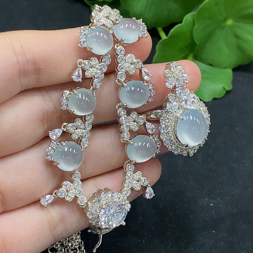 Jadeite cabochon inlaid necklace/dual-purpose cabochon ring adjustable opening non-gold inlay