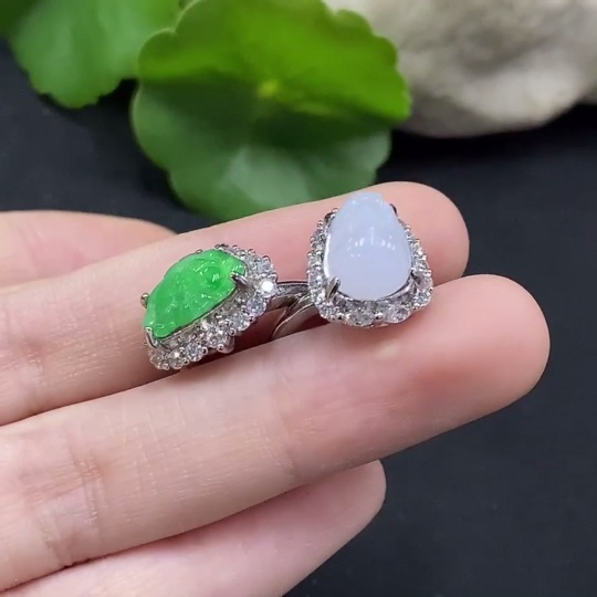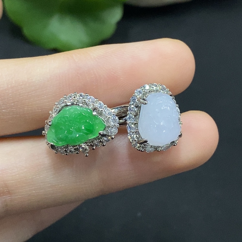 Jadeite Inlaid Ring Non-Gold Inlaid Adjustable