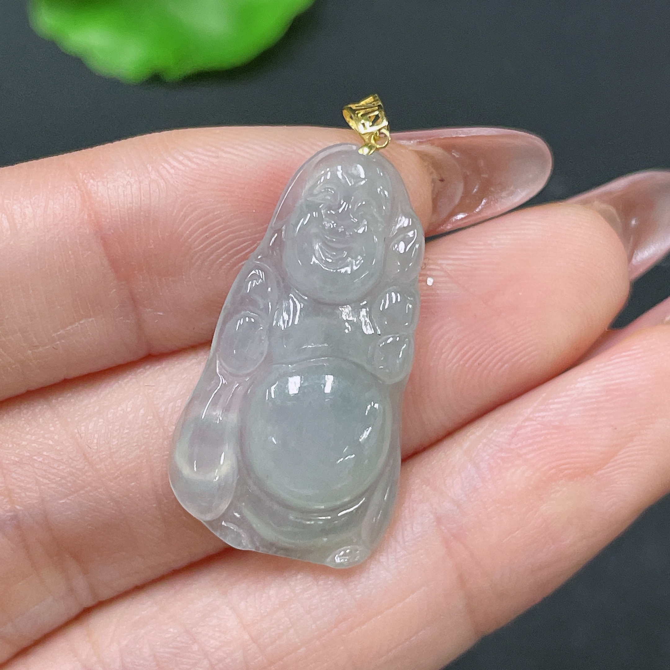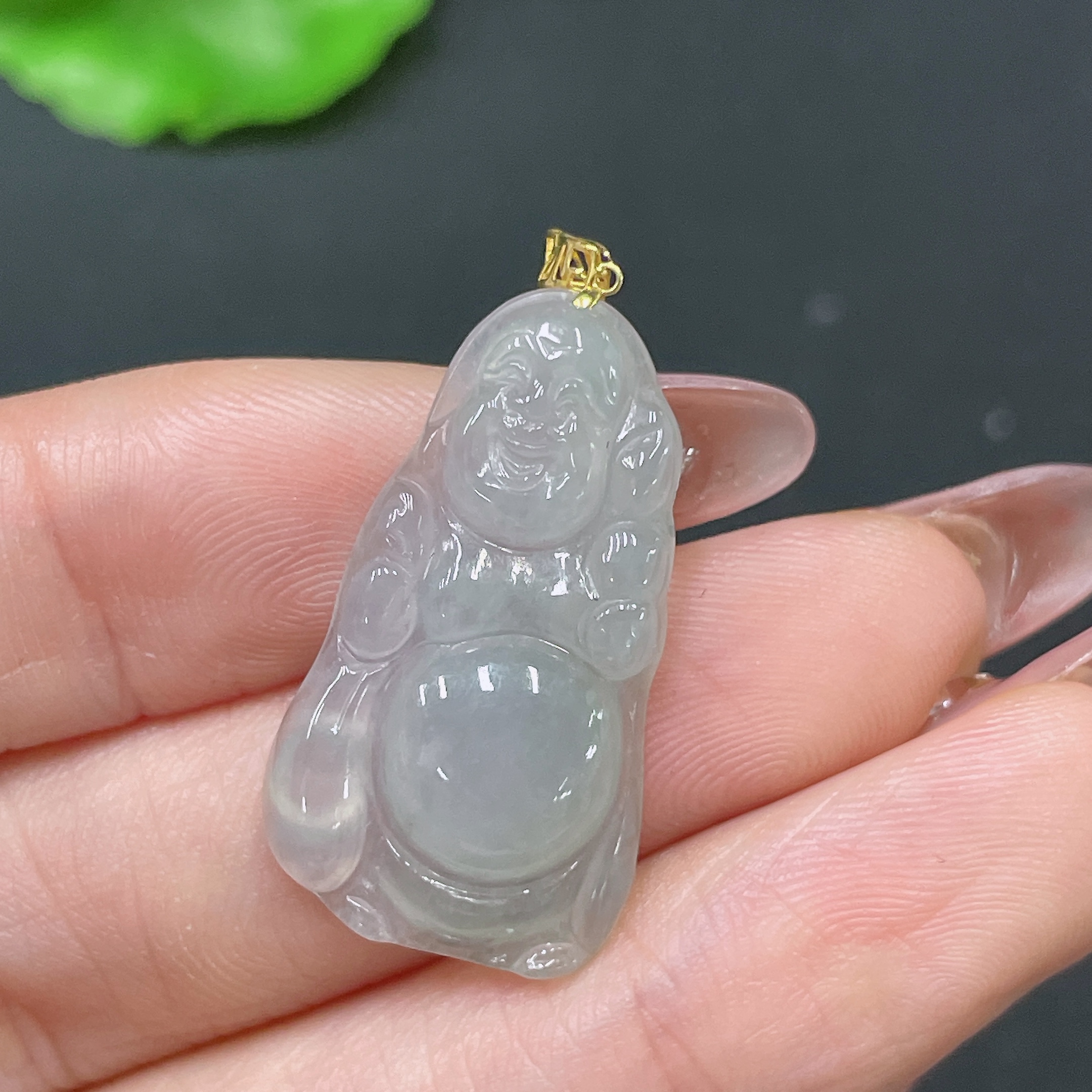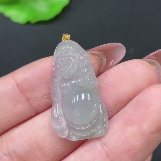 Jadeite Pendant Buddha with 18k Clasp, Total Weight Approx. 2.86g