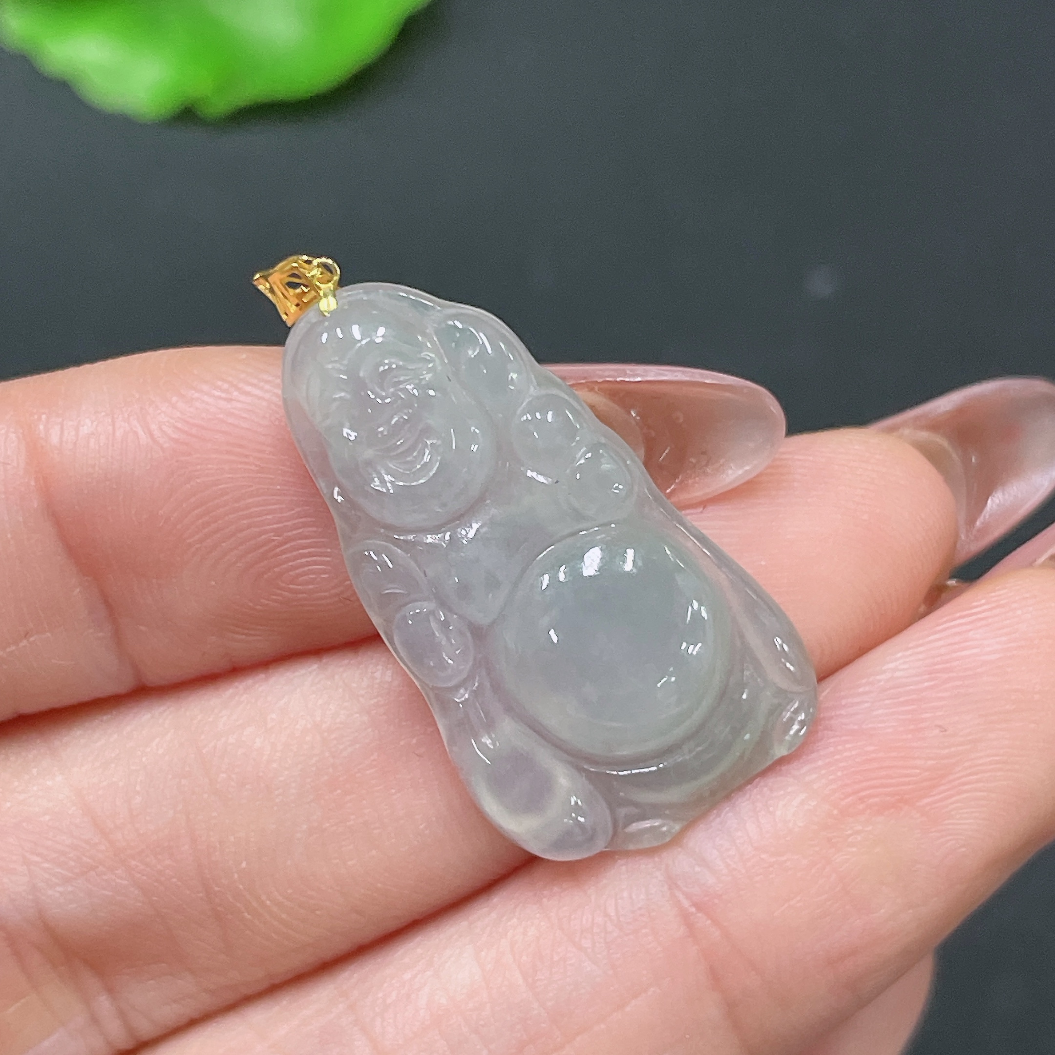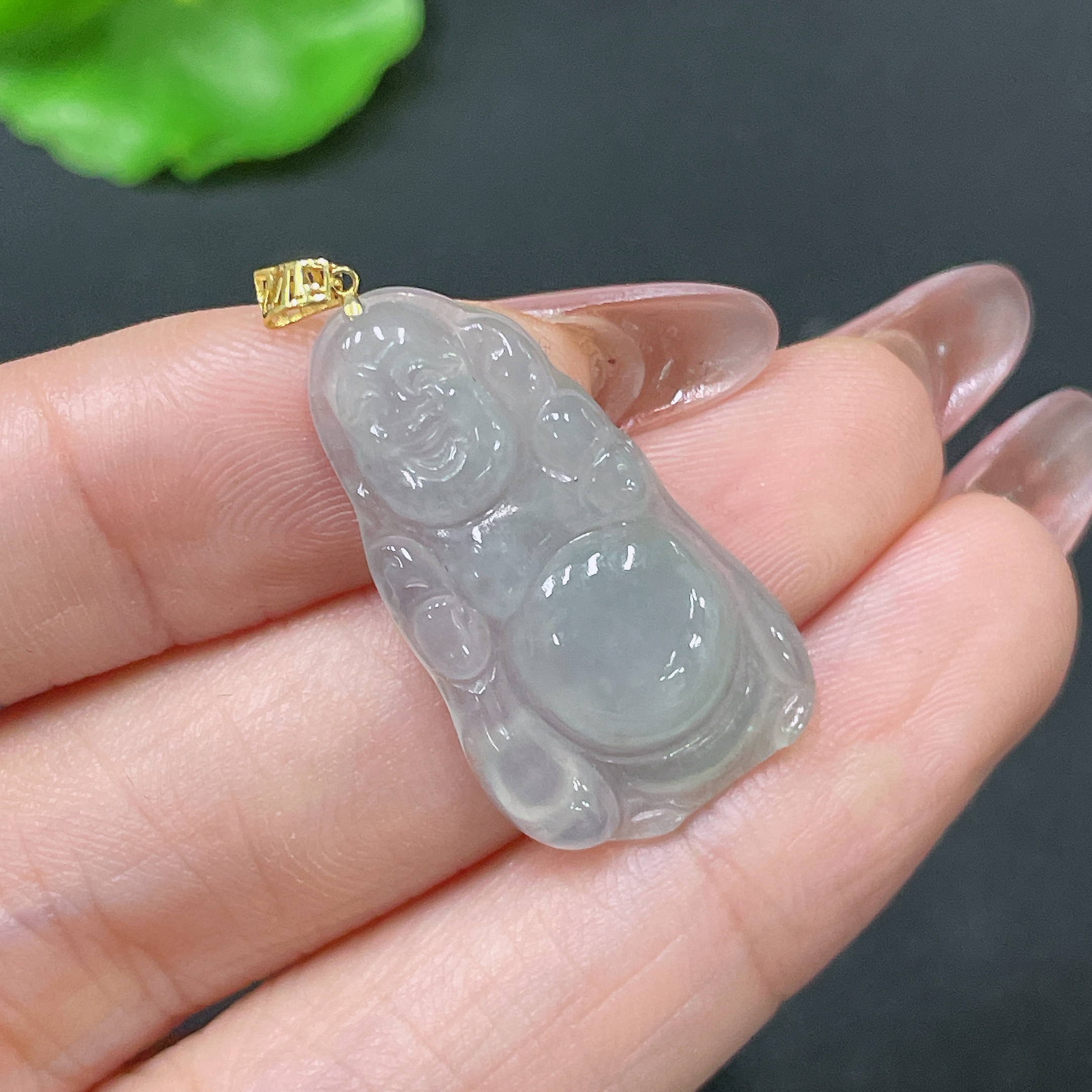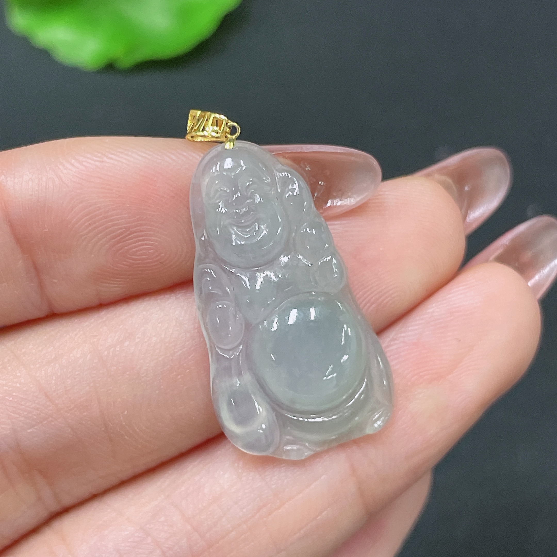Jadeite Pendant Buddha with 18k Clasp, Total Weight Approx. 2.86g