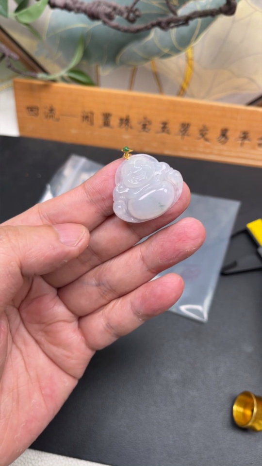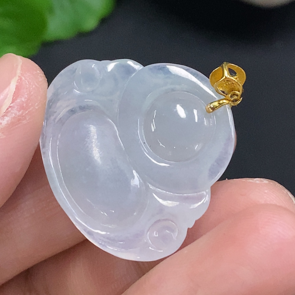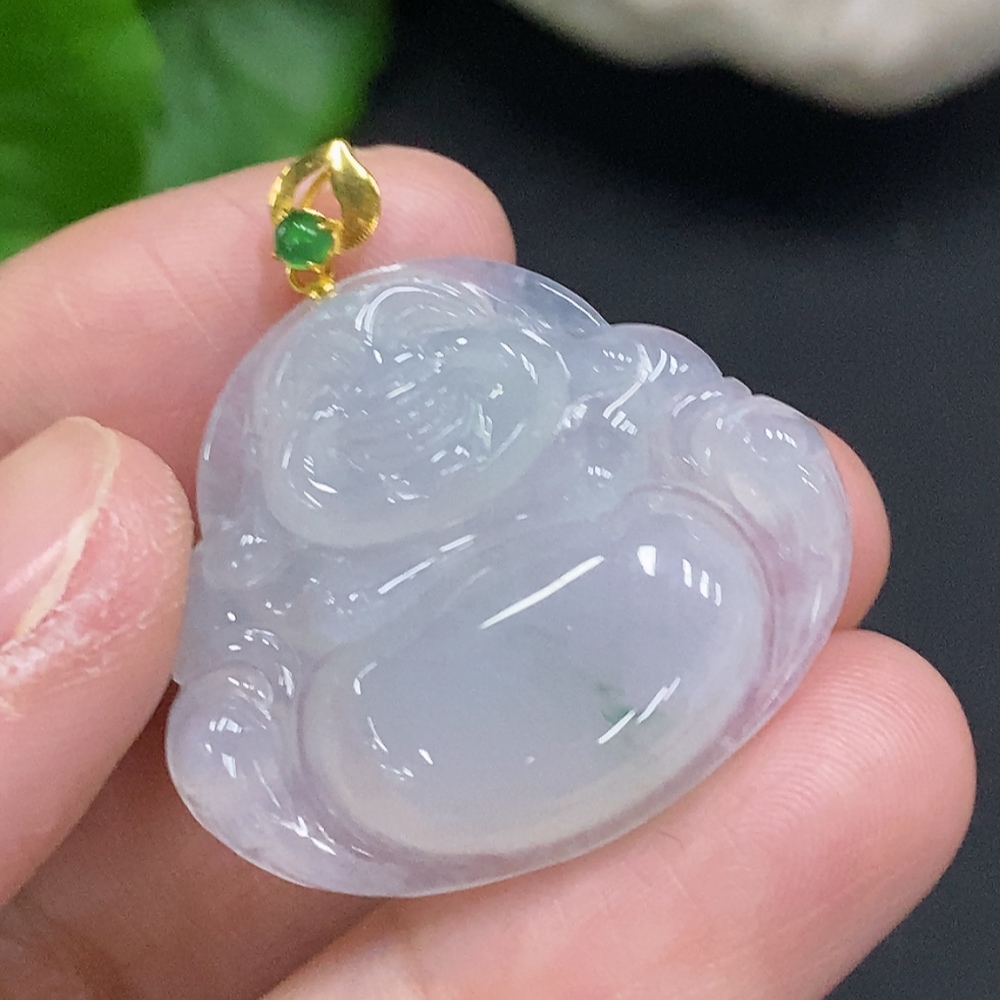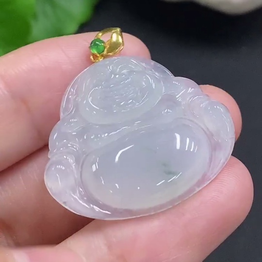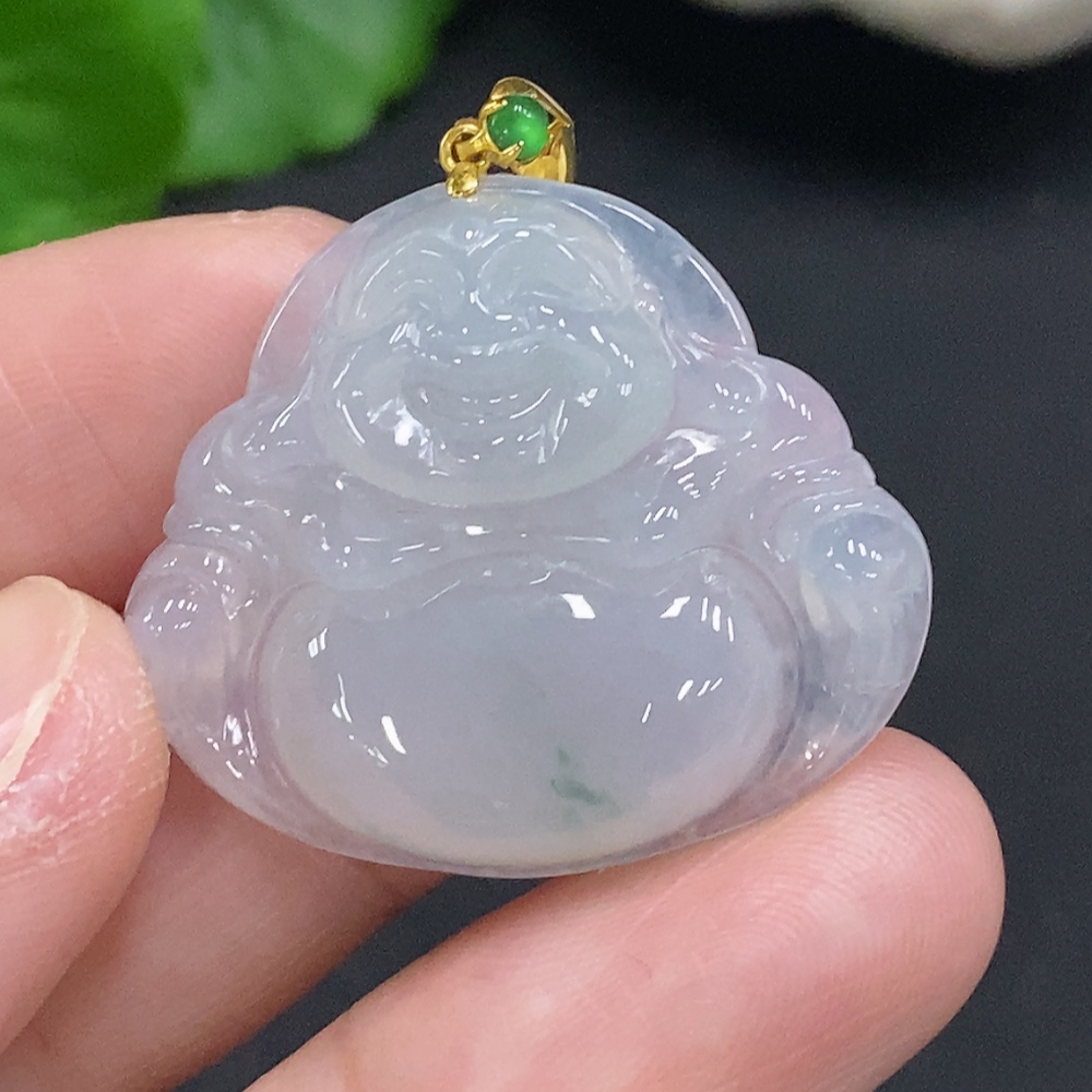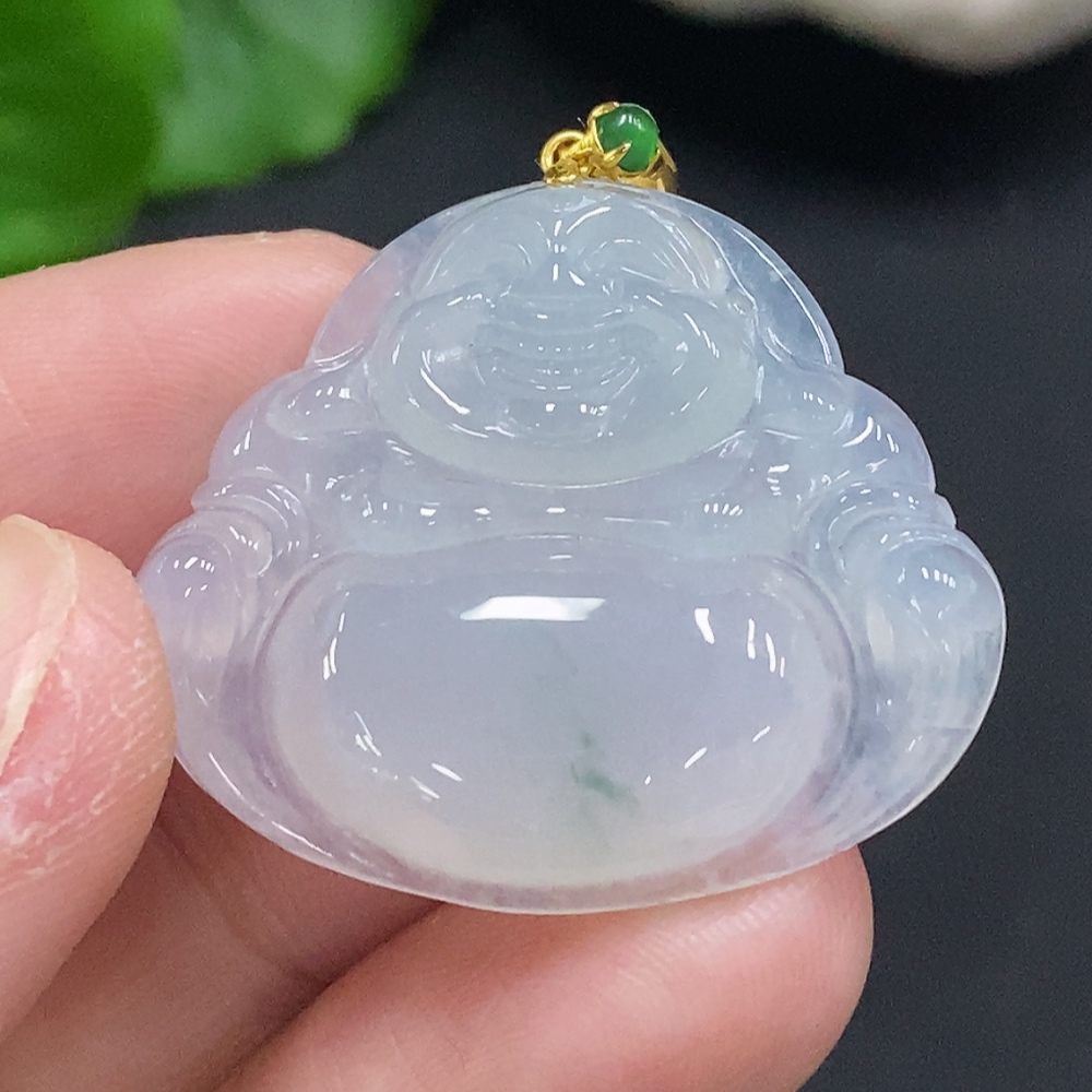 Jadeite Buddha Pendant with 18K Gold Clasp, Total Weight Approx. 6.6g (Diamond Accented)