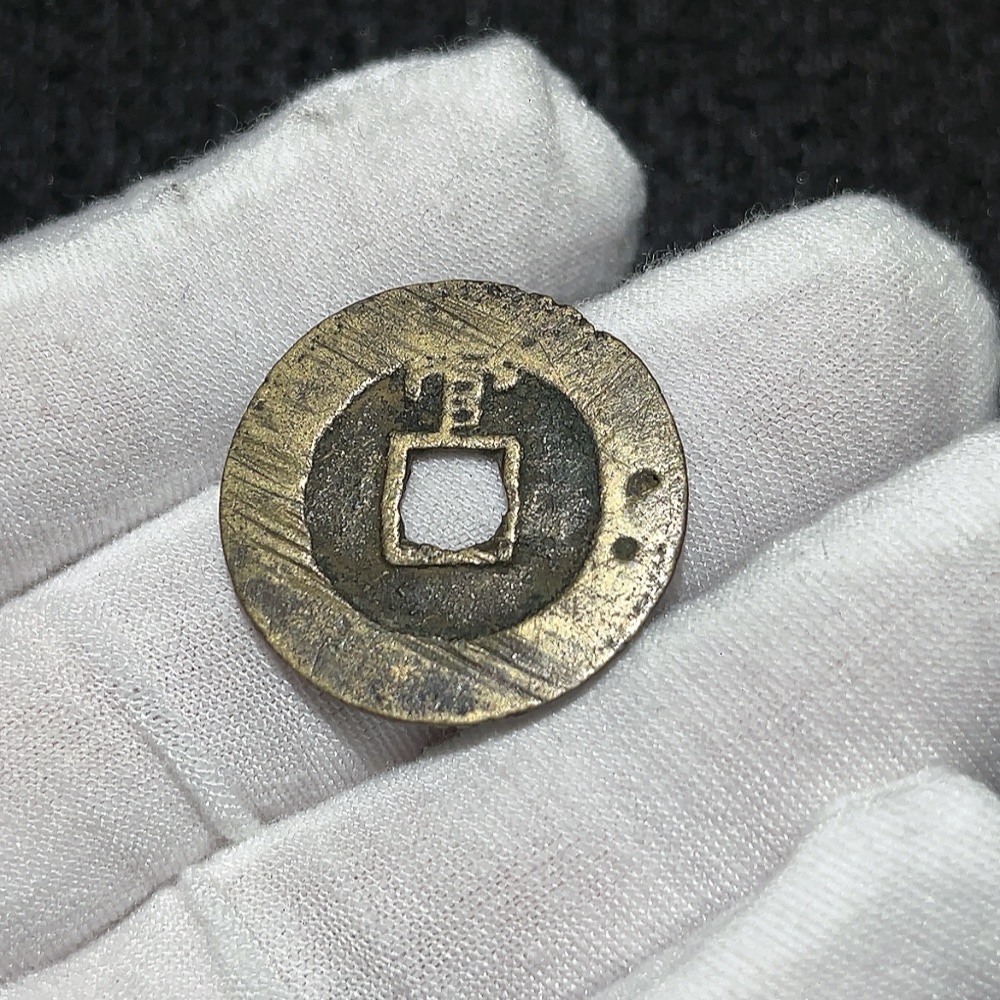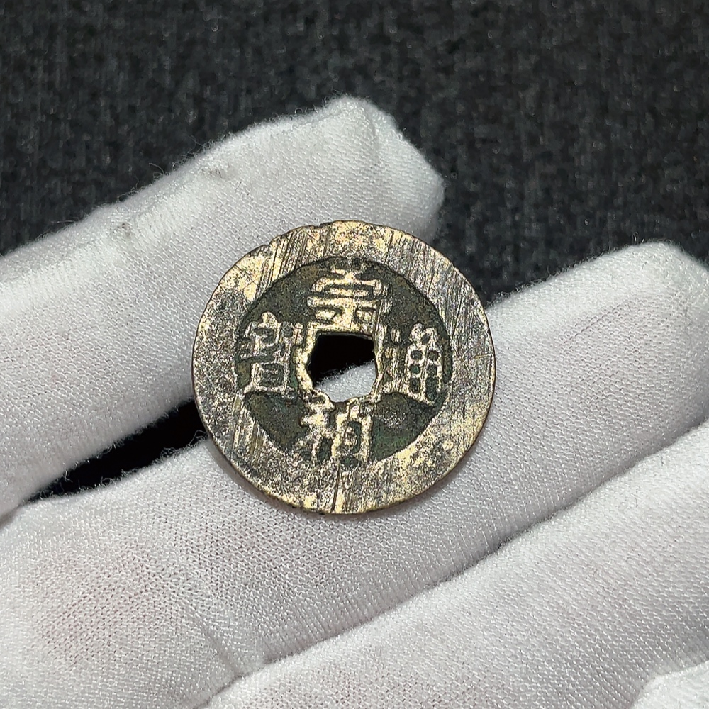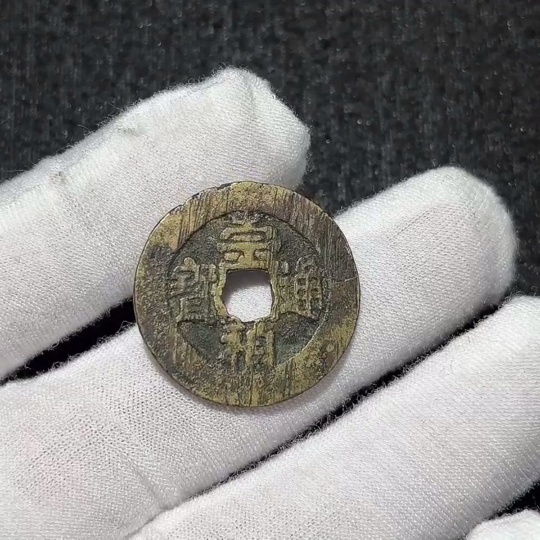 Chongzhen Tongbao from the Ming Dynasty with 'Shang' character on the back, clear inscription, crisp sound, warm patina, ancient coin