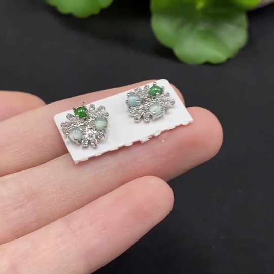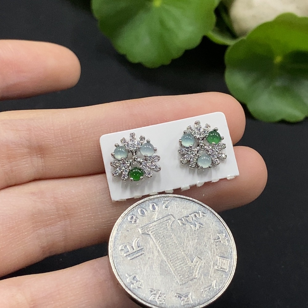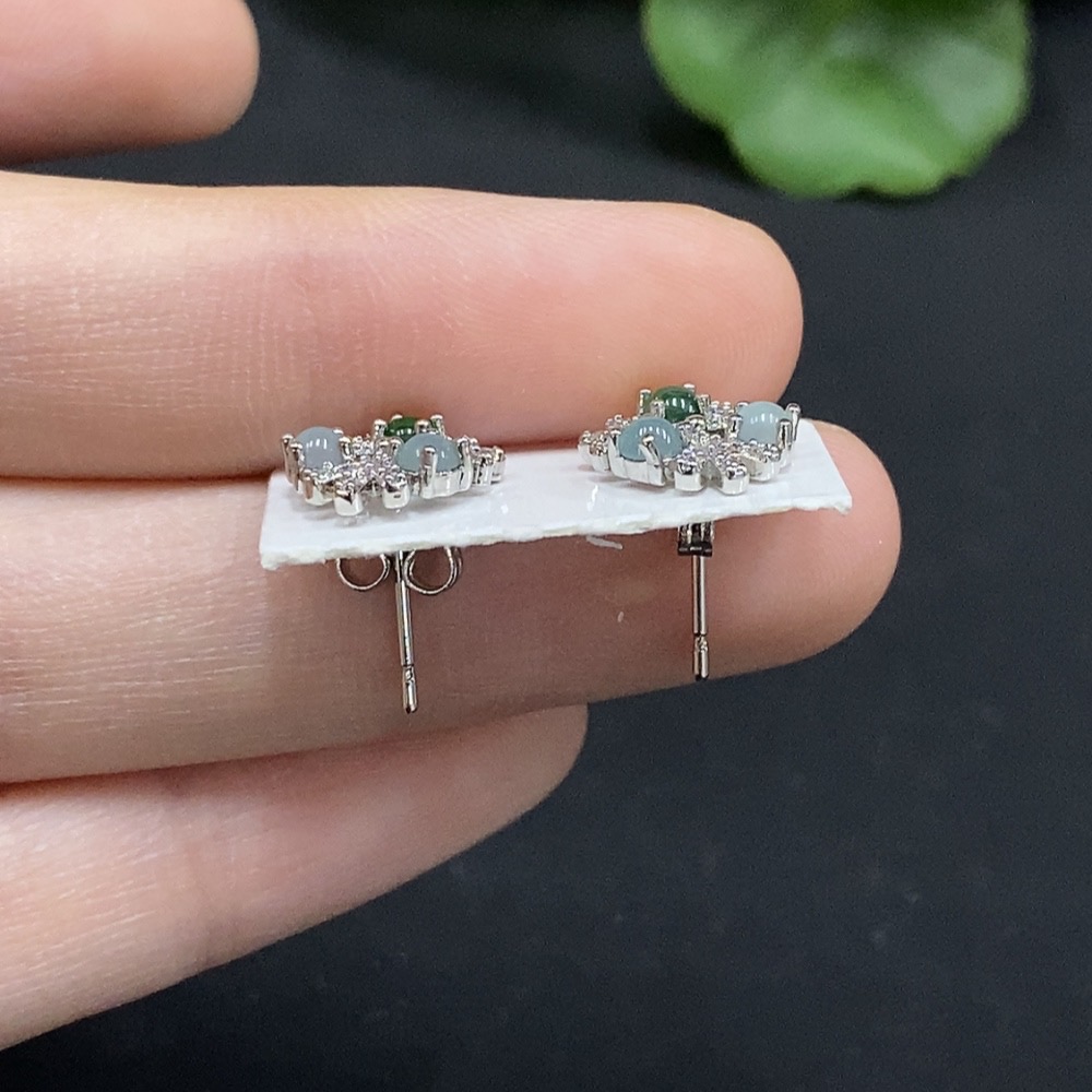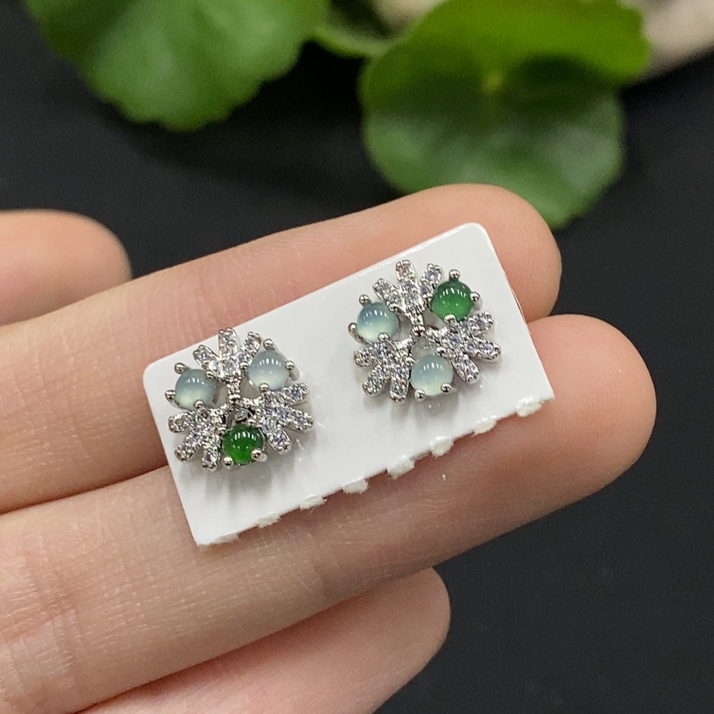 Jadeite Cabochon Inlaid Earrings Non-Gold Inlaid Total Weight Approx. 1.58g