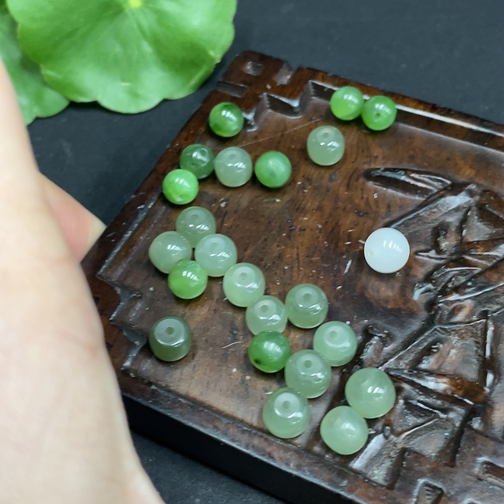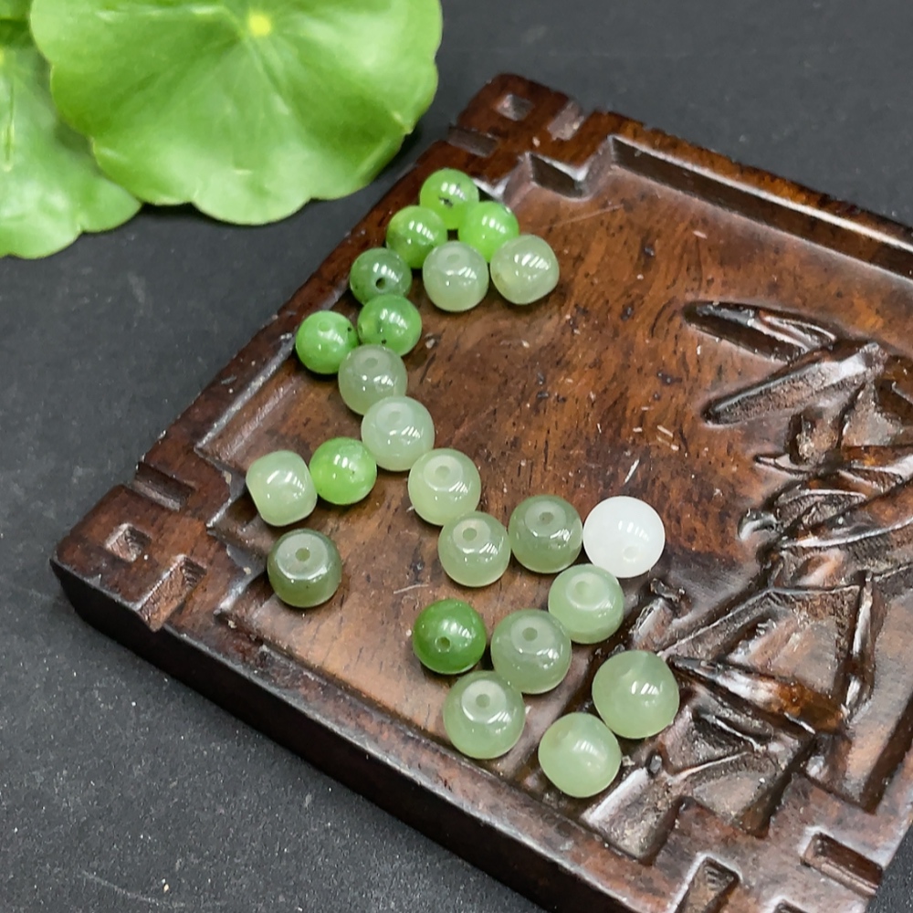 Hetian Jade Loose Beads, Maximum Size Around 6.4mm, Total Weight Approximately 7.9g