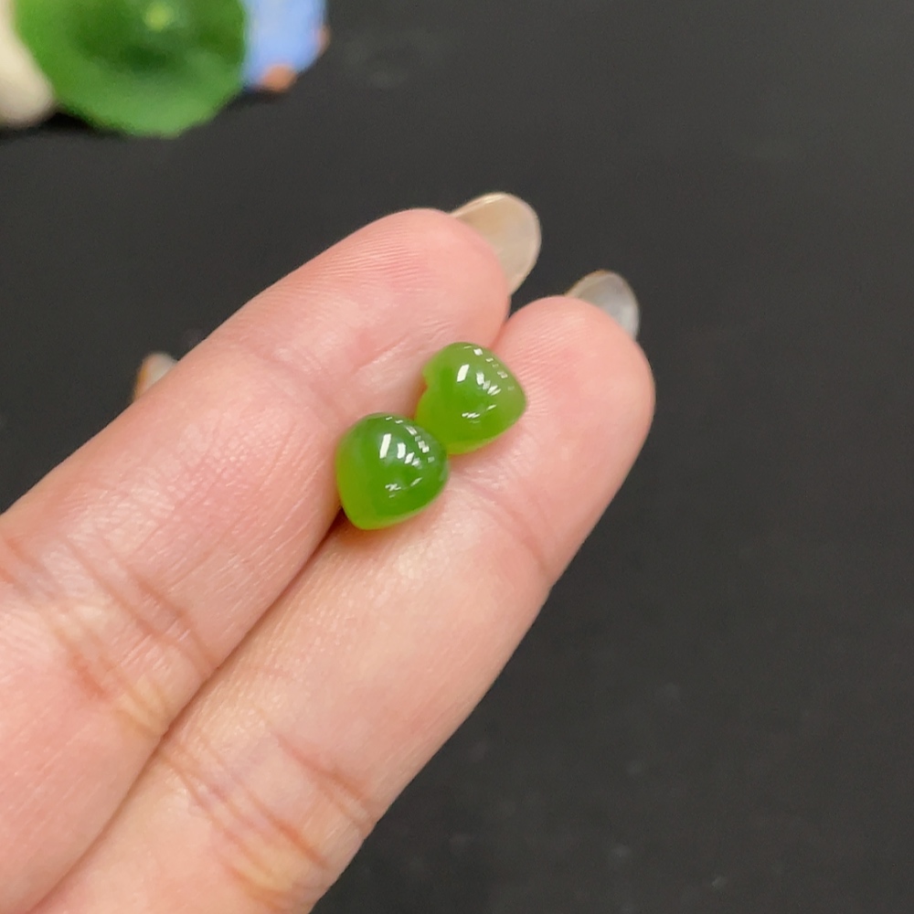Hetian Jade Inlaid Earrings Heart Total Weight Approx.1.2g 18k