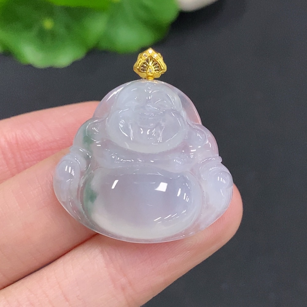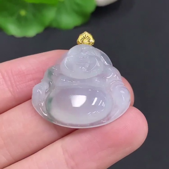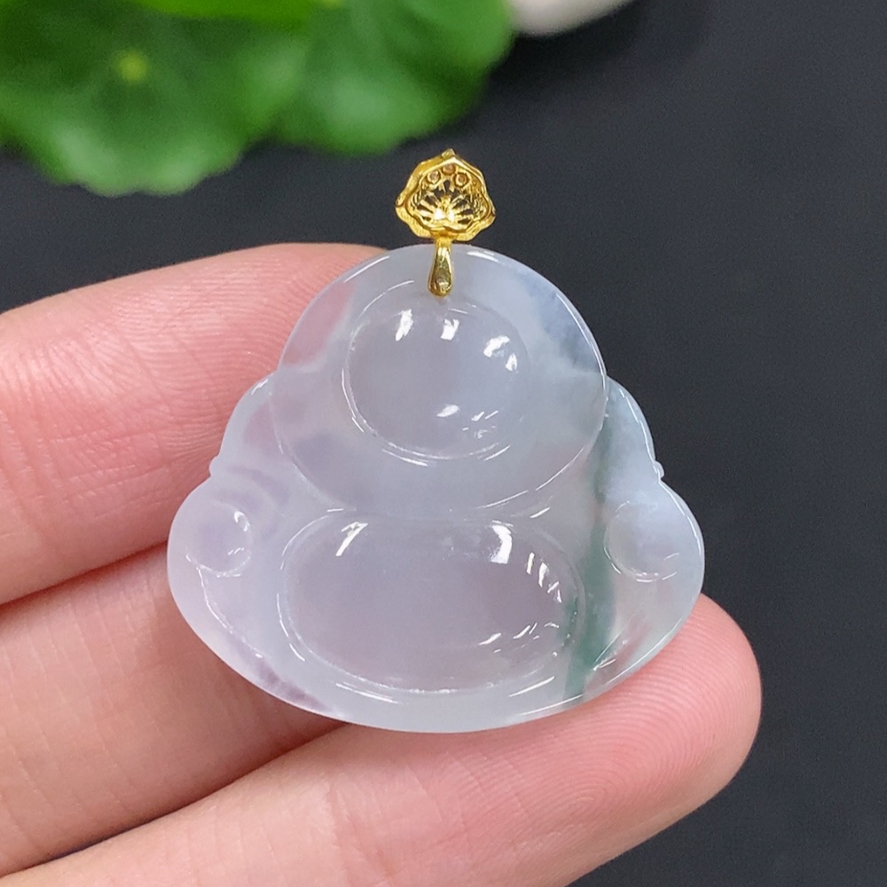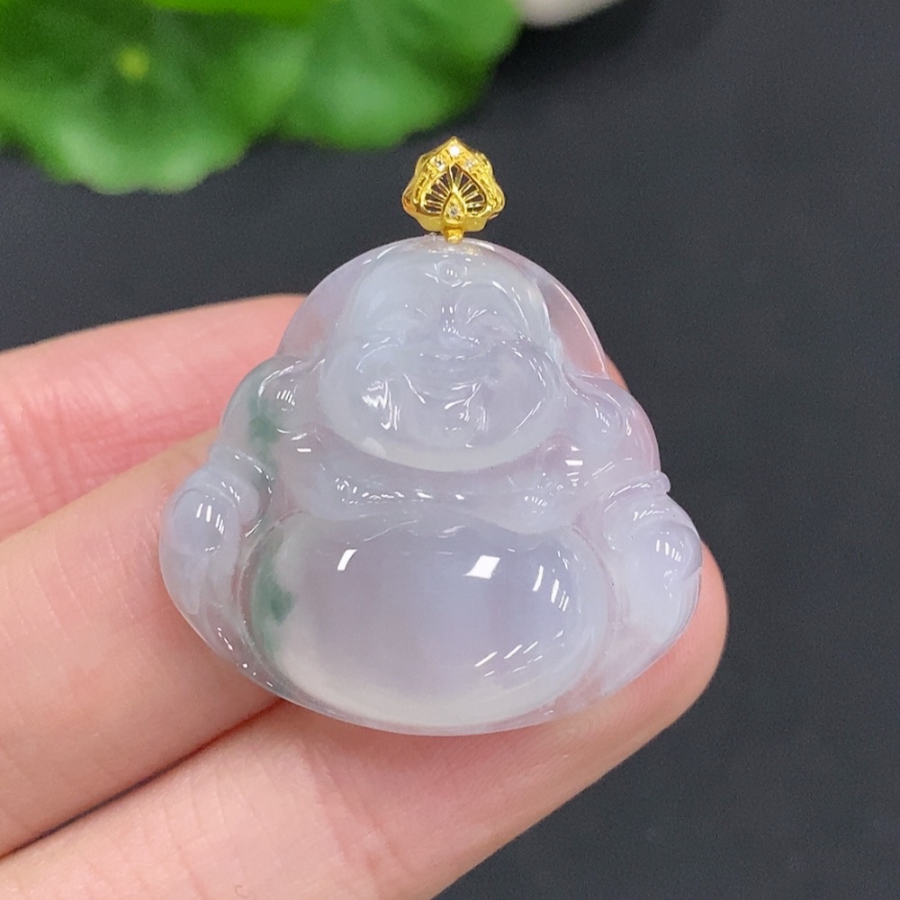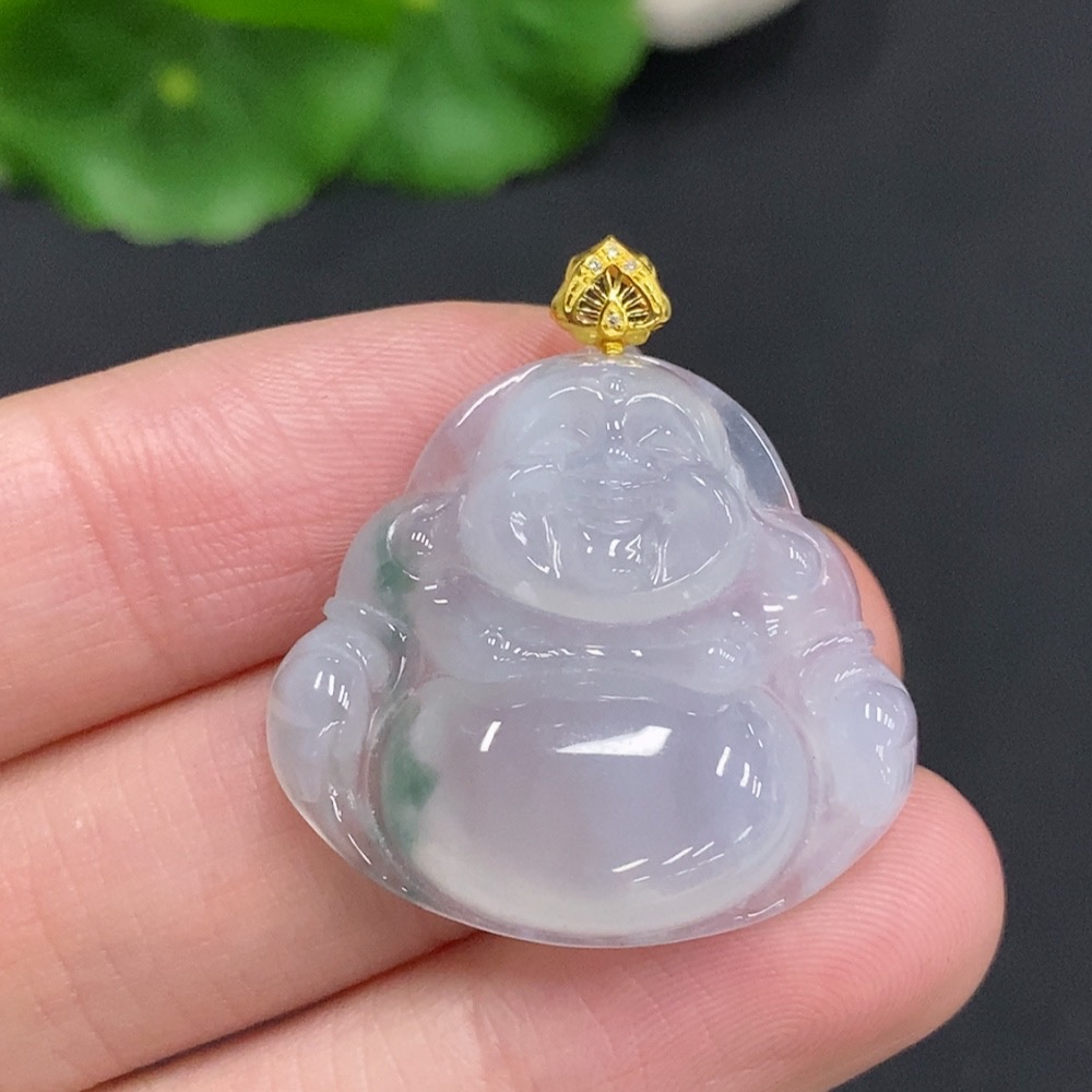 Jadeite Buddha Pendant with 18K Gold Clasp, Total Weight Approximately 7g, Set with Diamonds