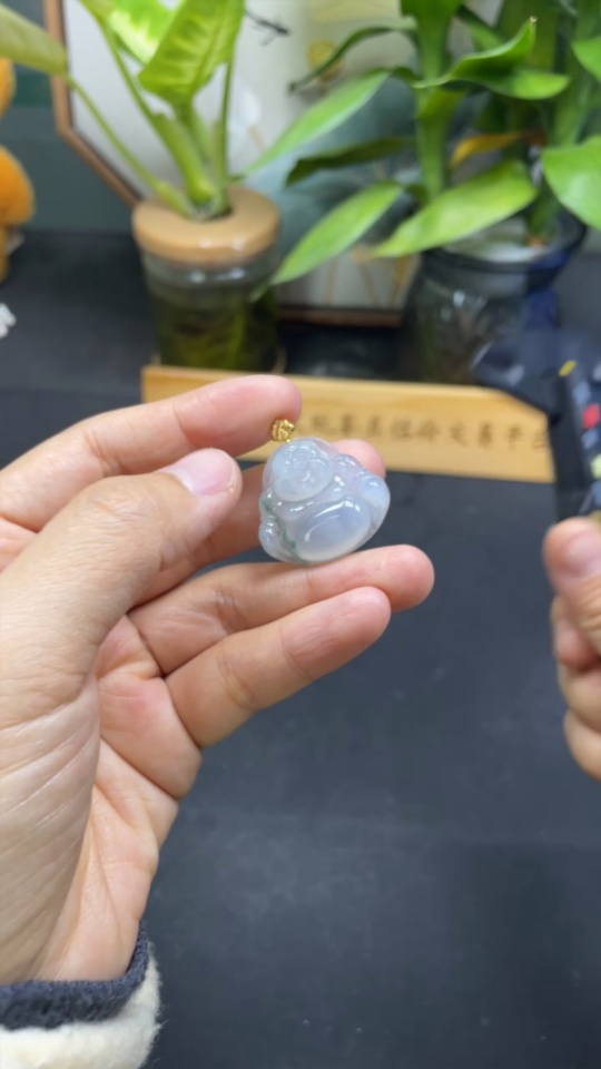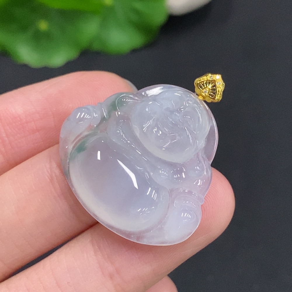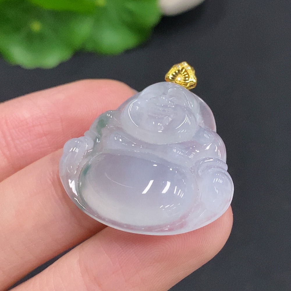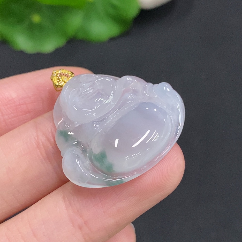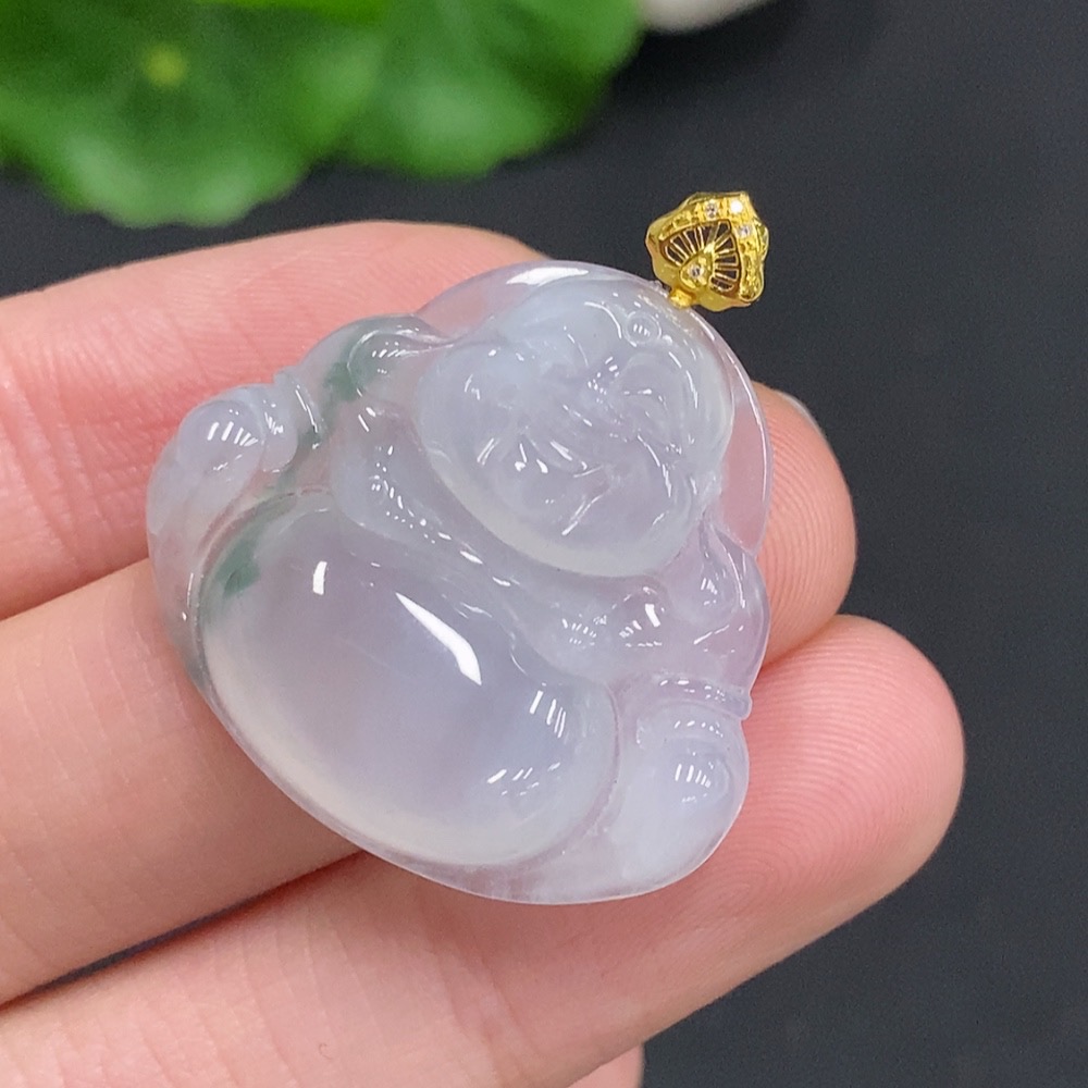 Jadeite Buddha Pendant with 18K Gold Clasp, Total Weight Approximately 7g, Set with Diamonds