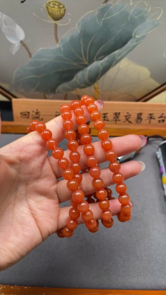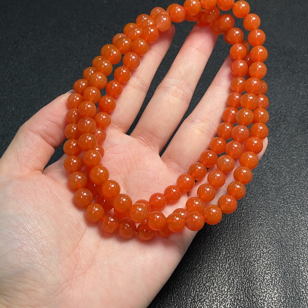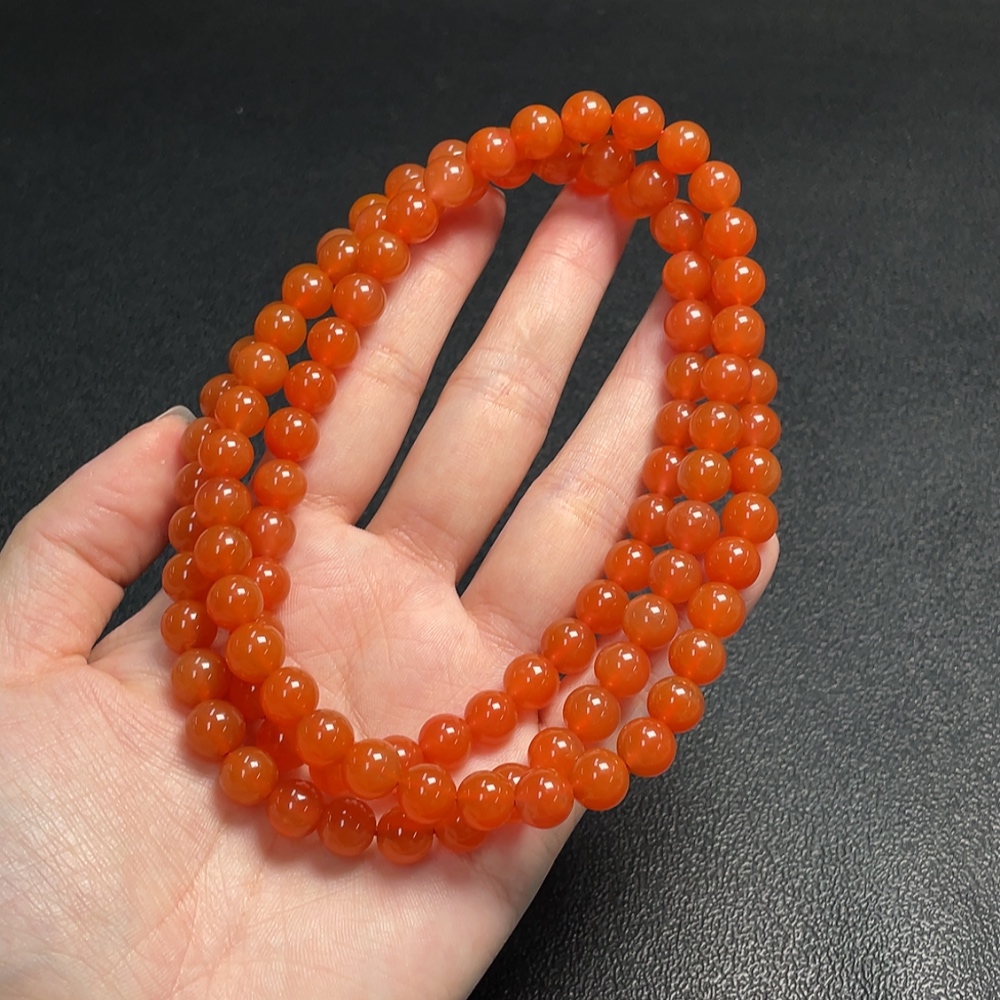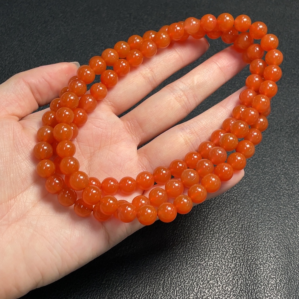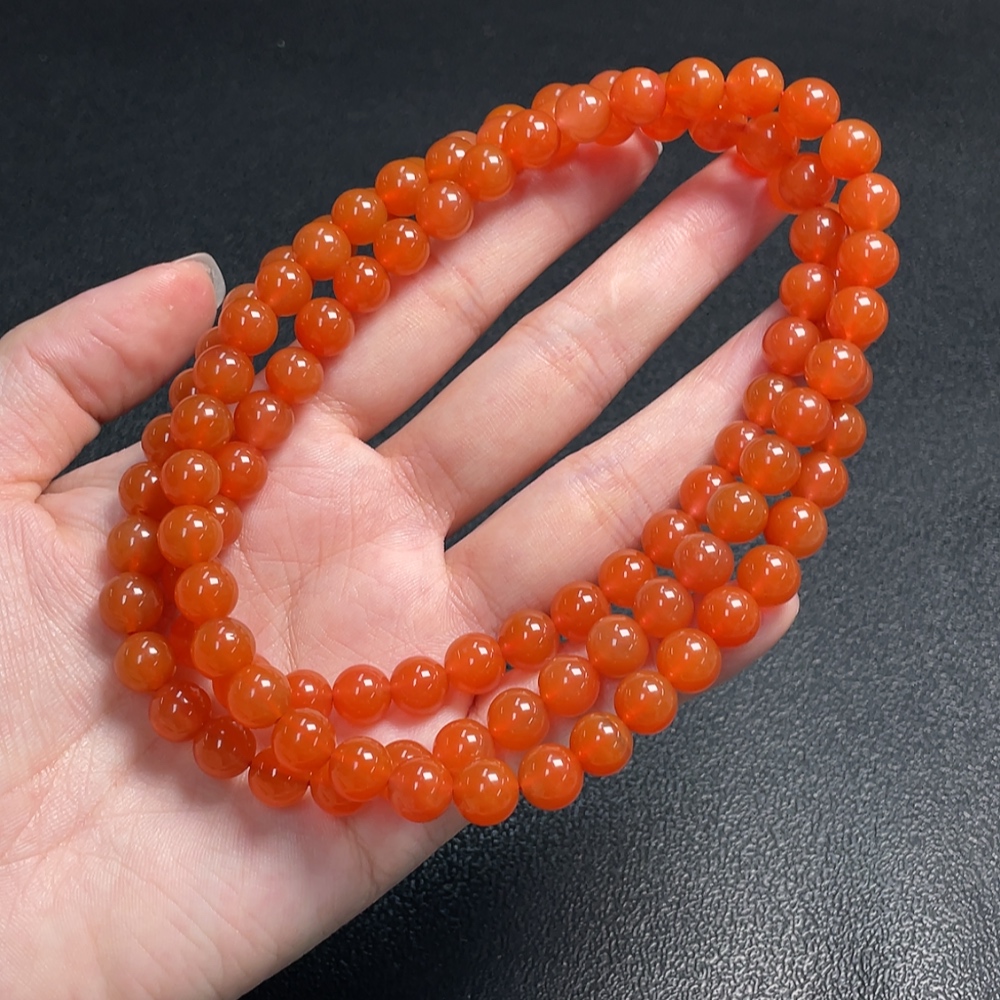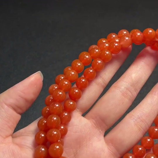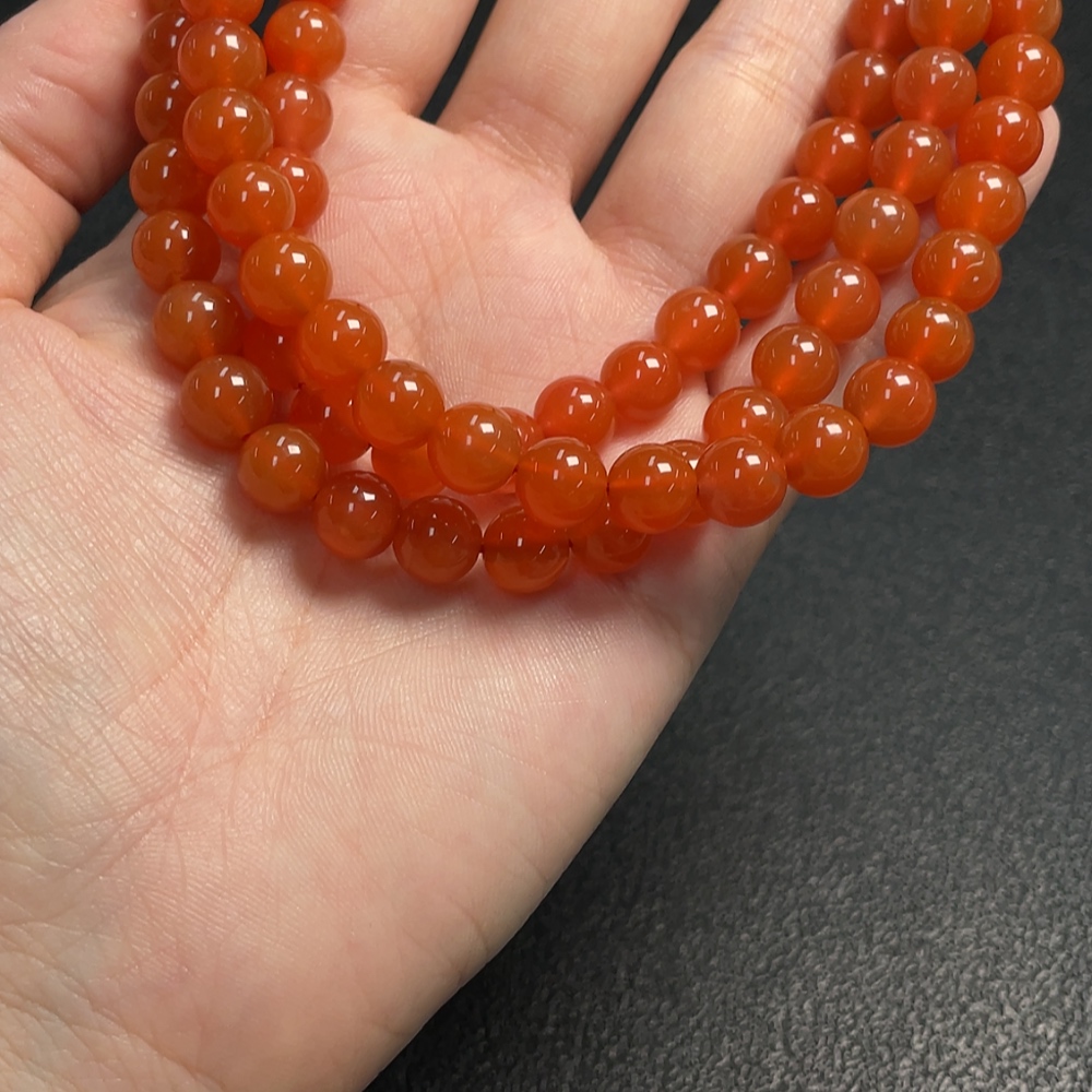 South Red Agate Bead Necklace with Visible Organic Matter, Total Weight Approx. 80.26g, Size About 8.1mm