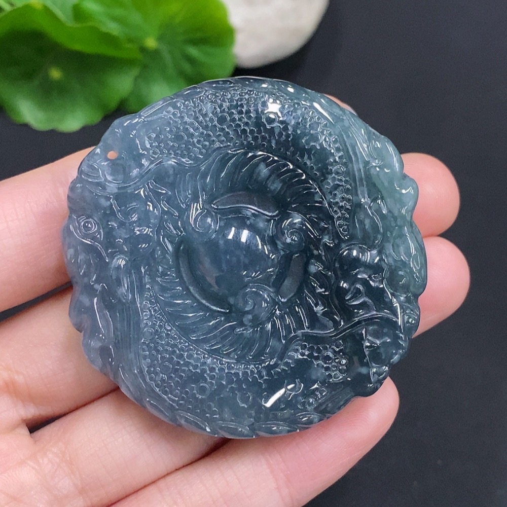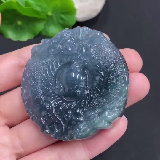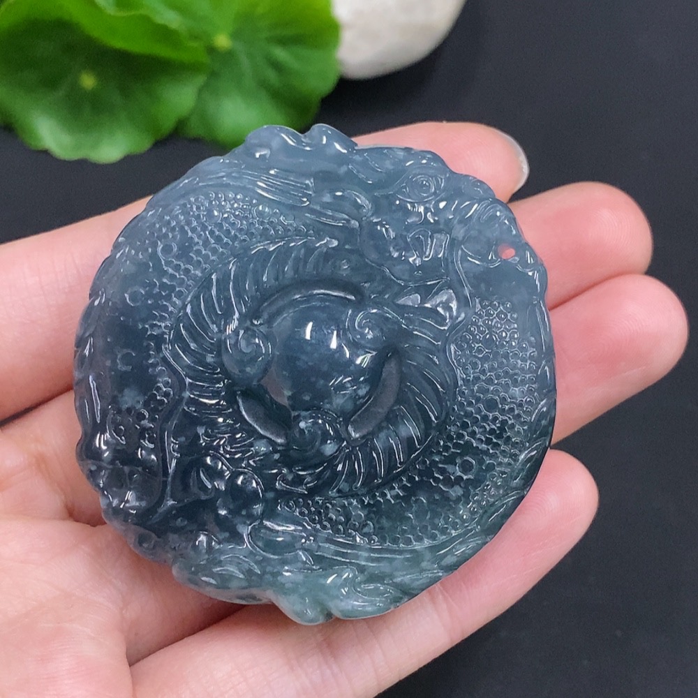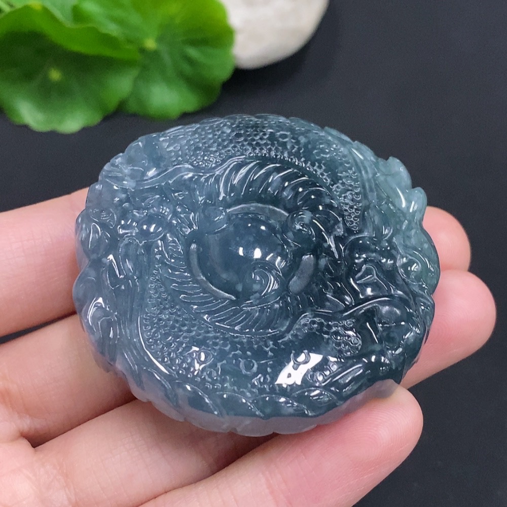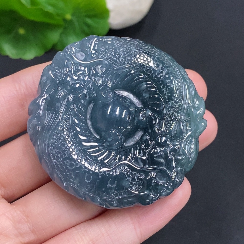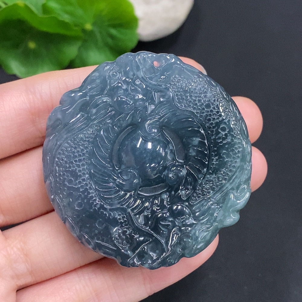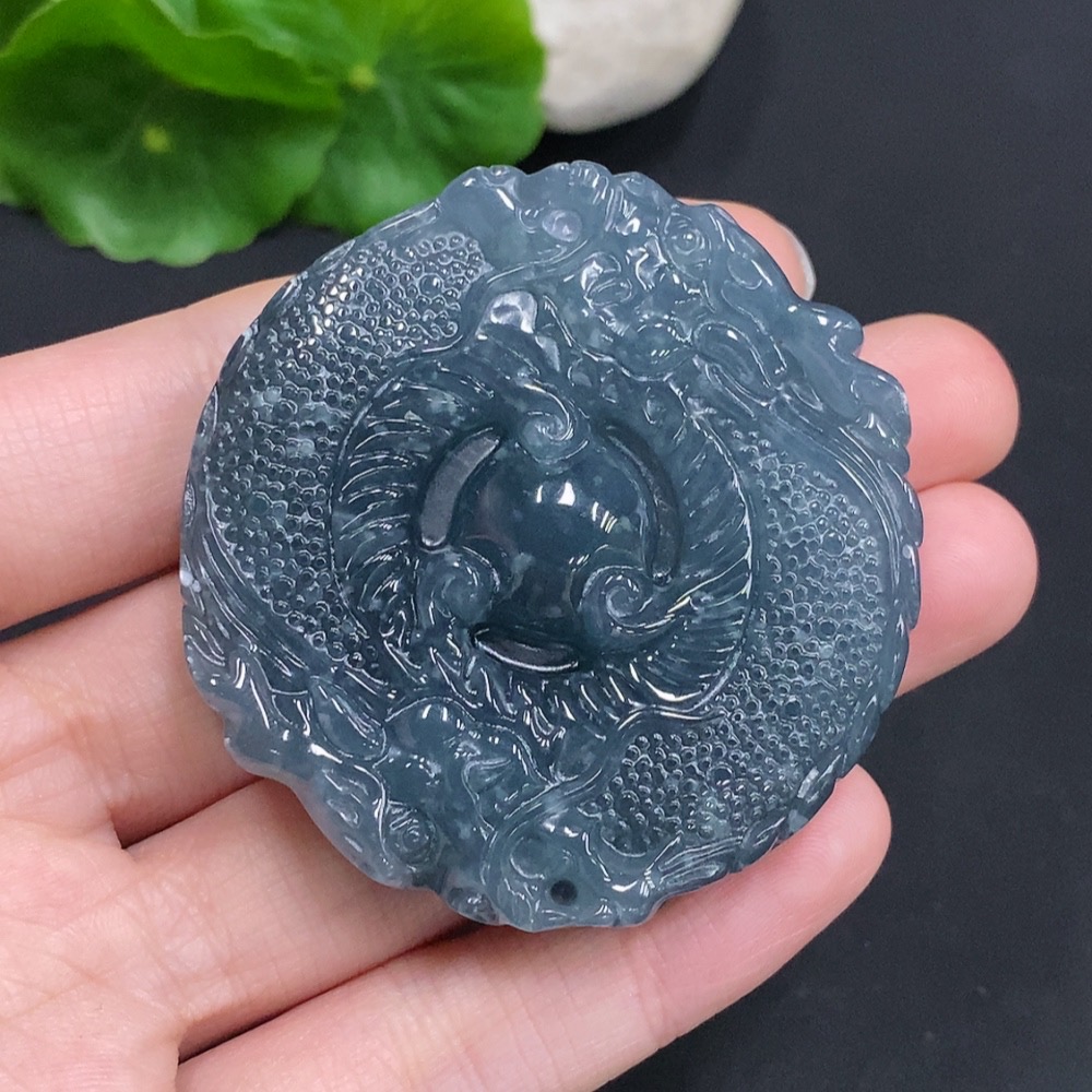 Jadeite Double Dragons Playing with Pearl Pendant Total Weight Approximately 64.7g