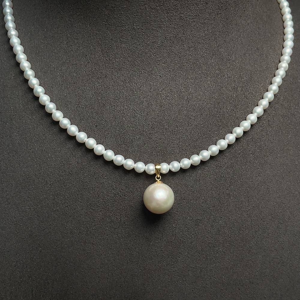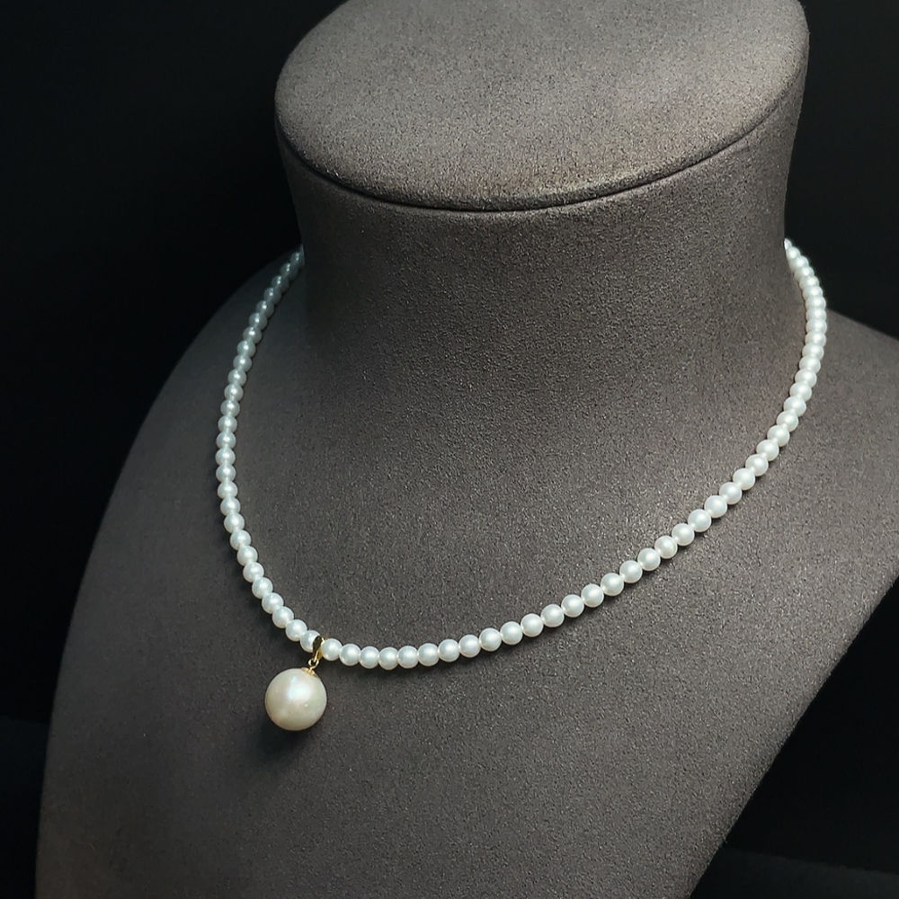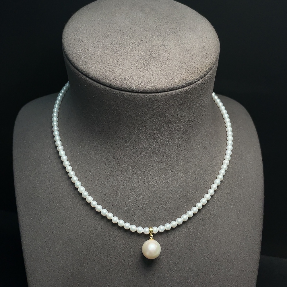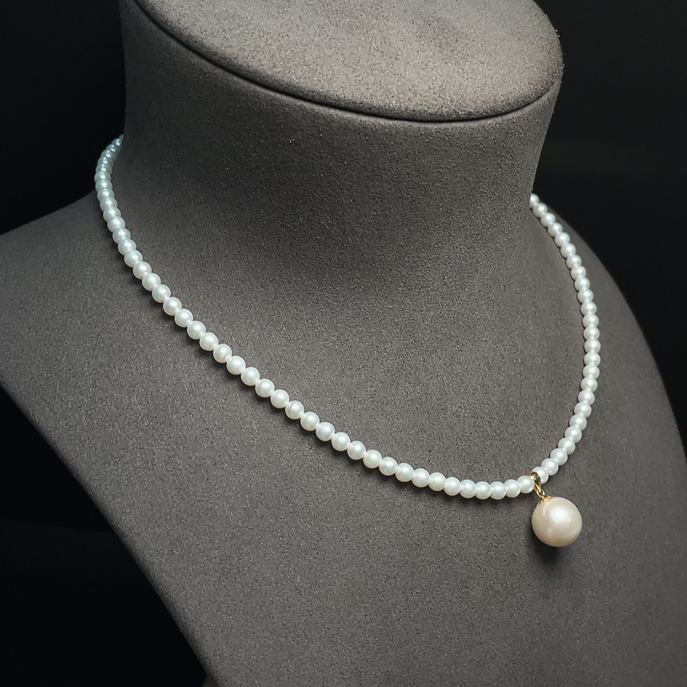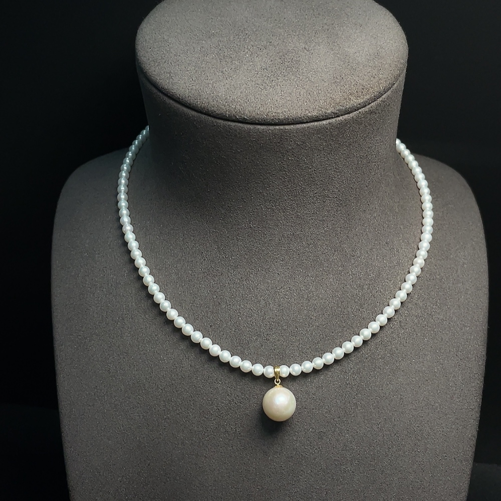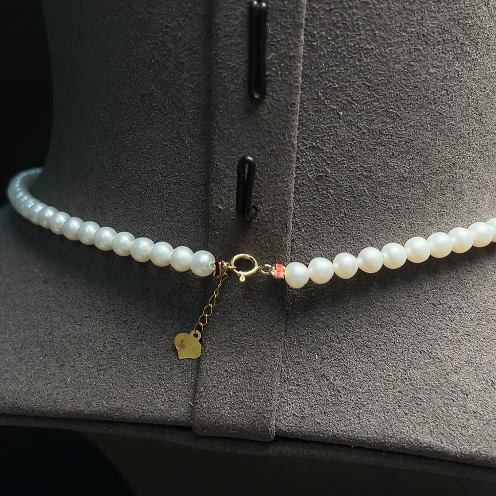 Pearl bead chain marked red non-gold, rest 18k gold, undetectable string, total weight approx. 11.34g, size 3.9-11mm