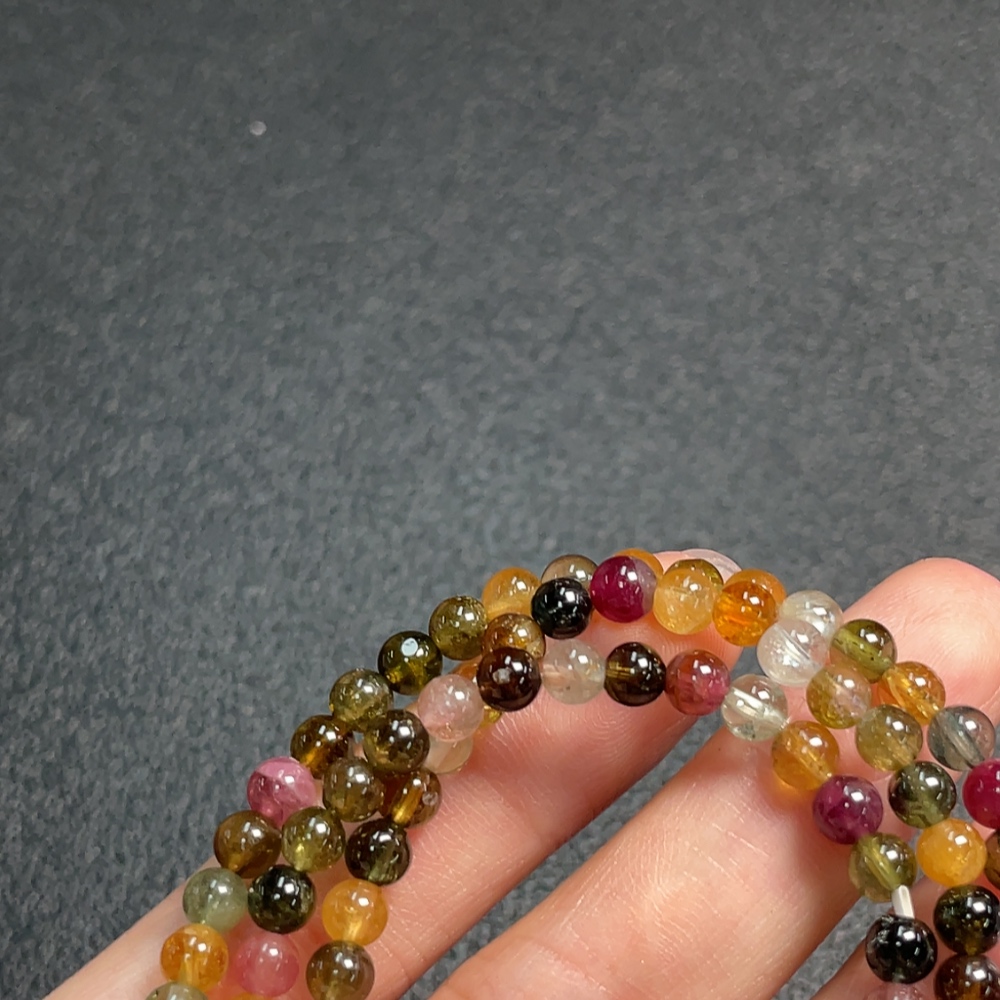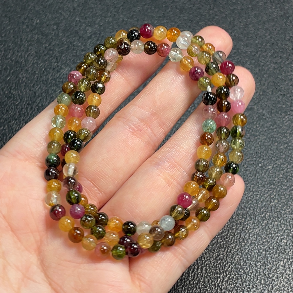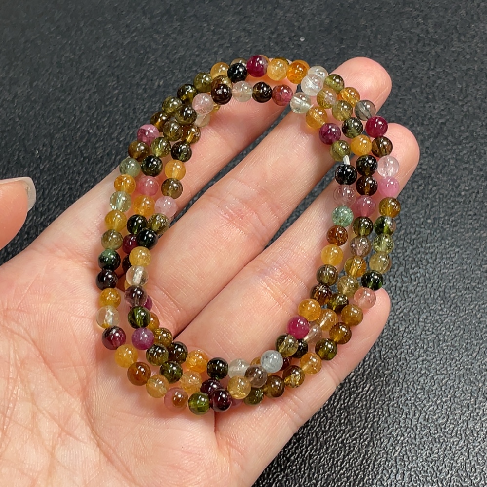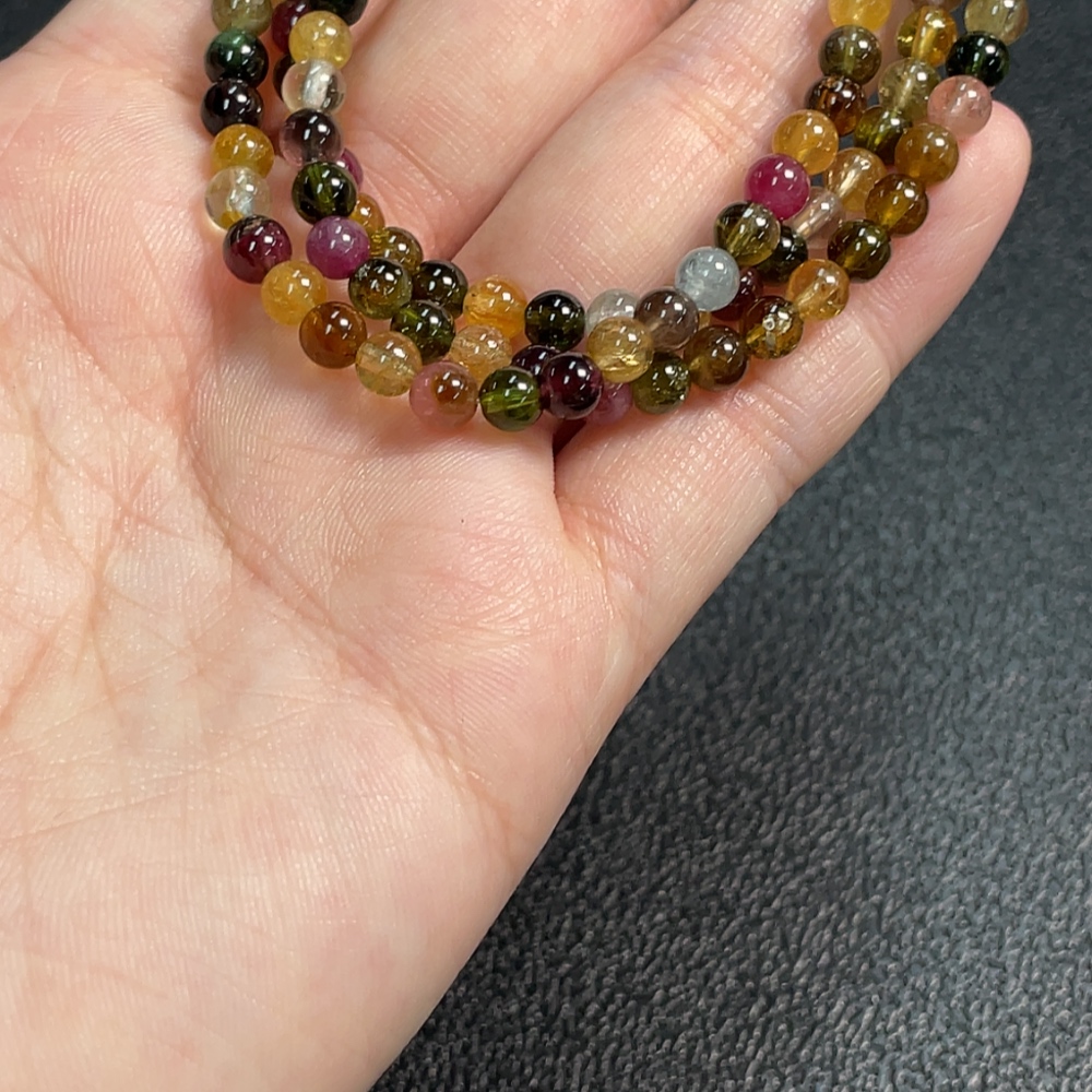 Tourmaline bead strand with visible organic matter, total weight approx. 18.75g, size approx. 4.5mm