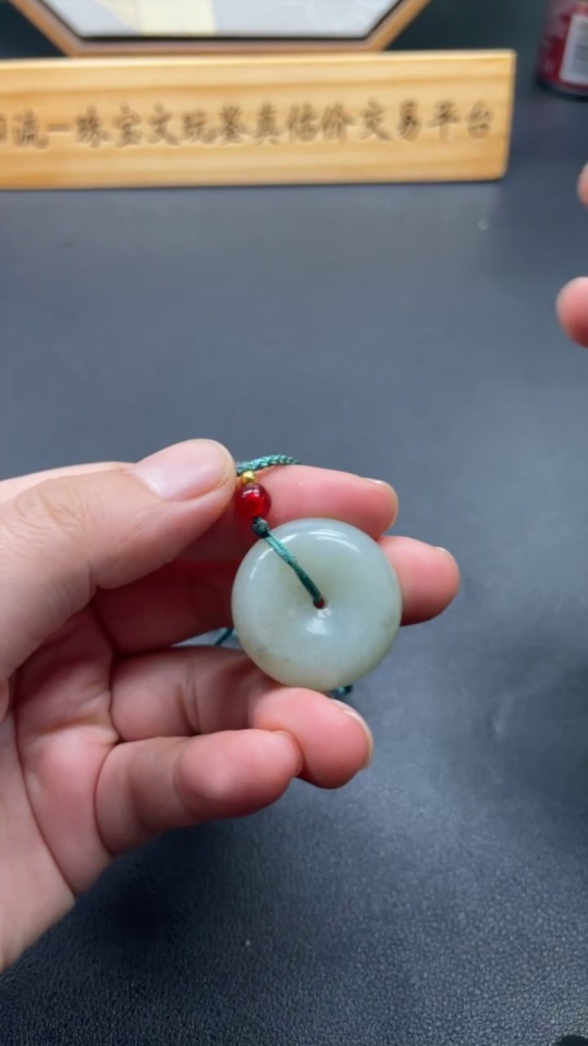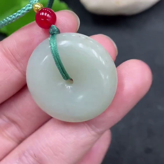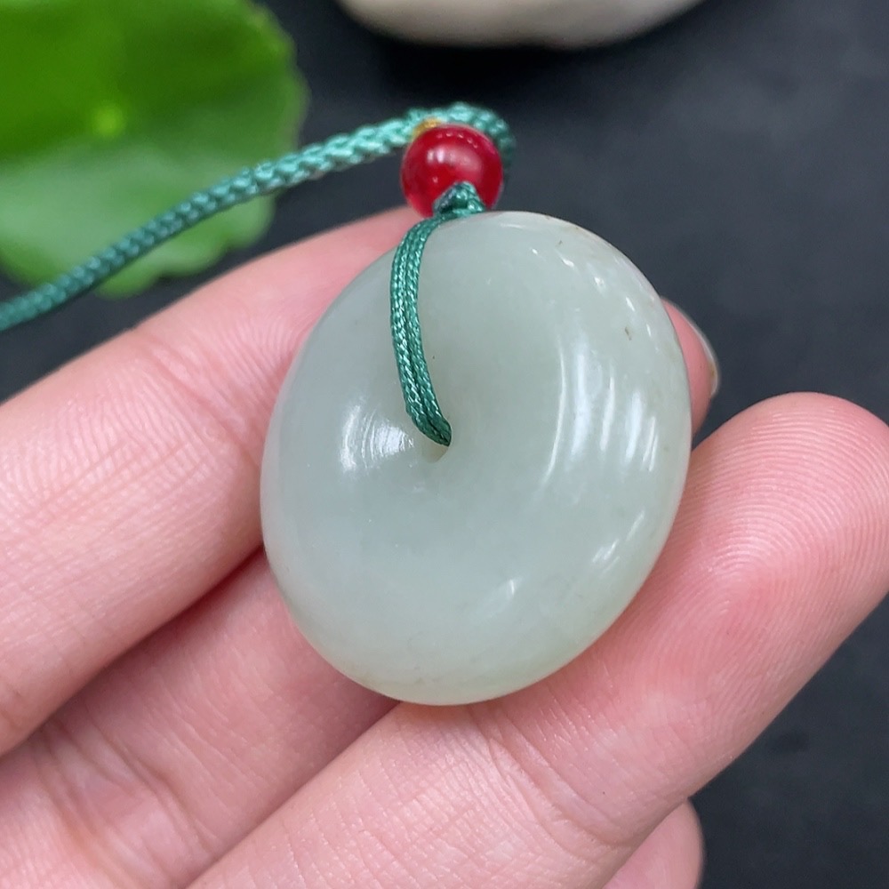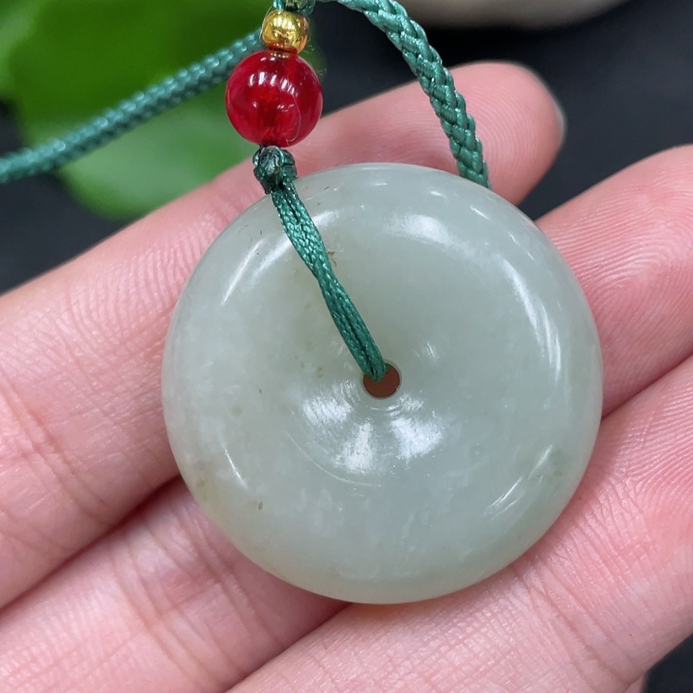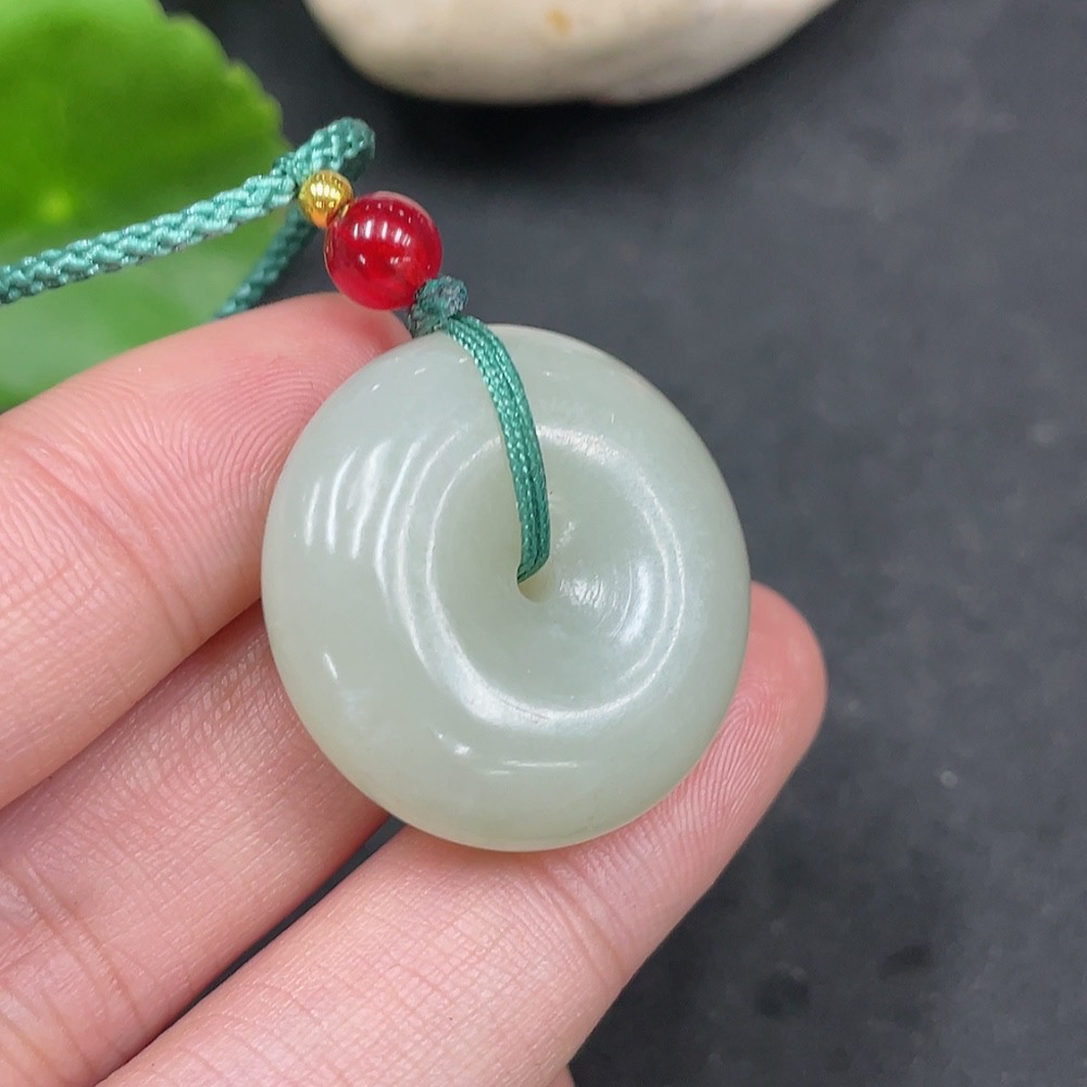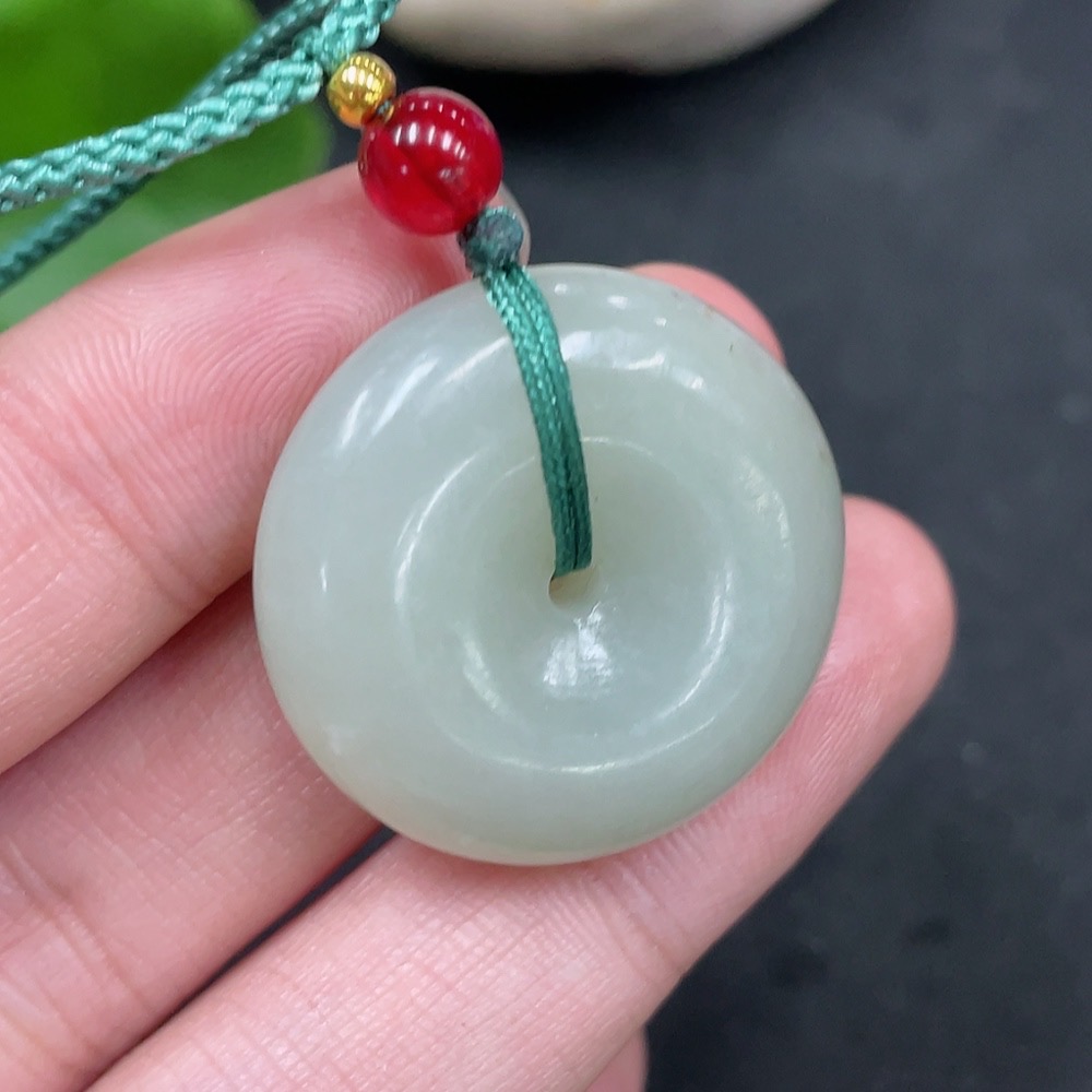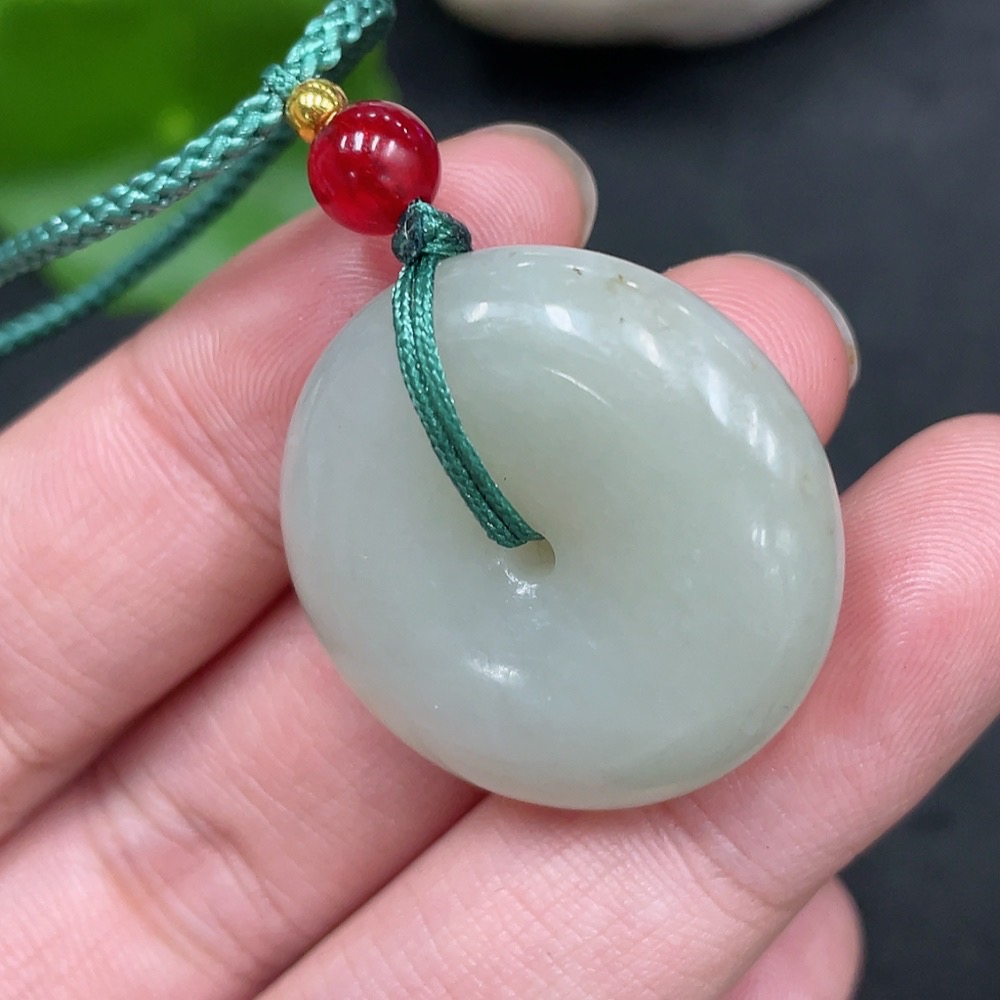 Hetian Jade Pendant Peace Button with Non-Hetian Jade Beads Total Weight Approx. 13.6g (including rope)