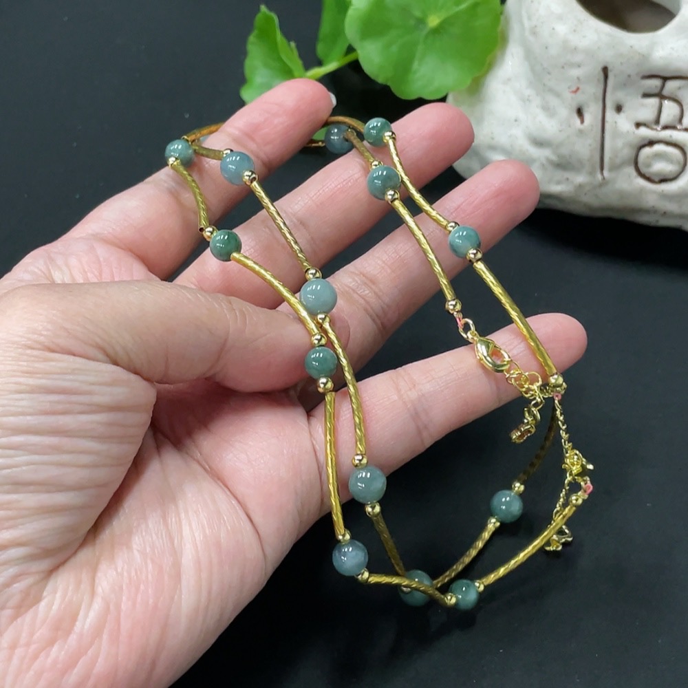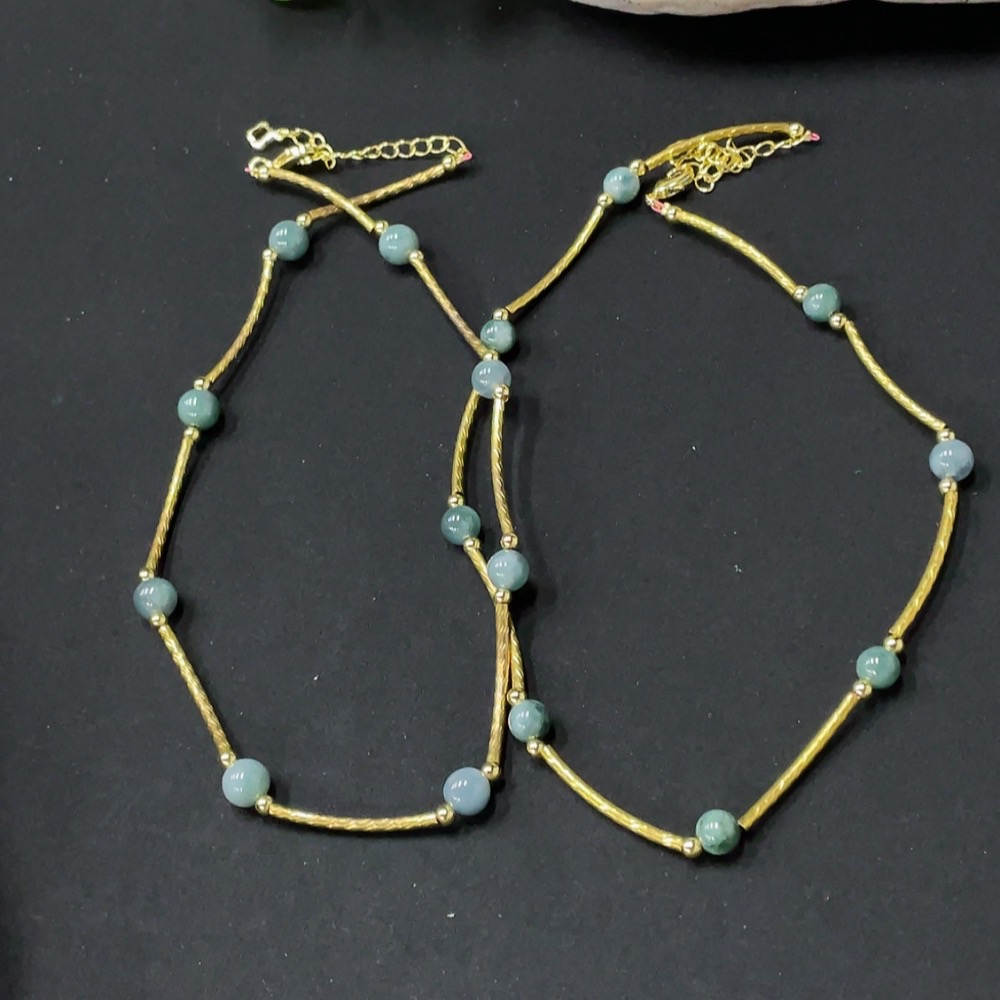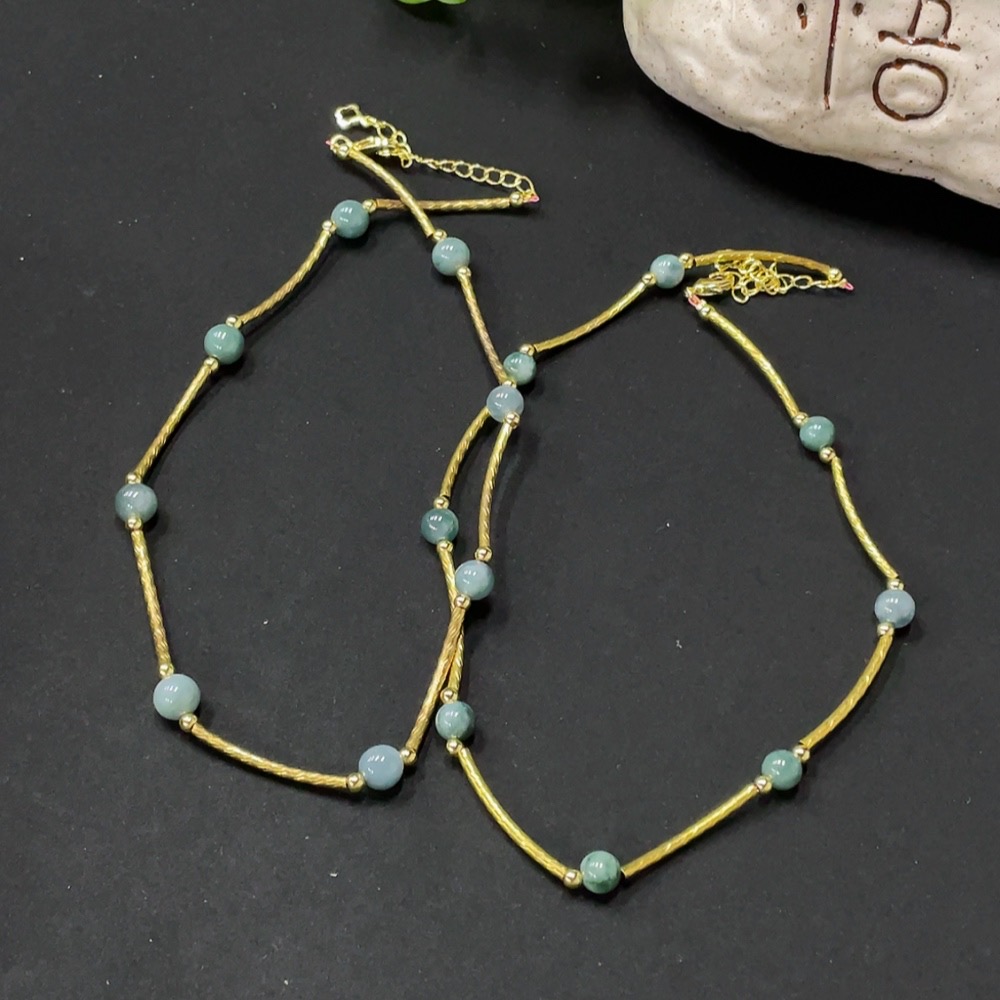 Jadeite Inlaid Bead Chain Non-Gold Total Weight Approx. 14g