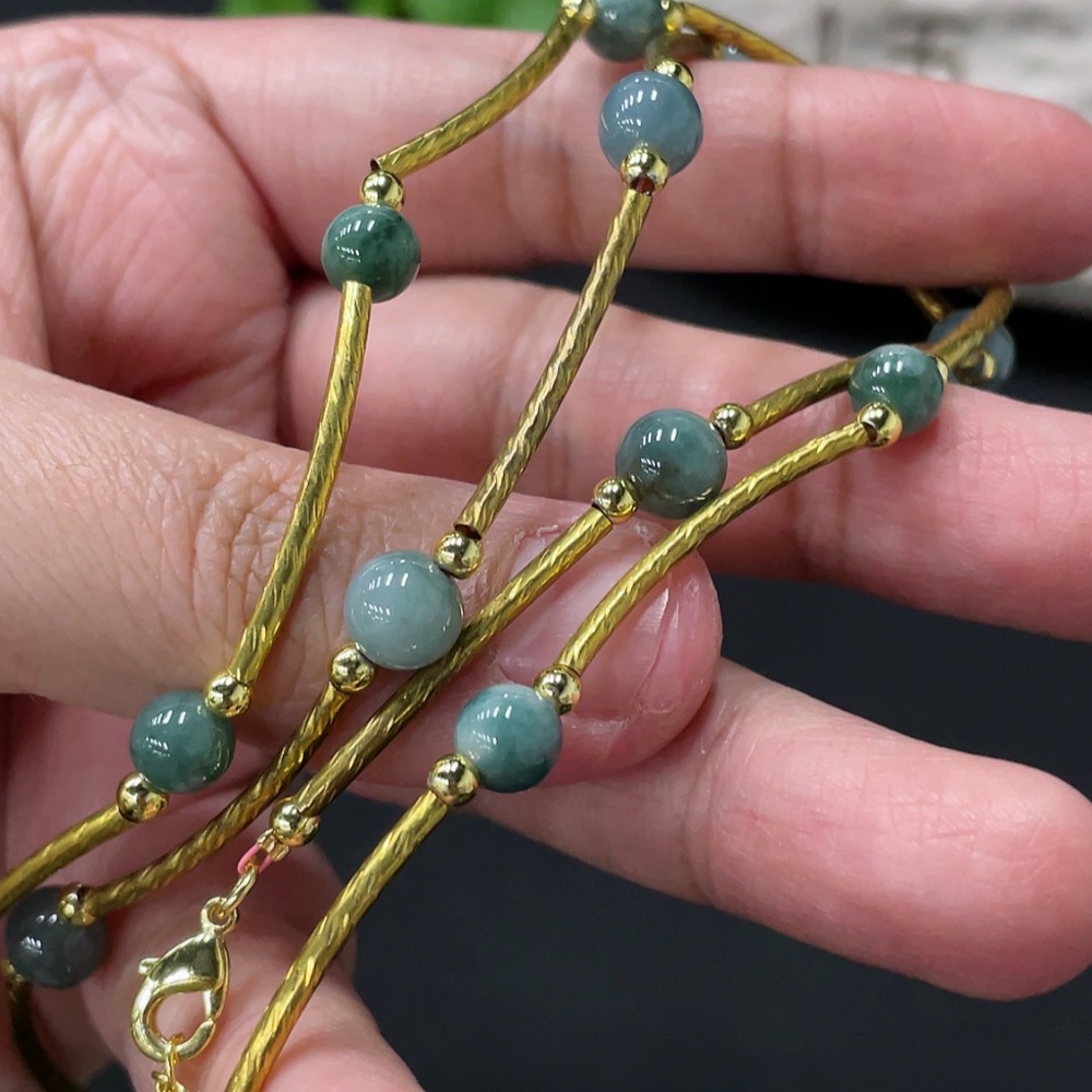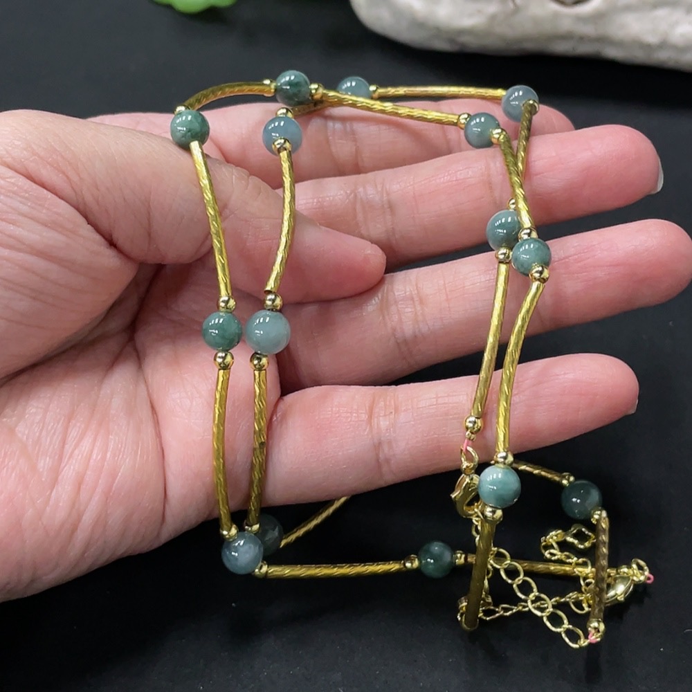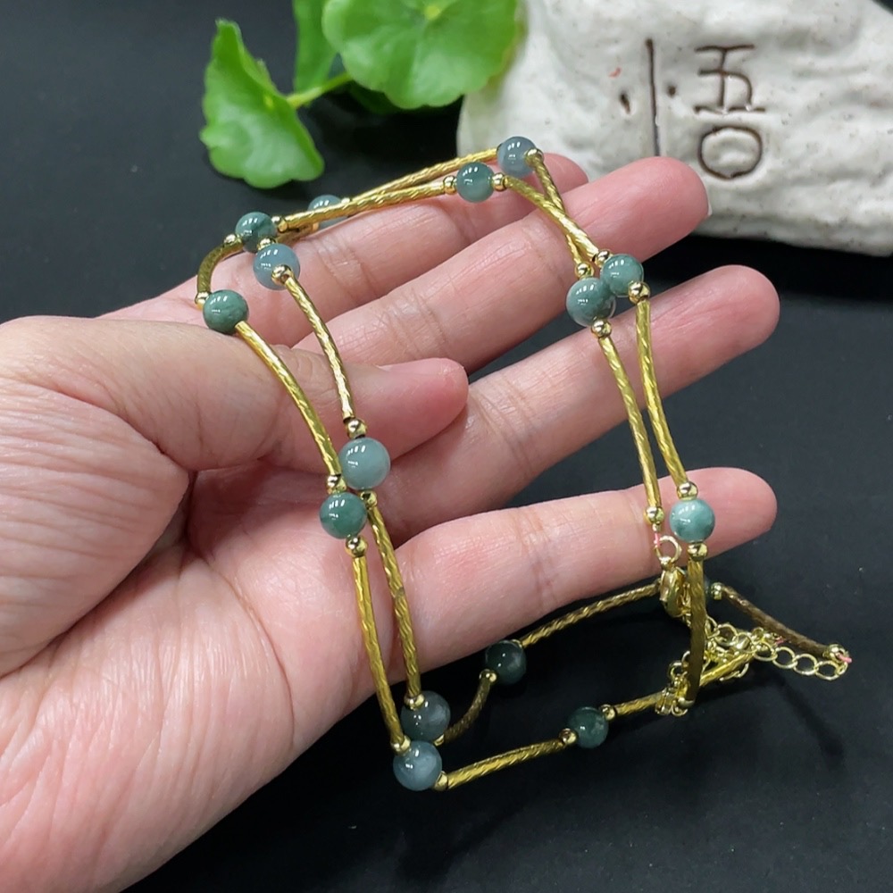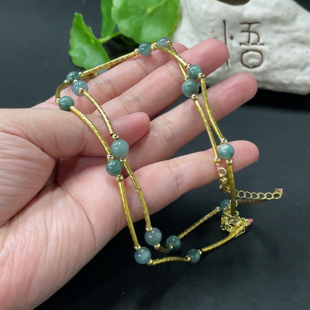 Jadeite Inlaid Bead Chain Non-Gold Total Weight Approx. 14g