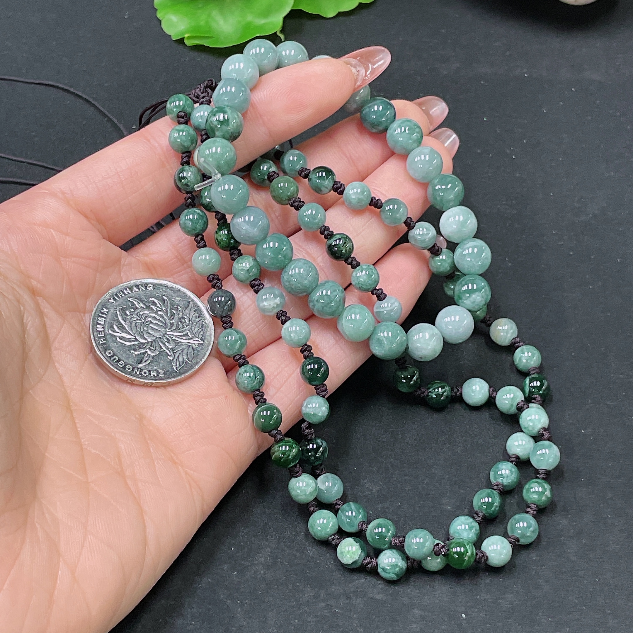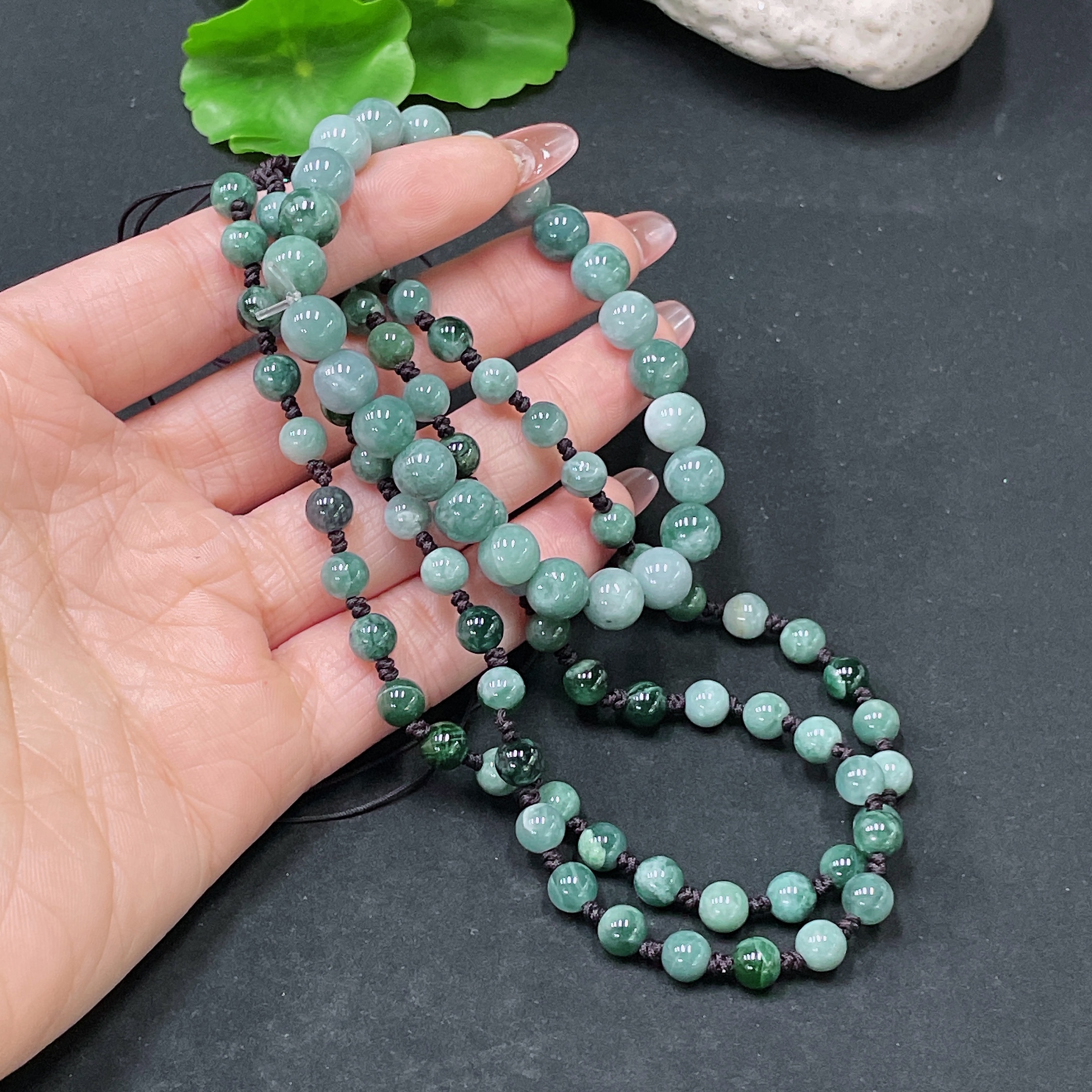 Jadeite Bracelet + Bead Chain Sell as a Lot