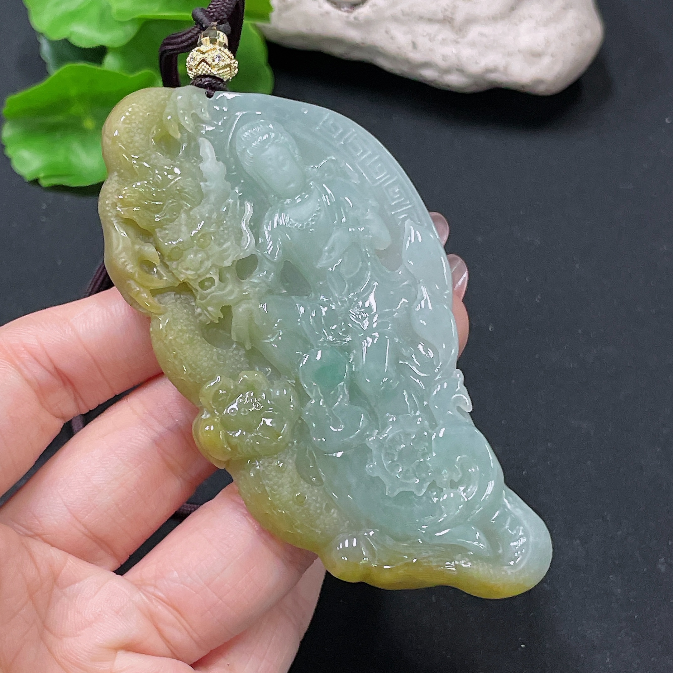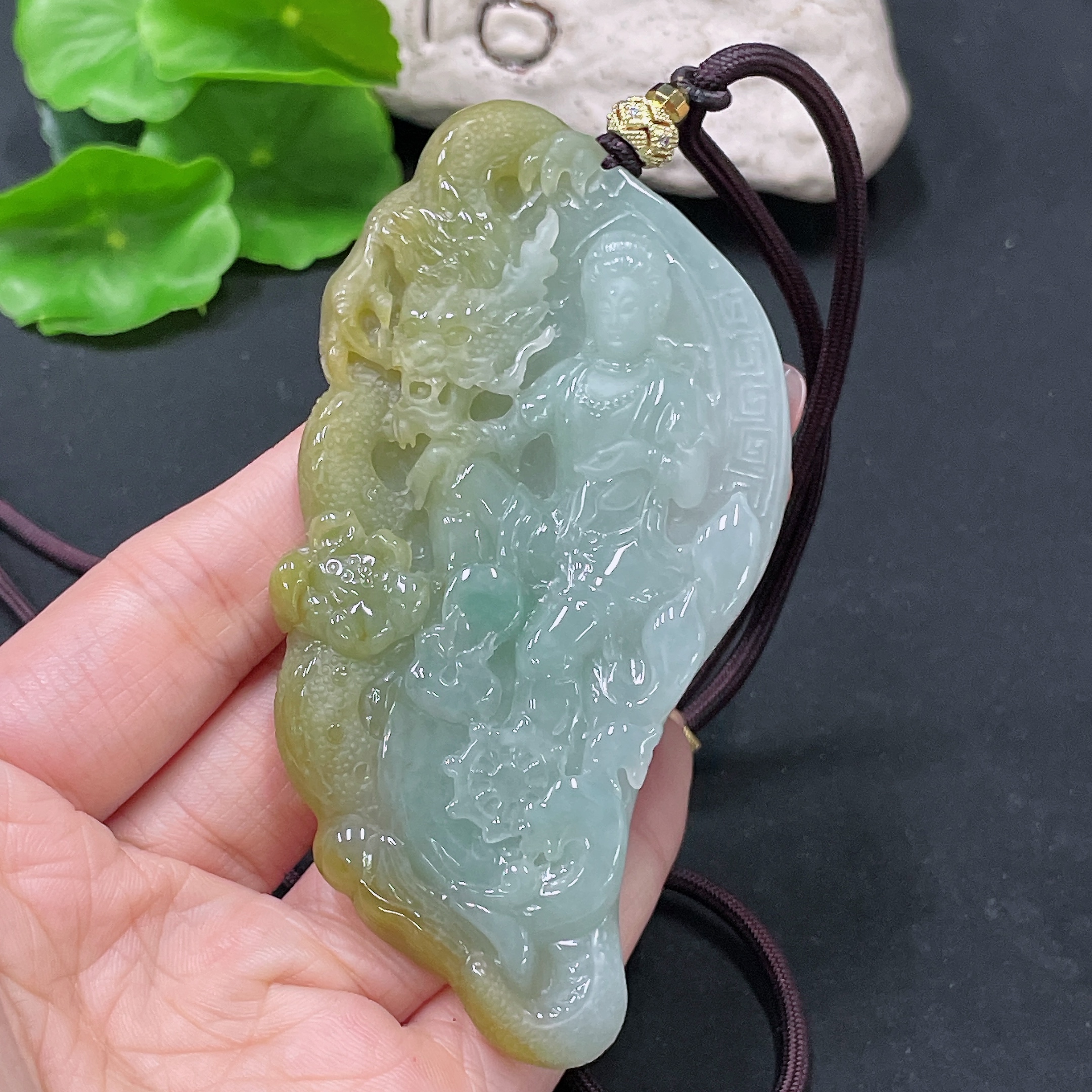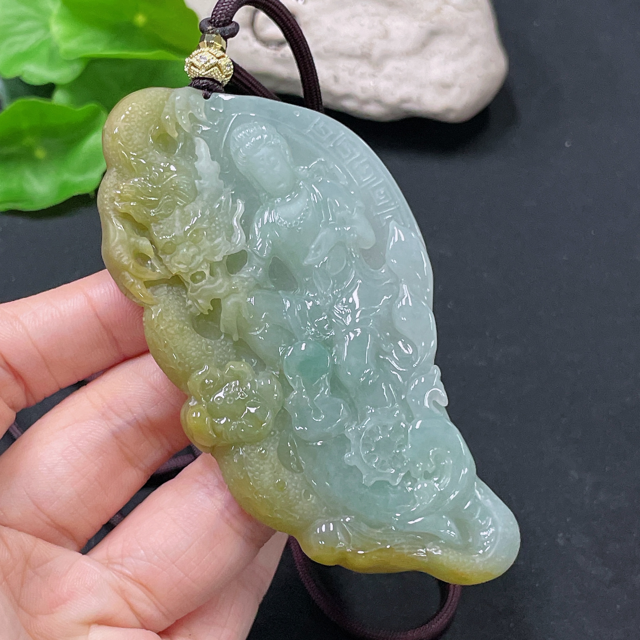 Jadeite Pendant - Imperial Dragon Guanyin with Cord, Total Weight Approx. 77.4g