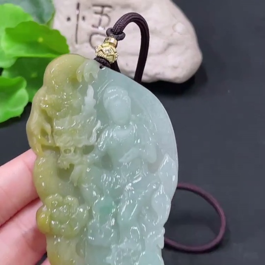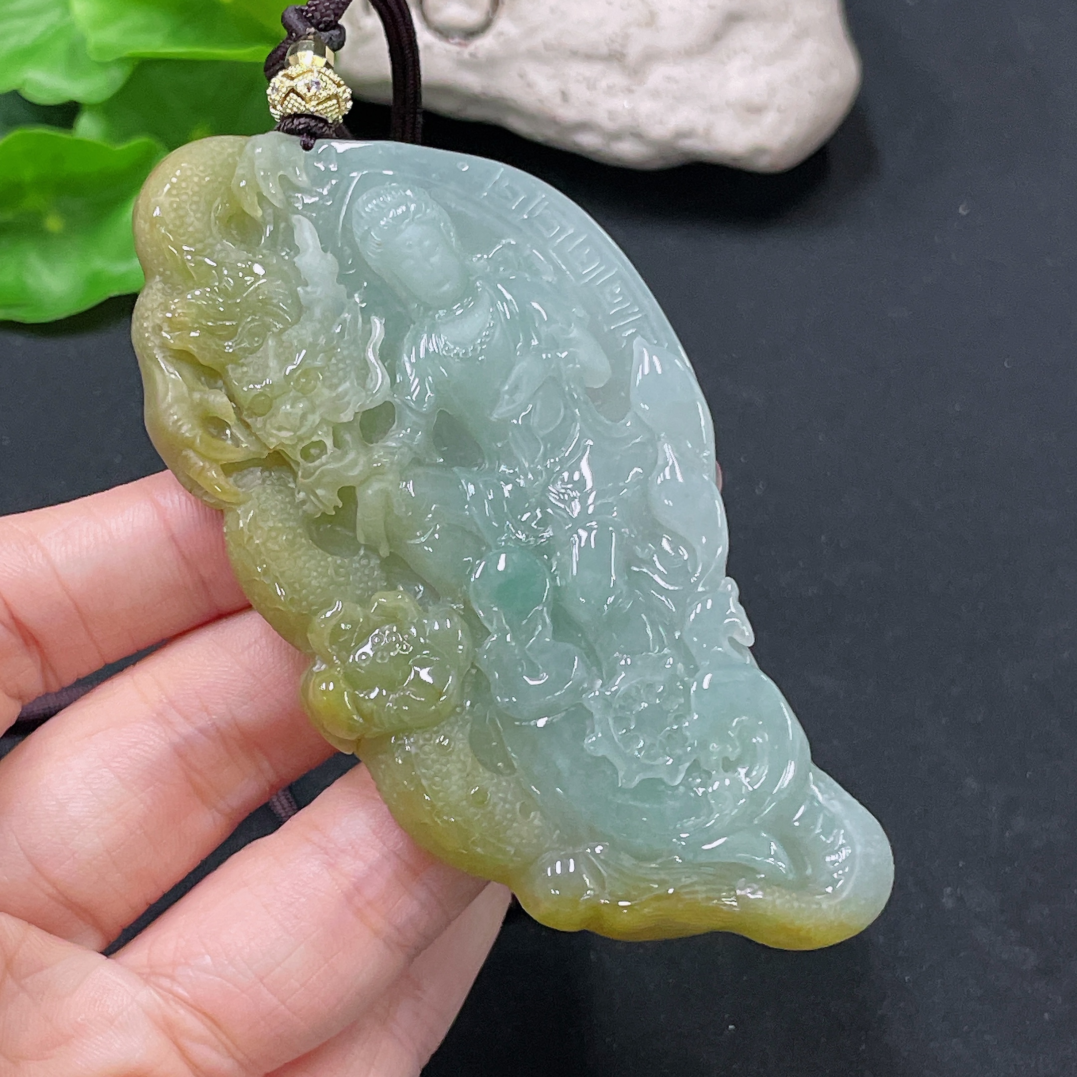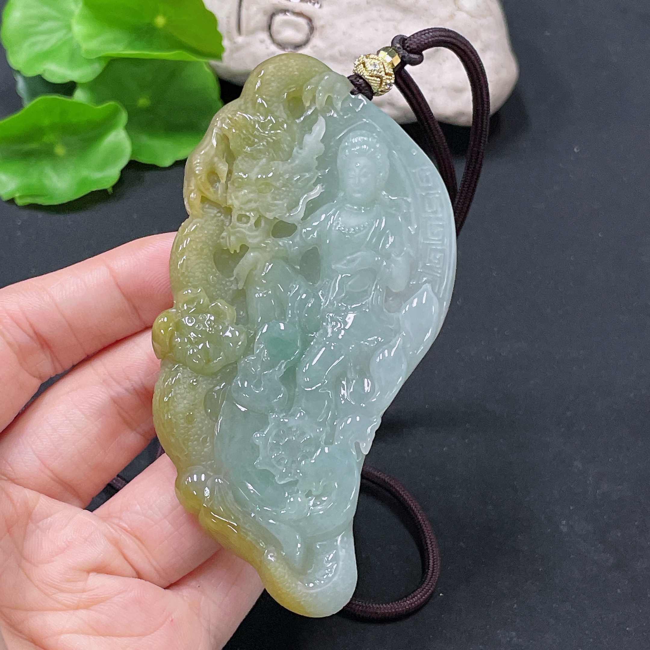 Jadeite Pendant - Imperial Dragon Guanyin with Cord, Total Weight Approx. 77.4g