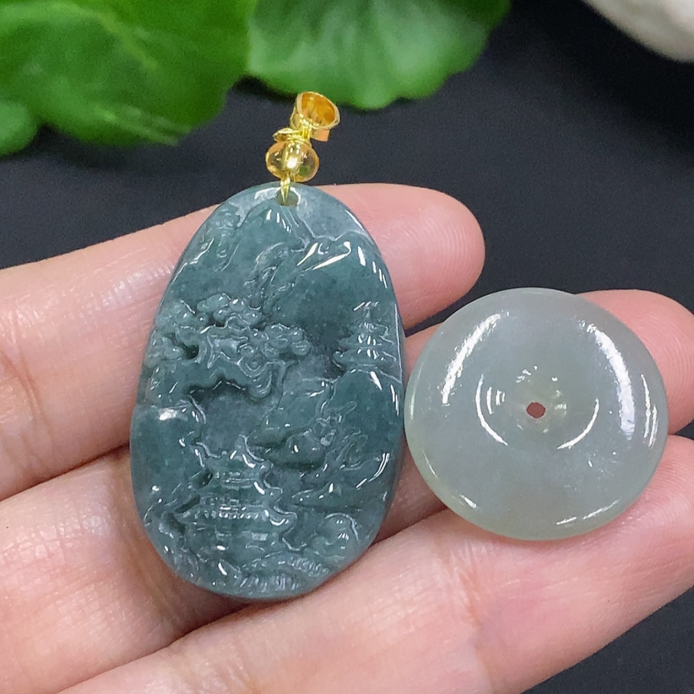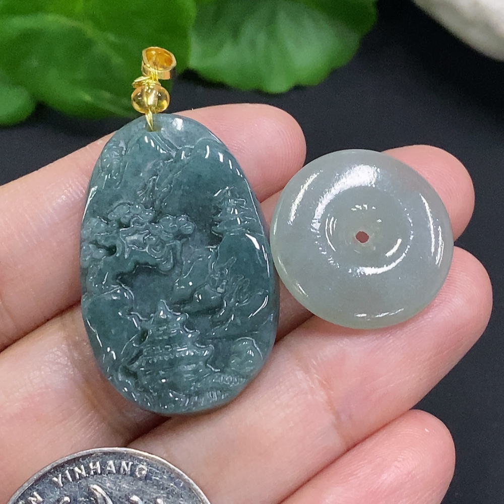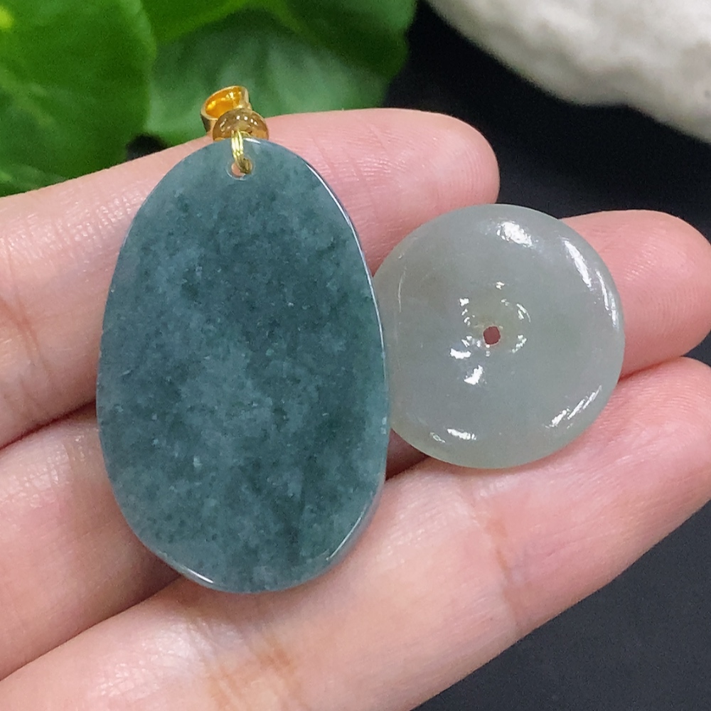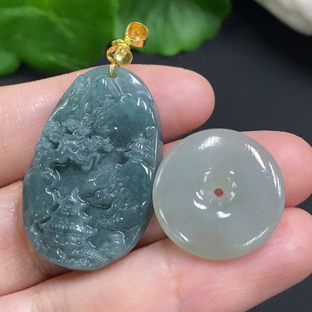 Jadeite Pendants Sell as a Lot Non-Gold Inlaid