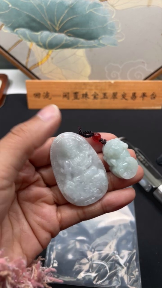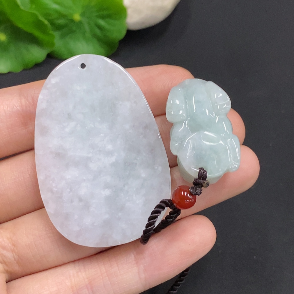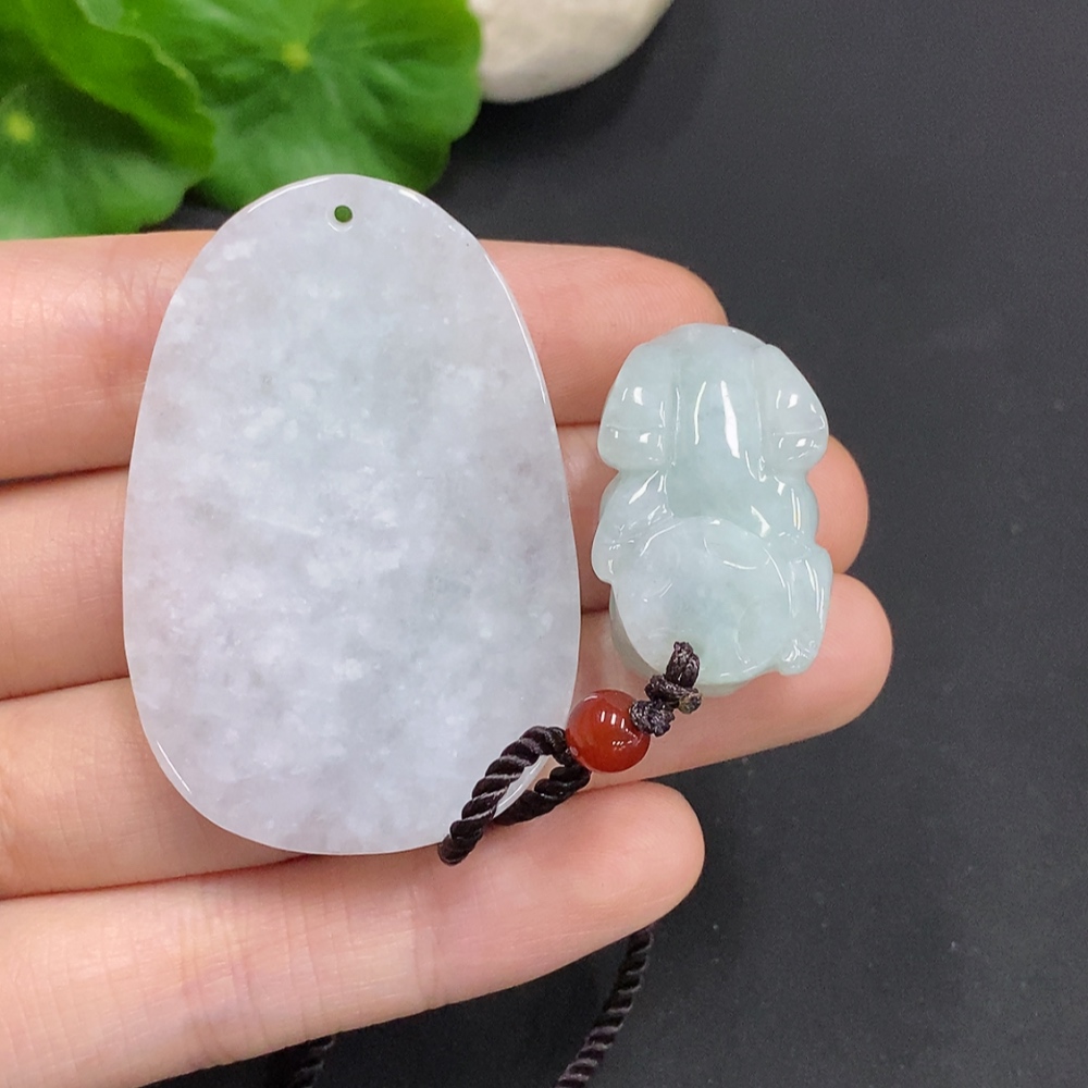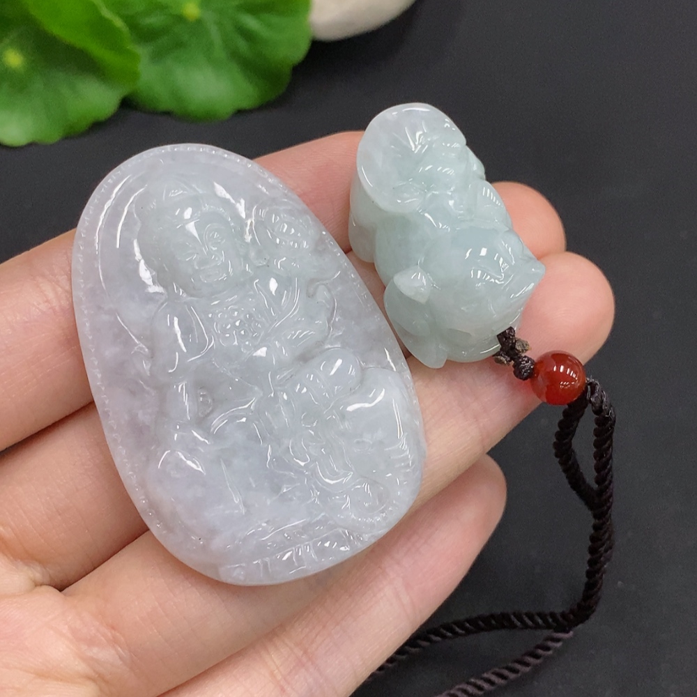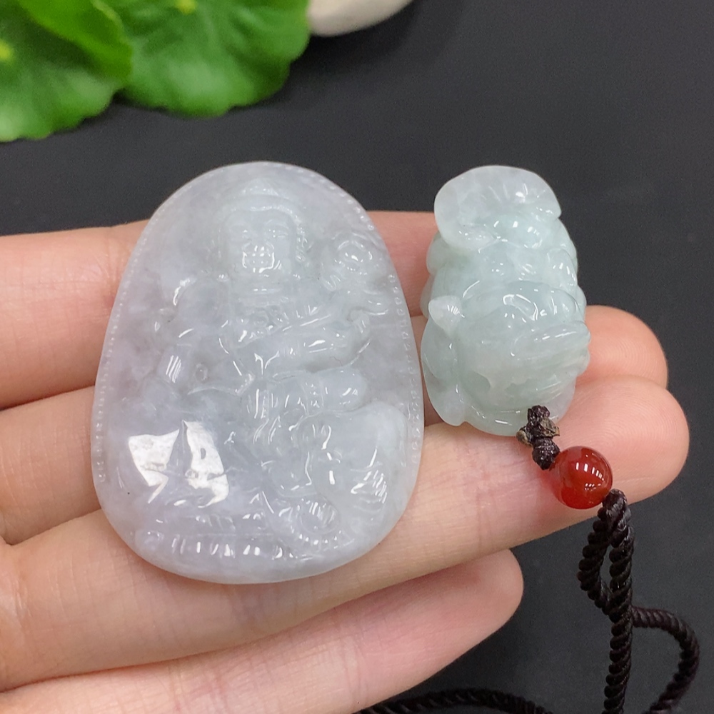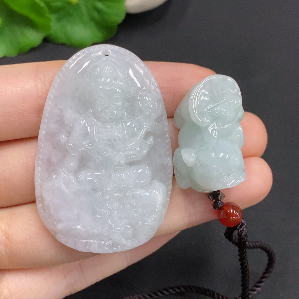 Jadeite Pendant Pixiu Guanyin Plaque with Non-A Grade Beads Total Weight Approx. 34.87g
