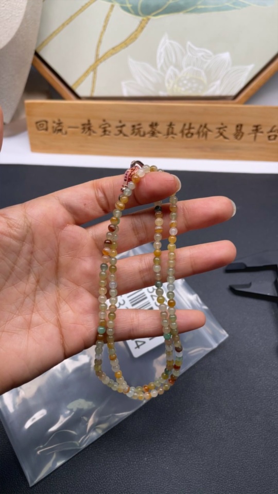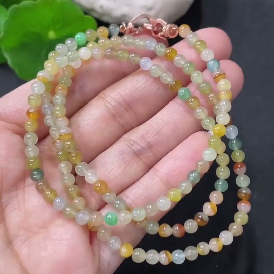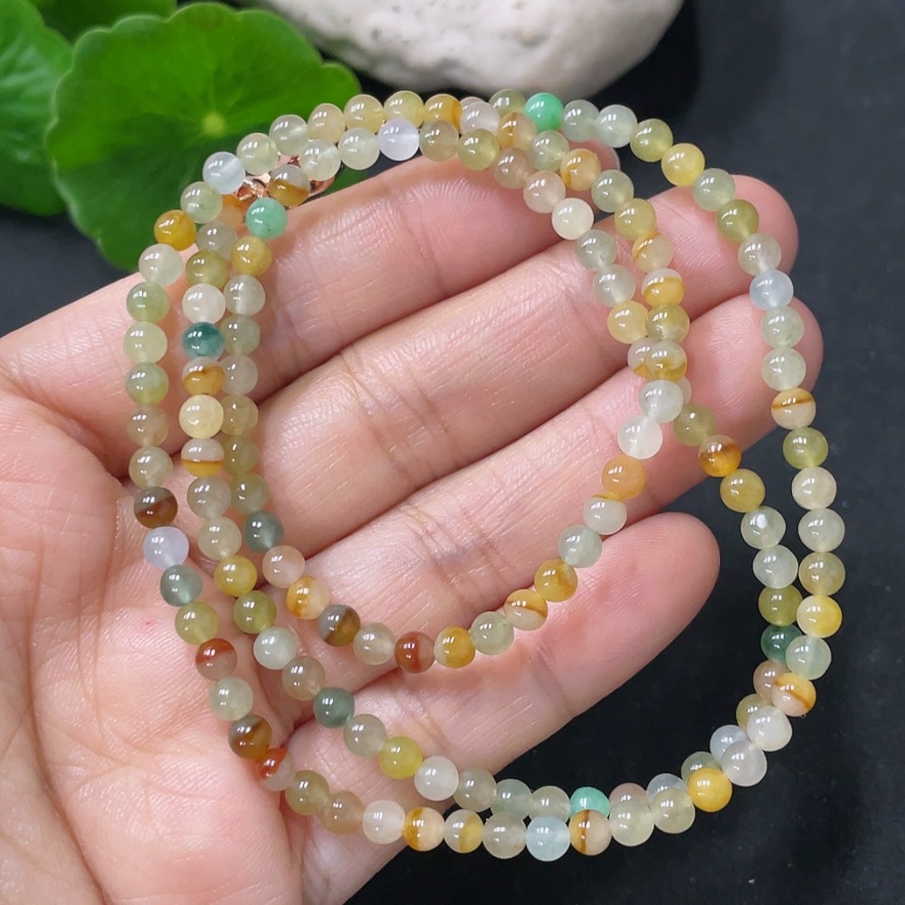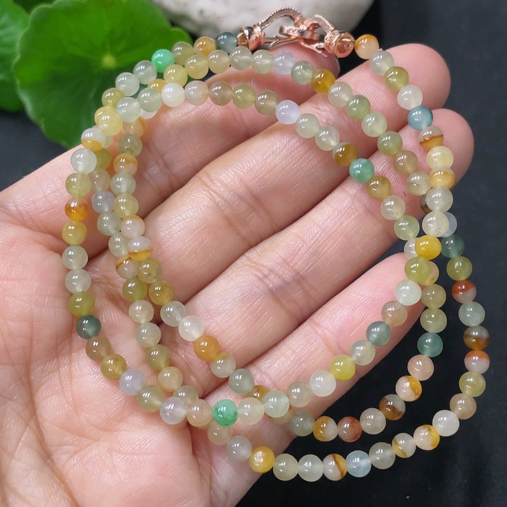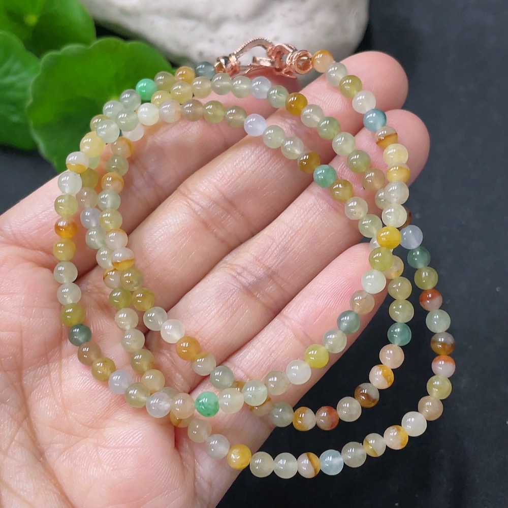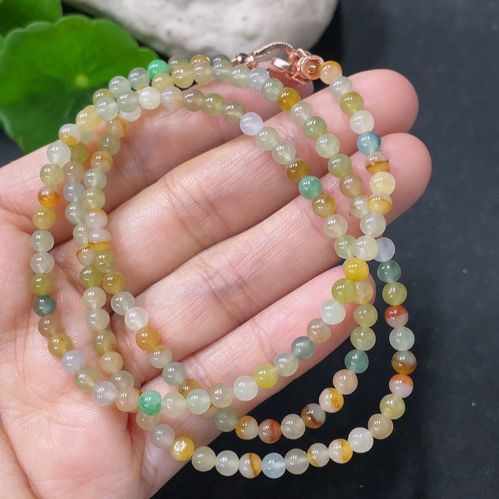 Jadeite Bead Necklace Non-Gold Card 3.8mm Approx Total Weight 14.36g