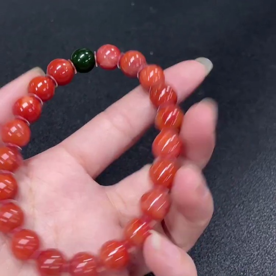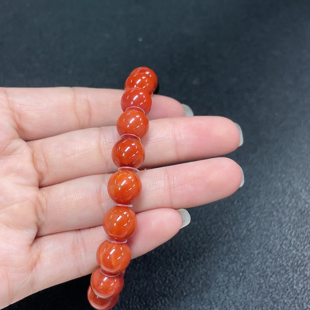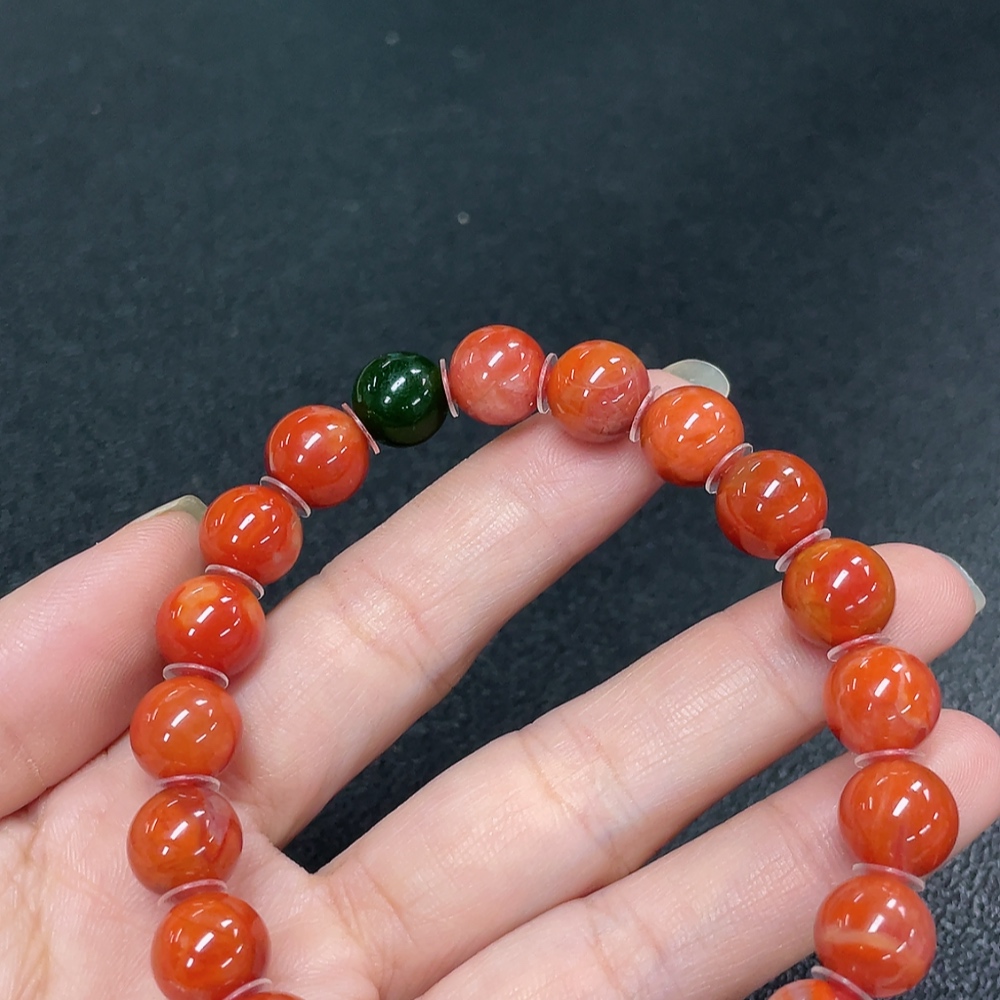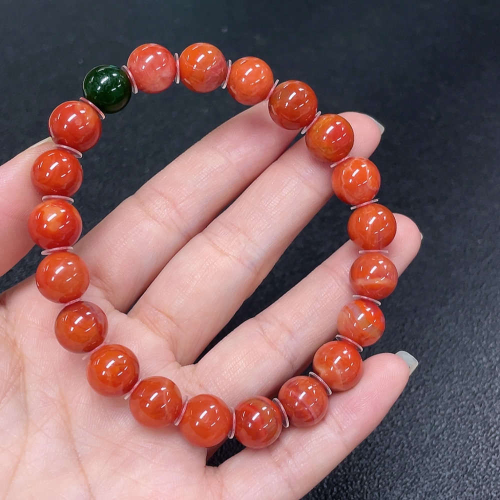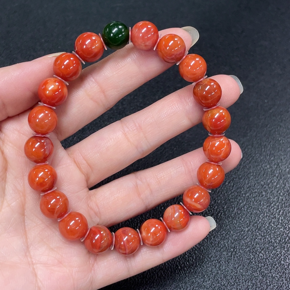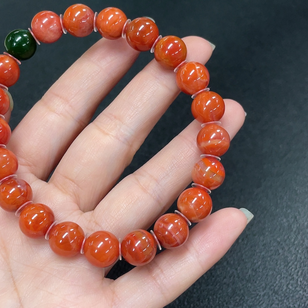 Red Agate Bracelet with Visible Organic Matter, Non-Natural Accent Stones, Total Weight Approx. 30.64g, Size ~10mm