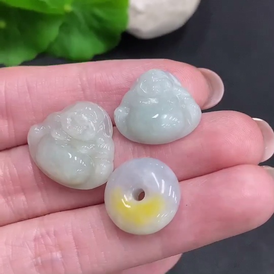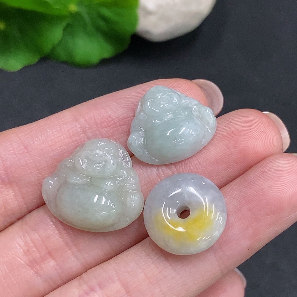 Jadeite Pendant Sell as a Lot Yellow Color Origin Undetermined