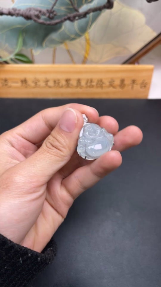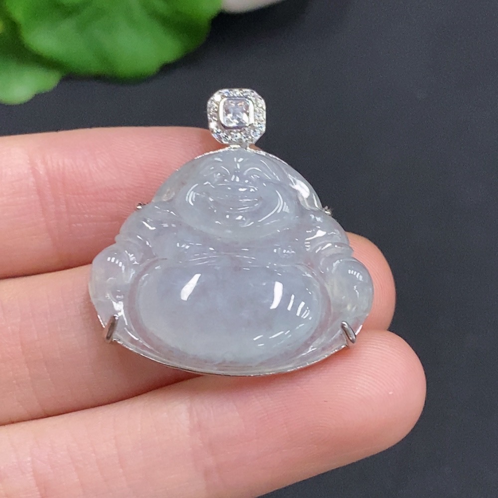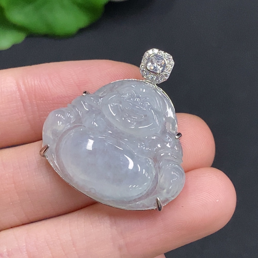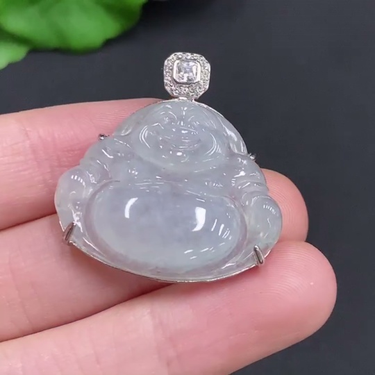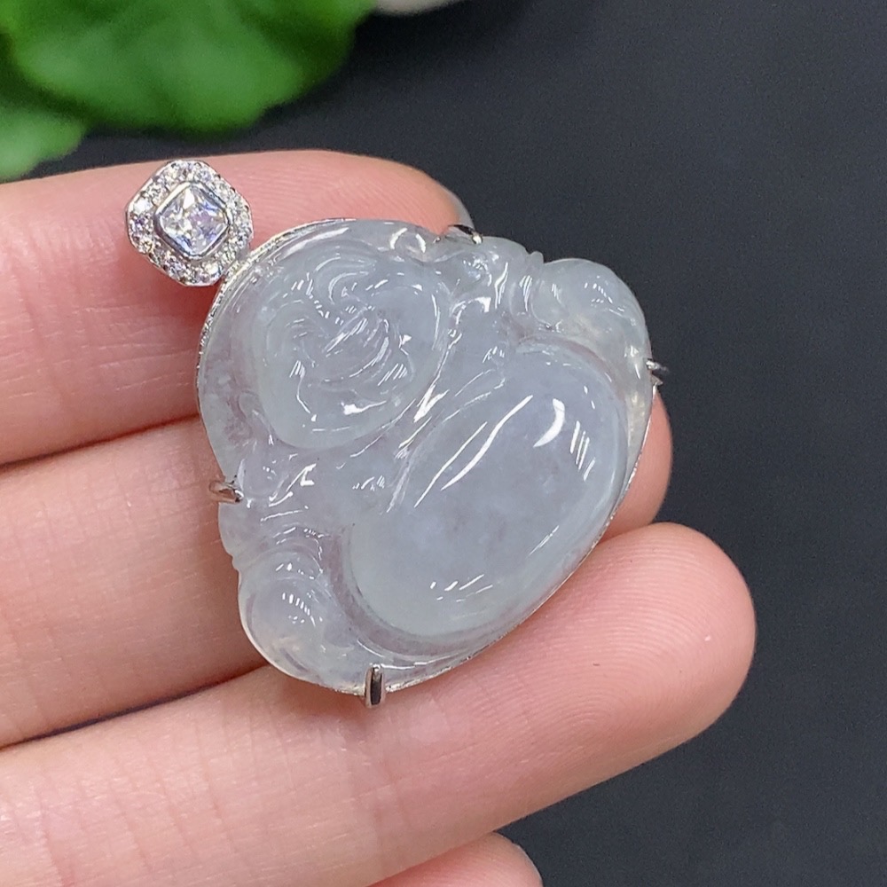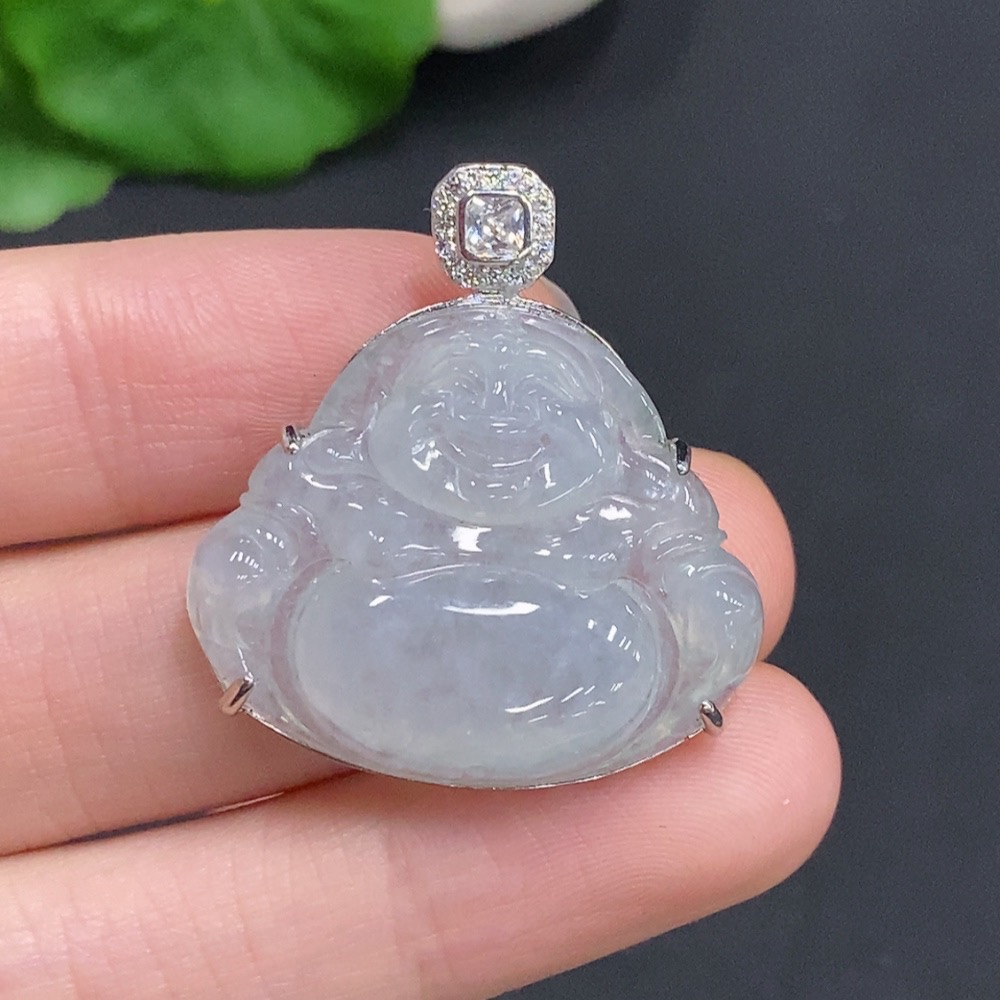 Jadeite Buddha Pendant with Inlay Non-Gold Total Weight Approx. 7.58g