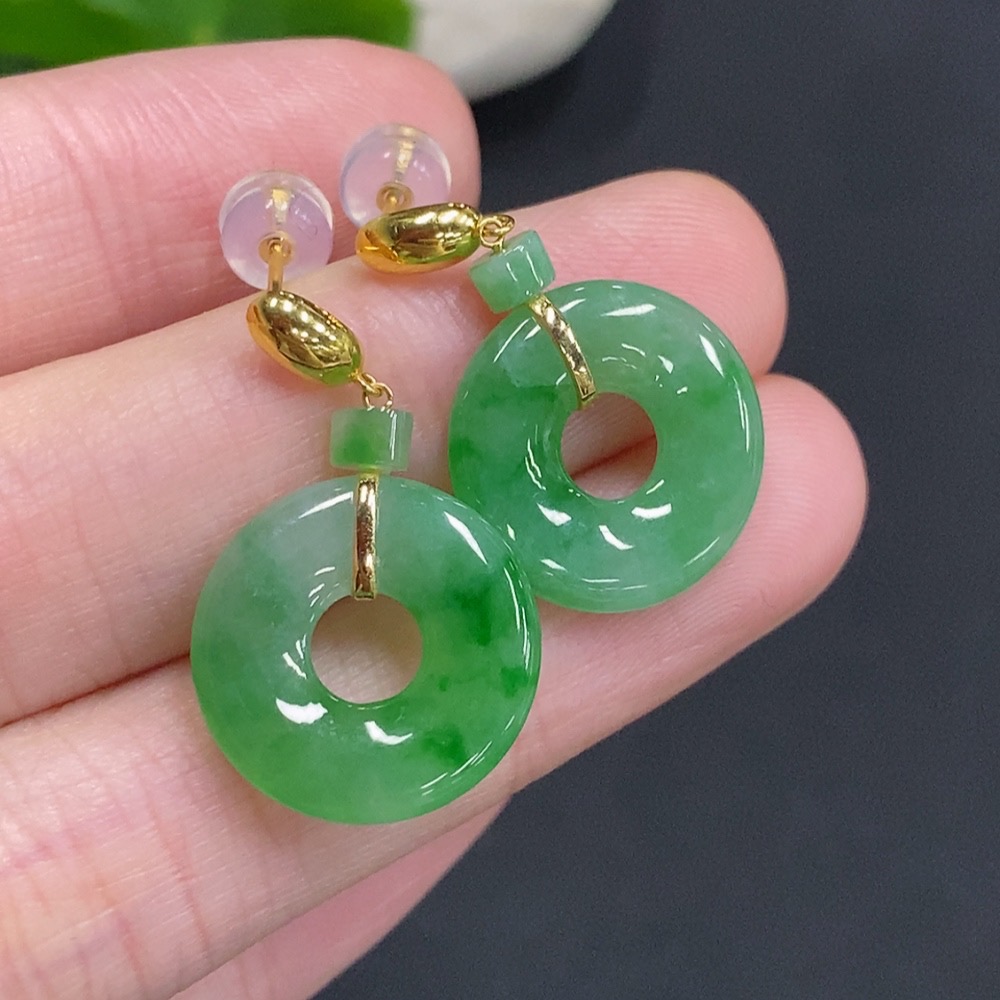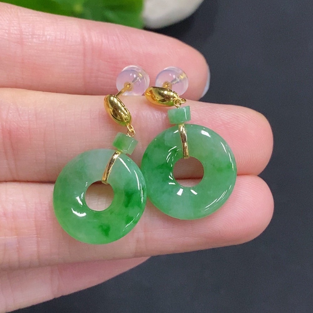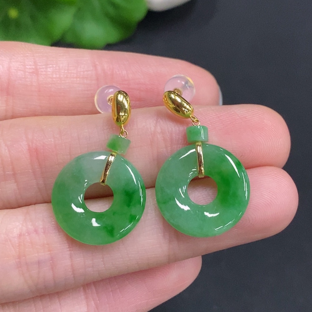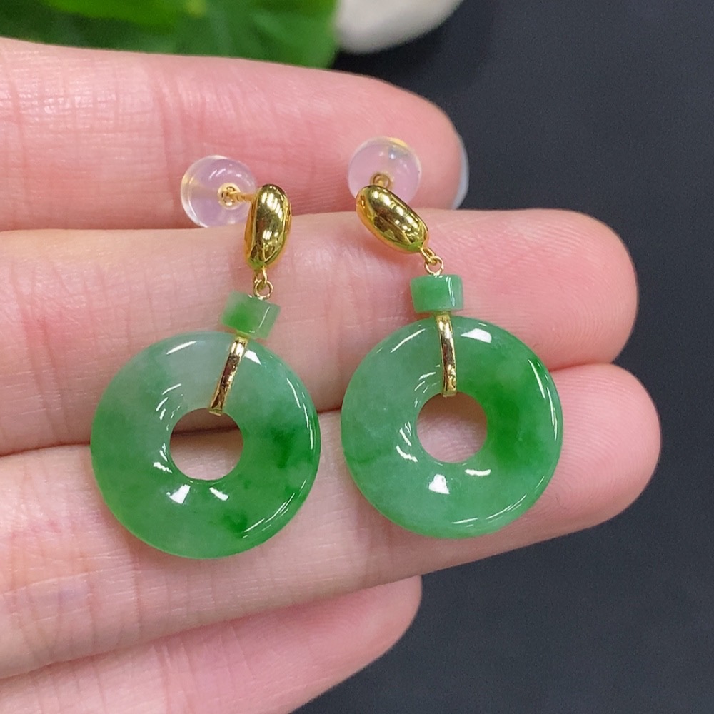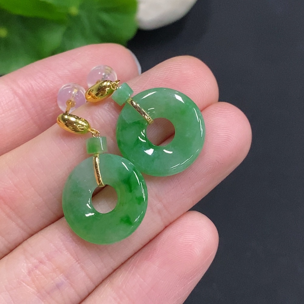 Jadeite Donut Inlaid Earrings 18k Gold Total Weight Approximately 3.8g