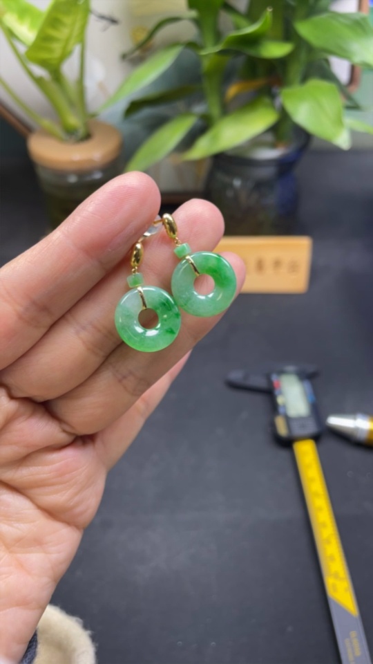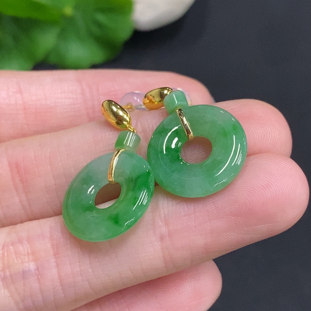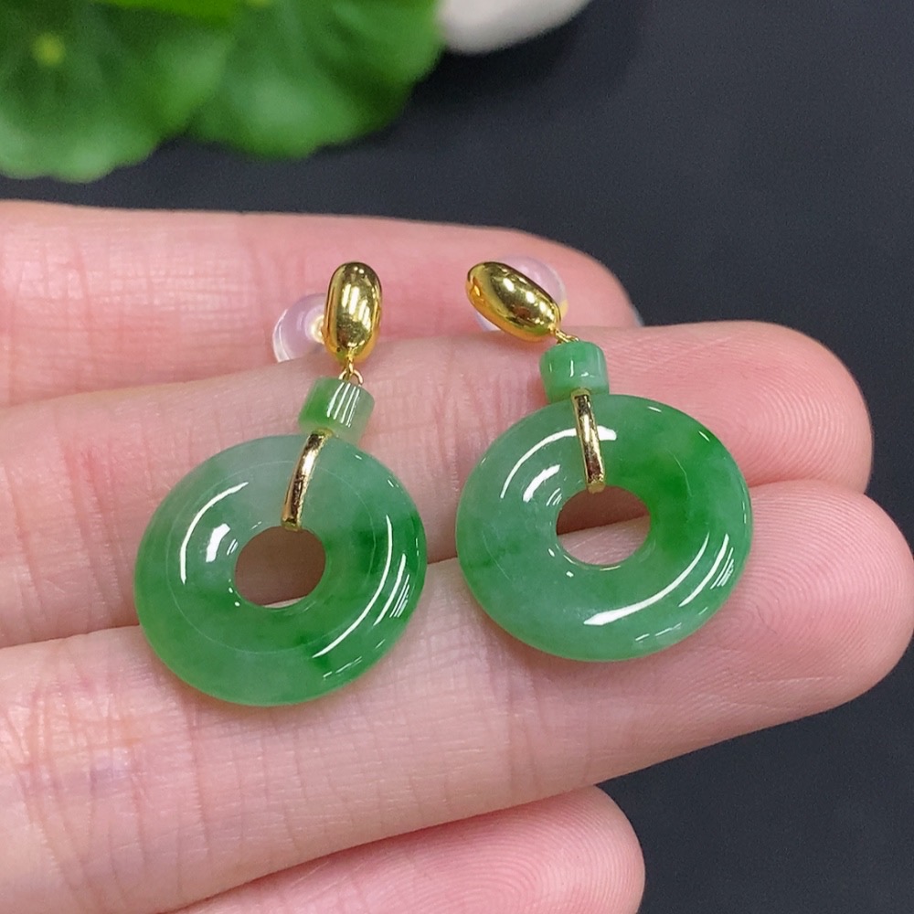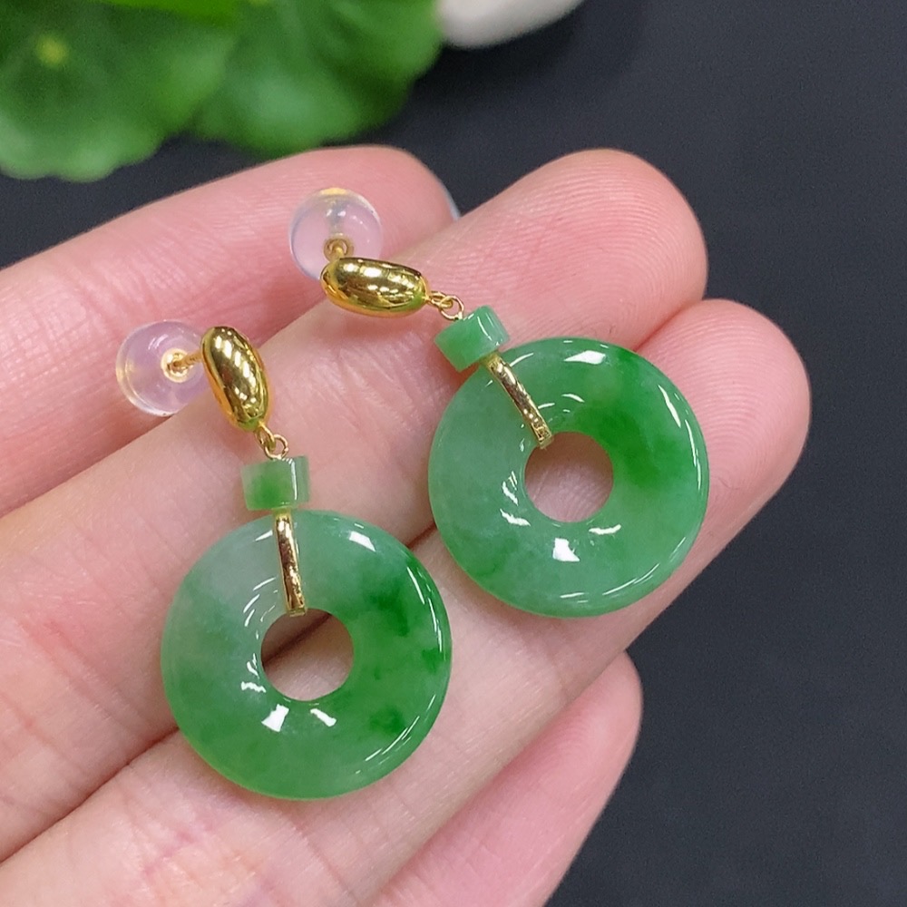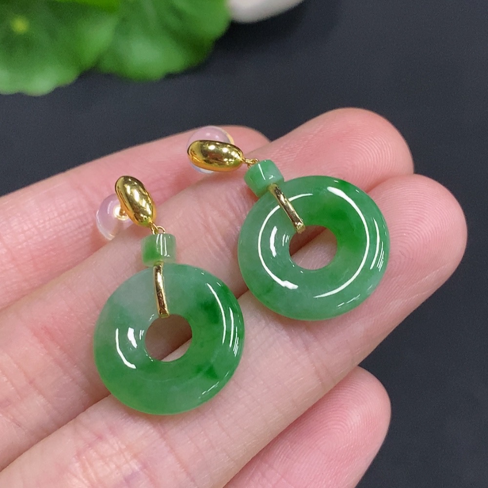 Jadeite Donut Inlaid Earrings 18k Gold Total Weight Approximately 3.8g