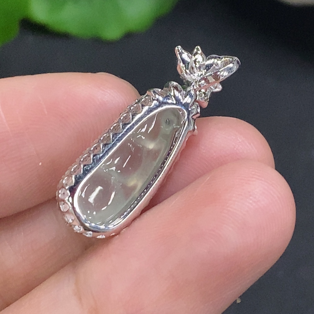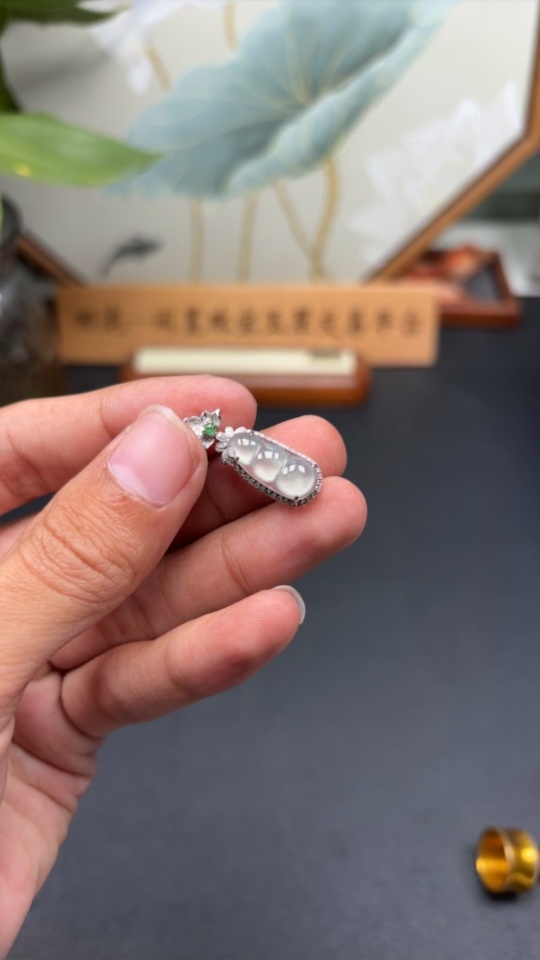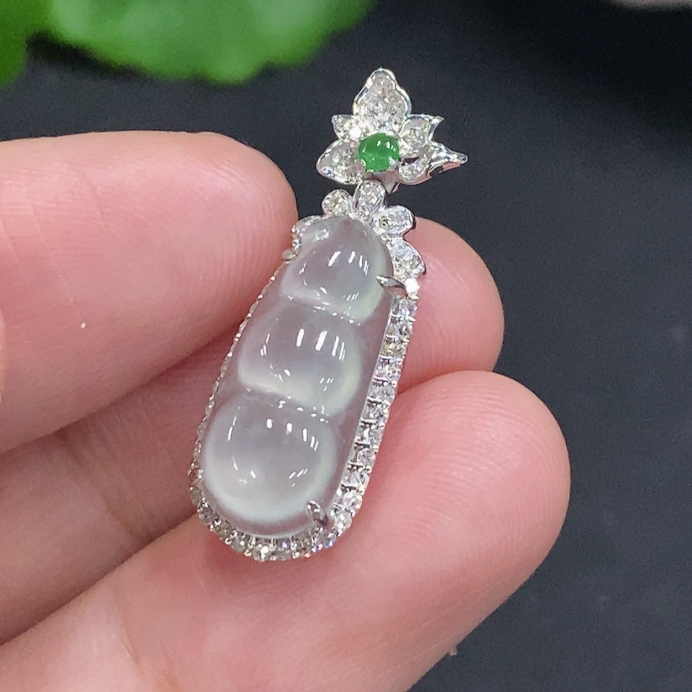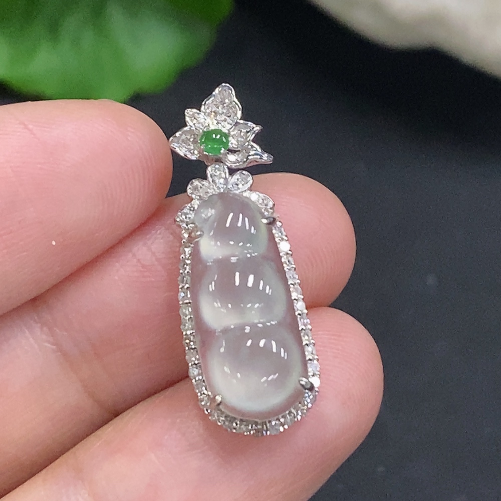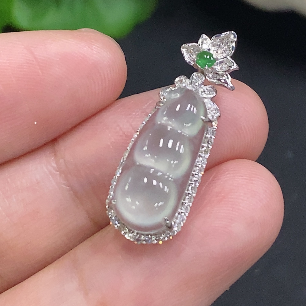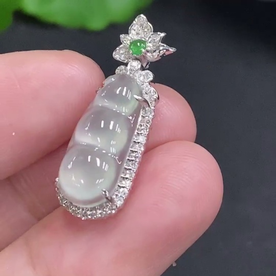 Jadeite Lucky Bean Pendant in 18K Gold, Total Weight Approx. 2.3g (with Diamond Accents)