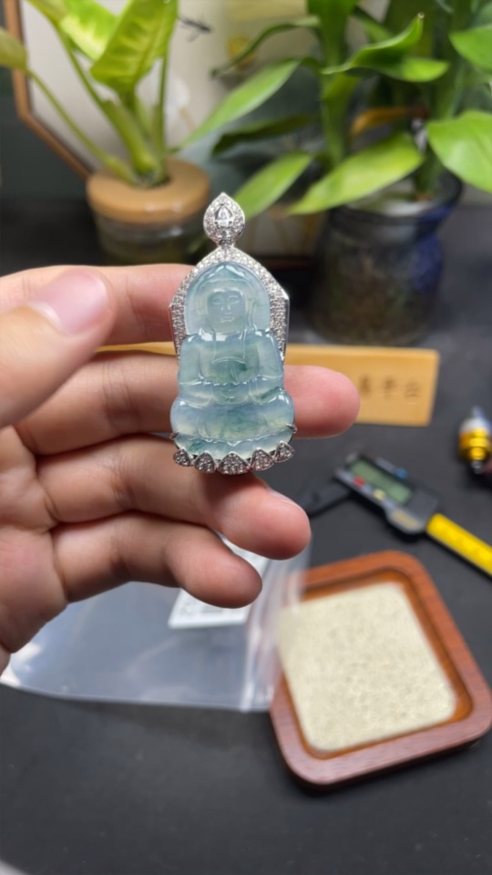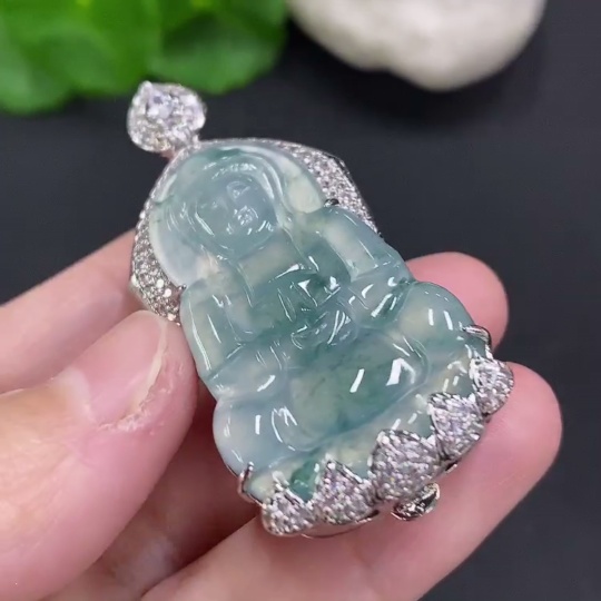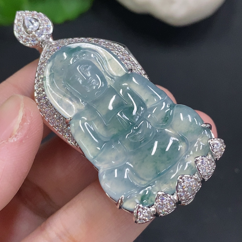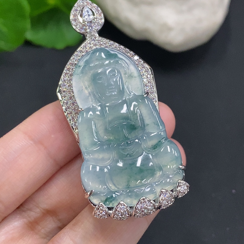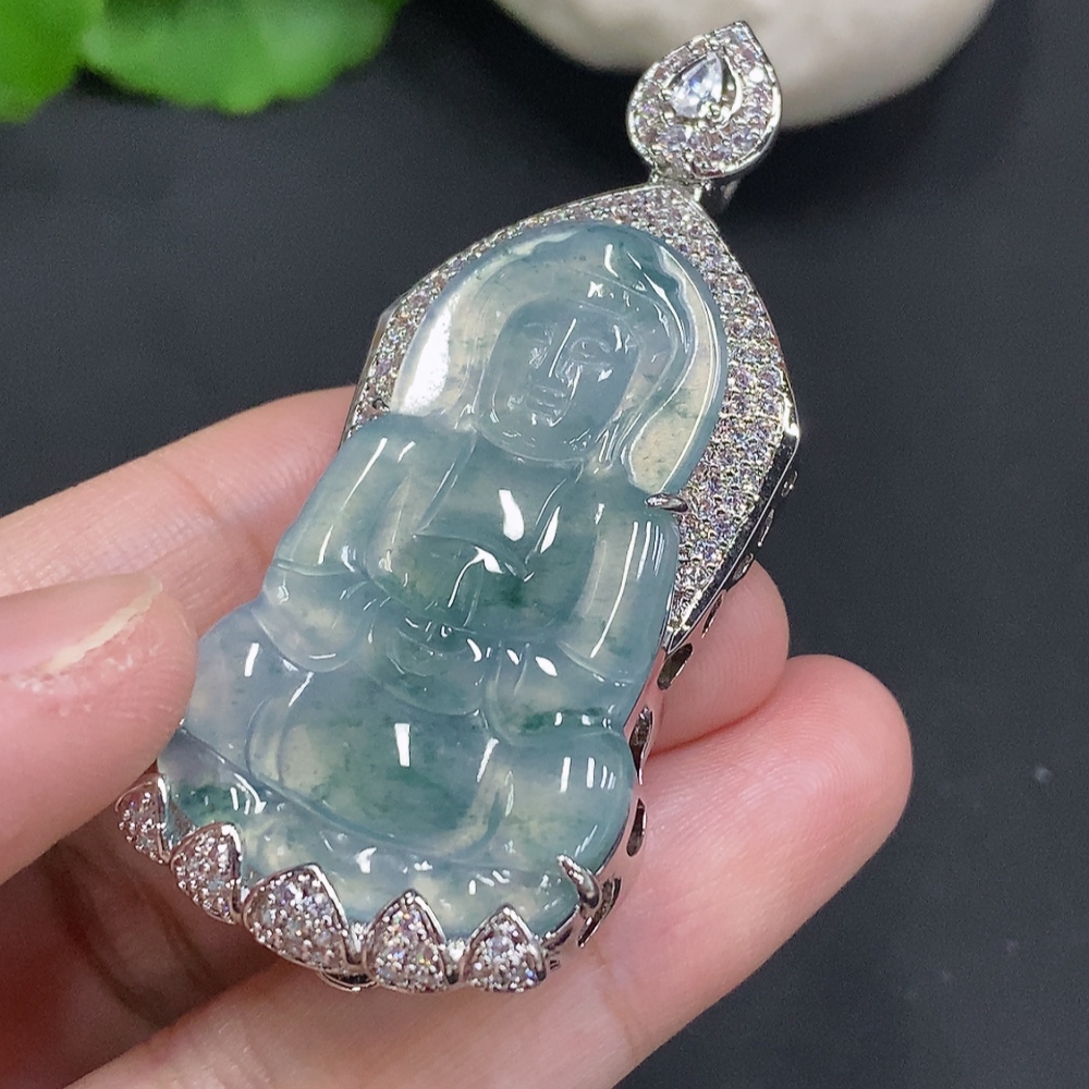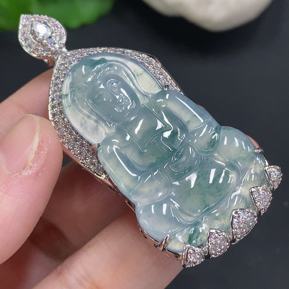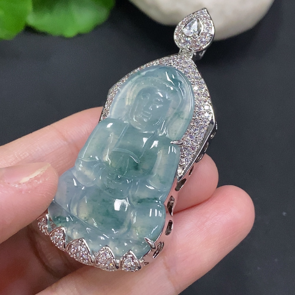 Jadeite Guanyin Inlaid Pendant Non-Gold Inlaid Total Weight Approx. 22.3g