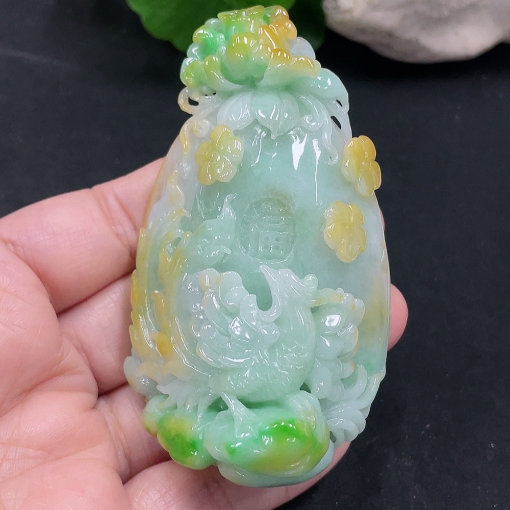 Jadeite Phoenix Pendant Total Weight Approx. 111.7g