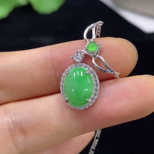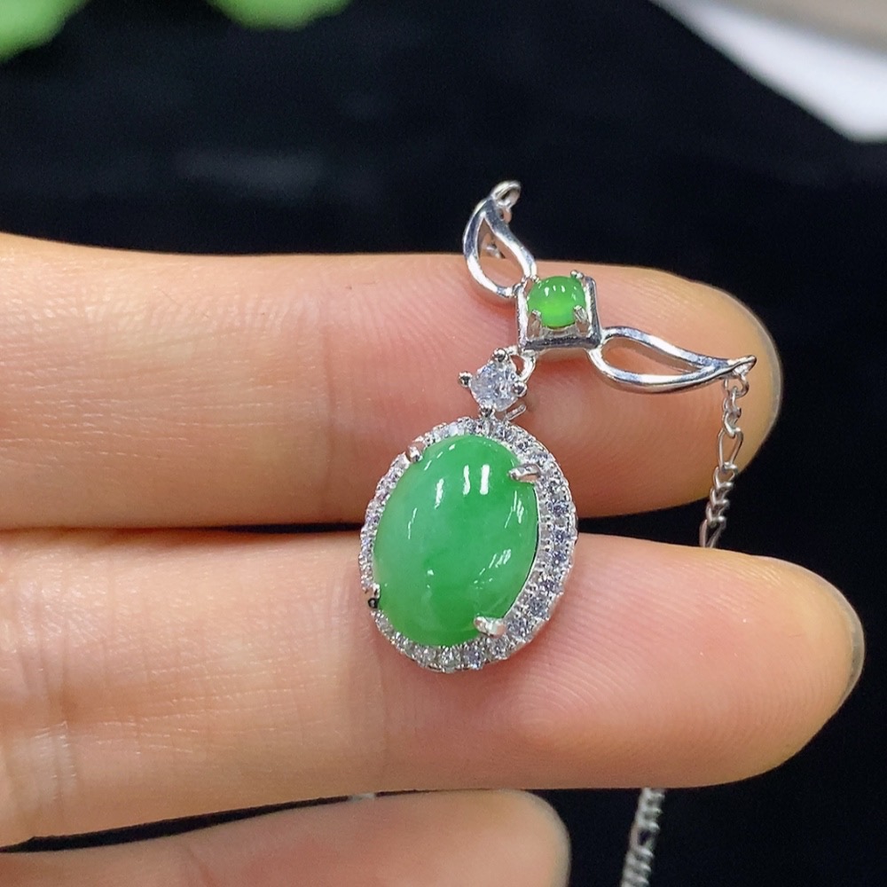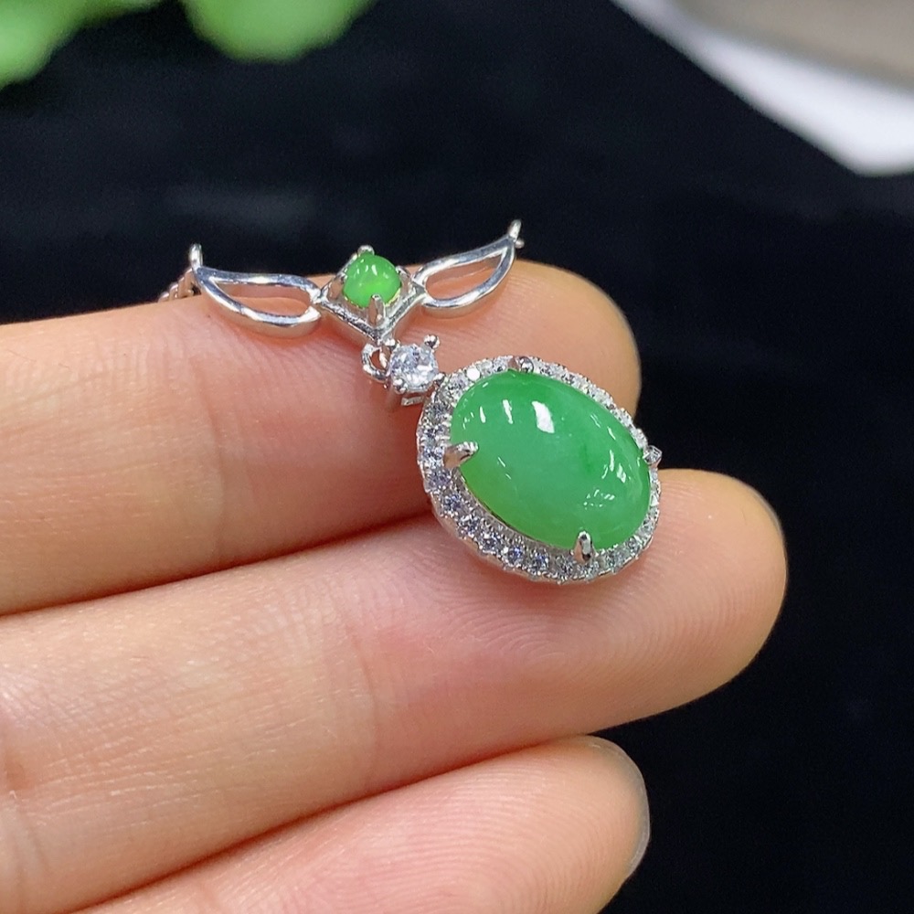 Jadeite Inlaid Pendant Non-Gold Total Weight Approx. 4.1g (Incl. Chain)