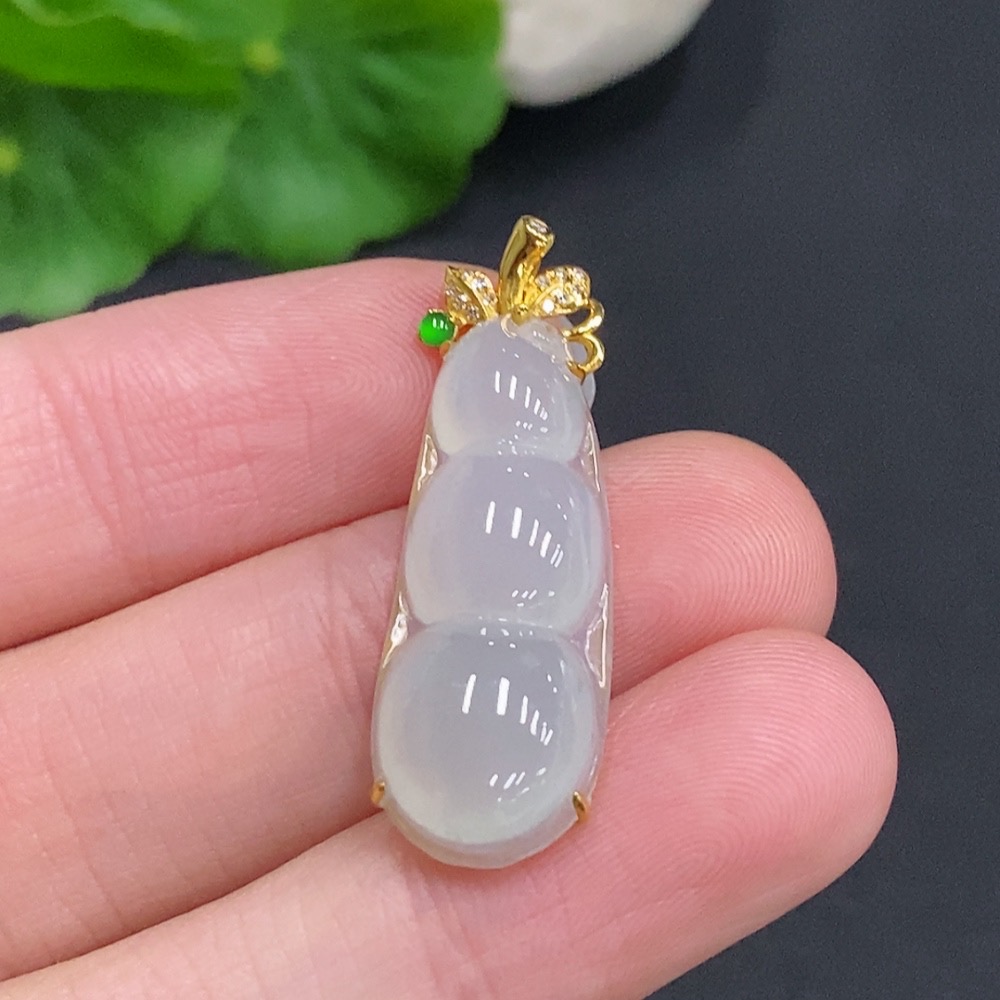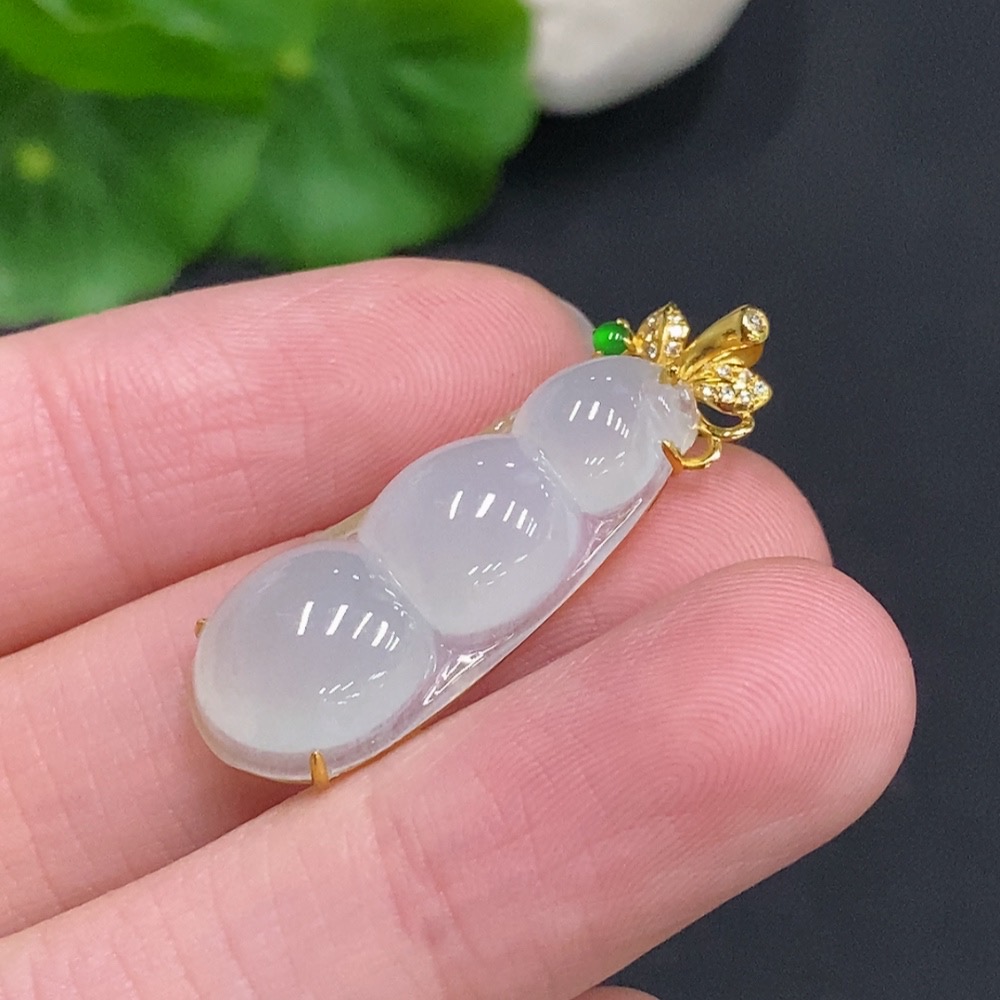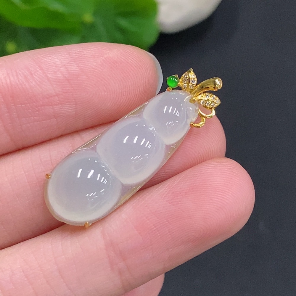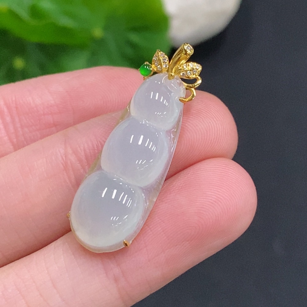 Jadeite Lucky Bean Pendant 18k Gold Total Weight Approx. 3.3g Diamond Accented