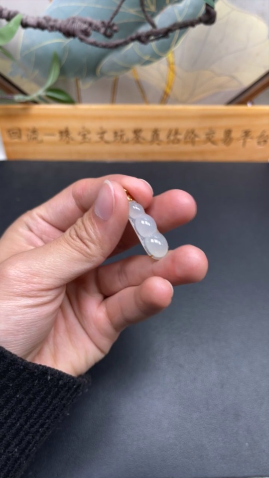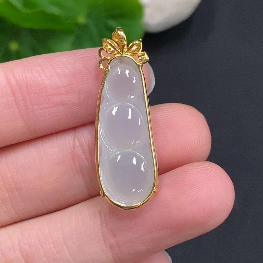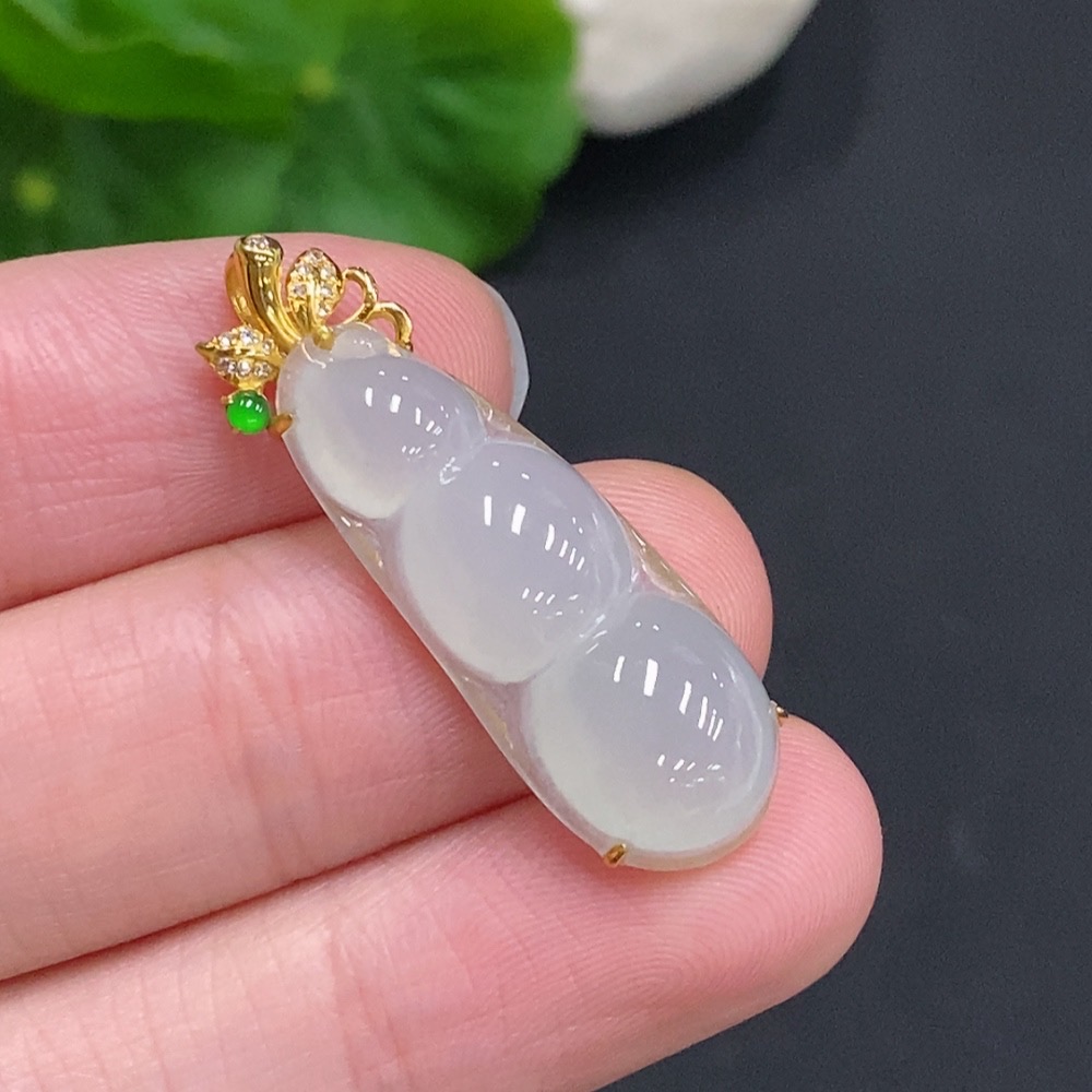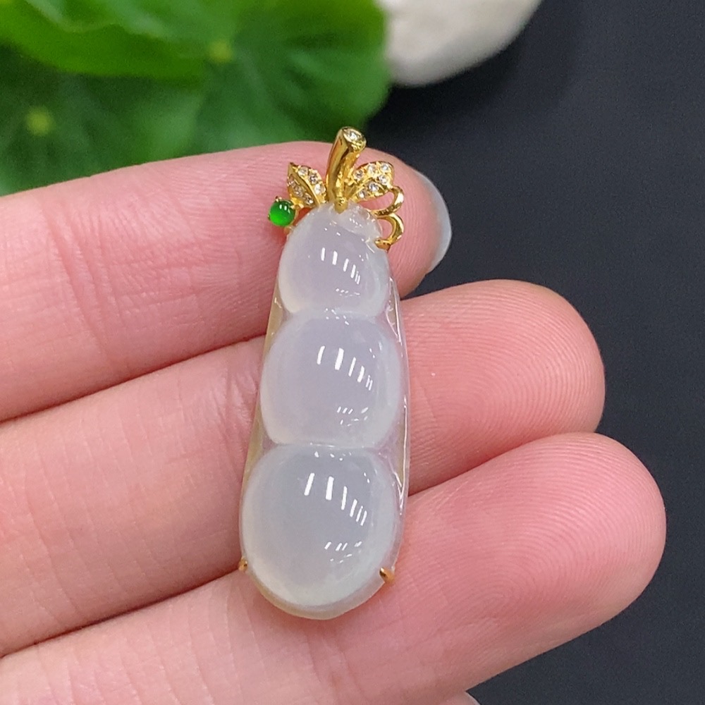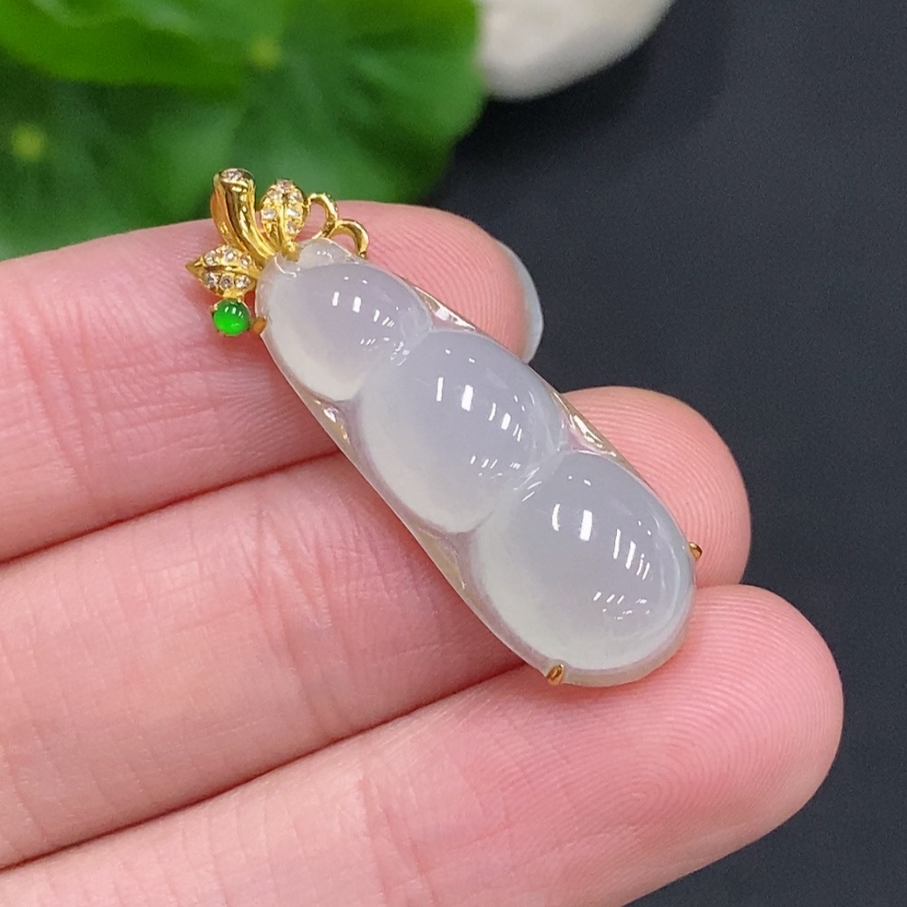 Jadeite Lucky Bean Pendant 18k Gold Total Weight Approx. 3.3g Diamond Accented