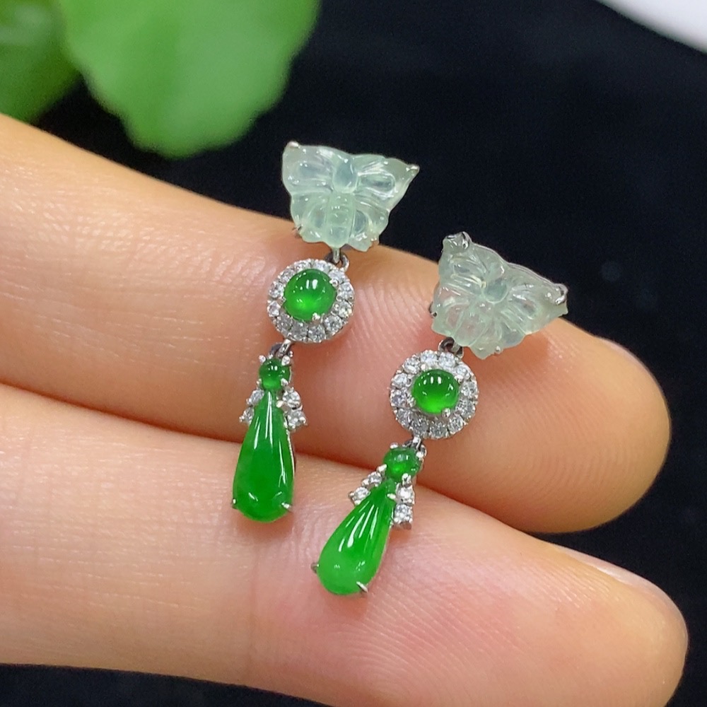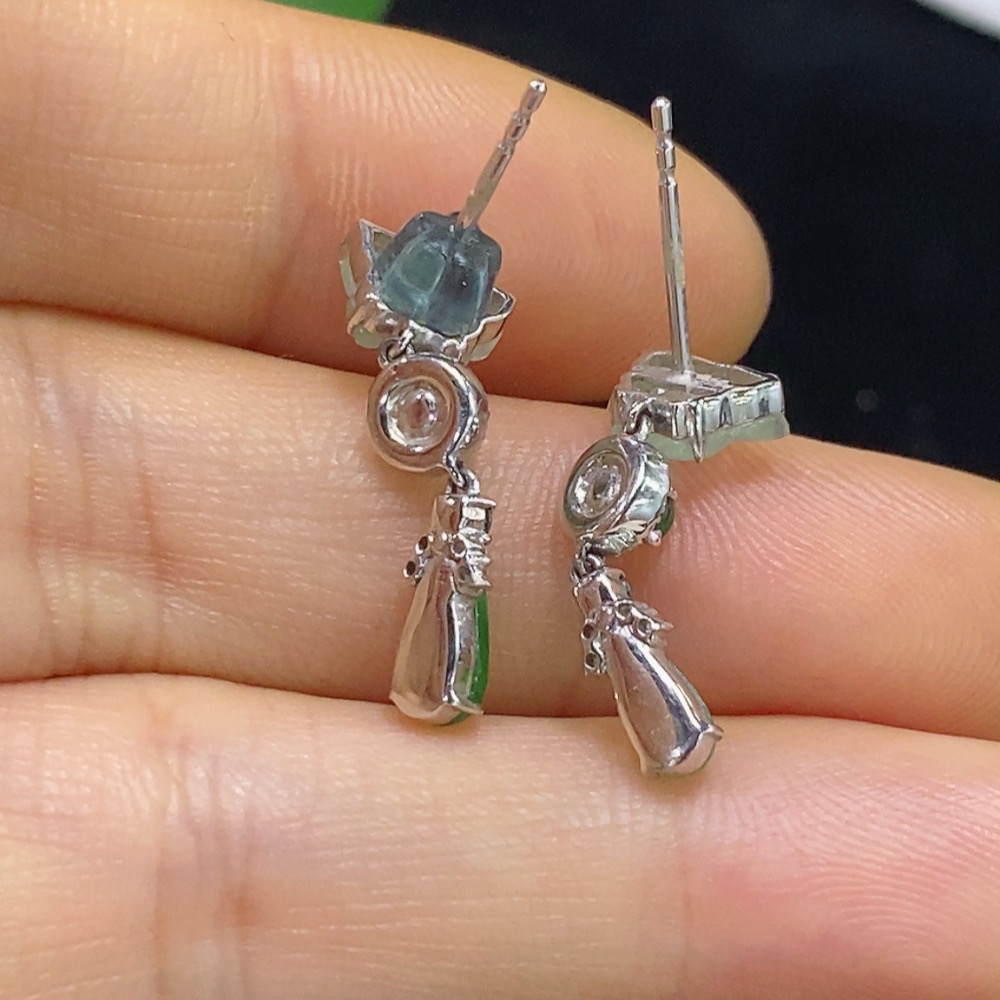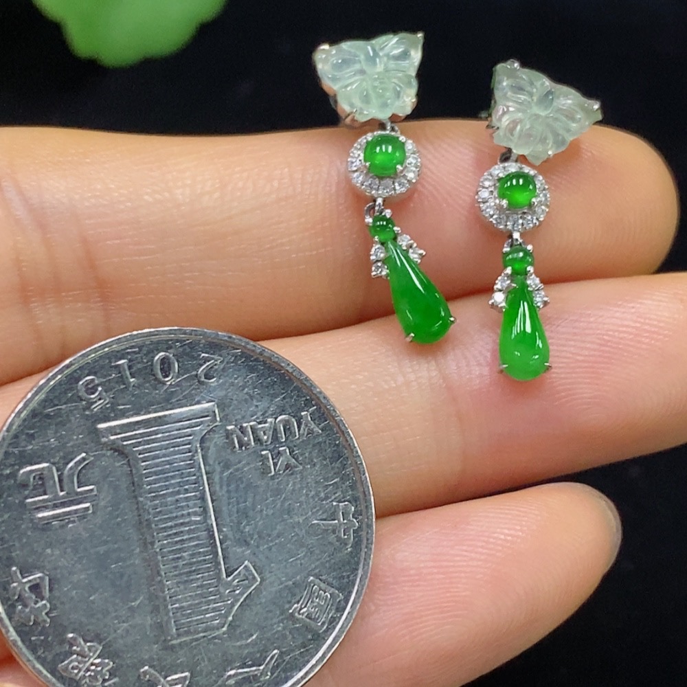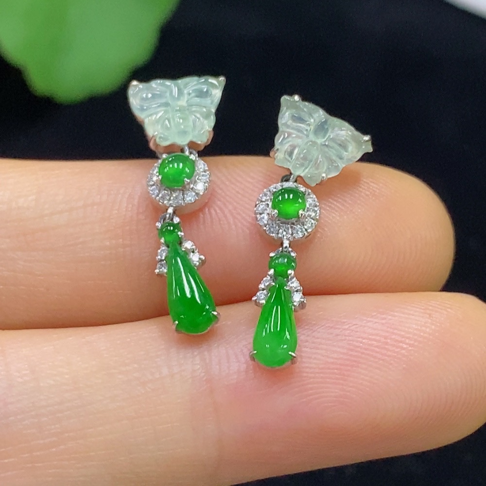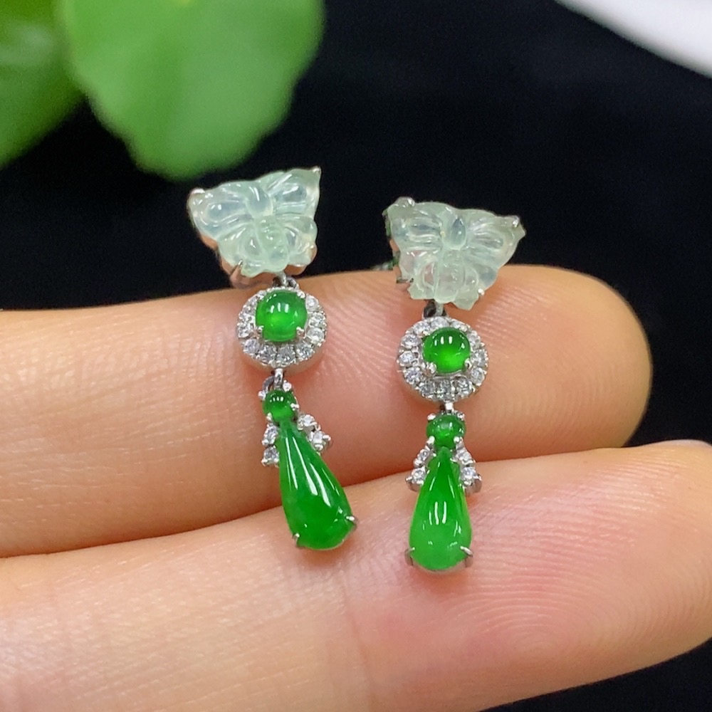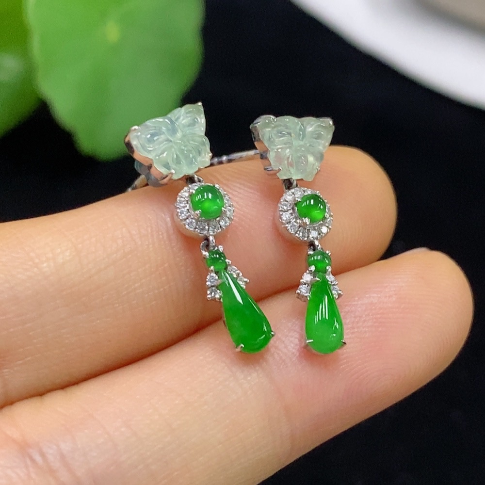 Jadeite Inlaid Earrings 18k Total Weight Approx. 3.15g (Excluding Ear Caps) With Diamond Accents