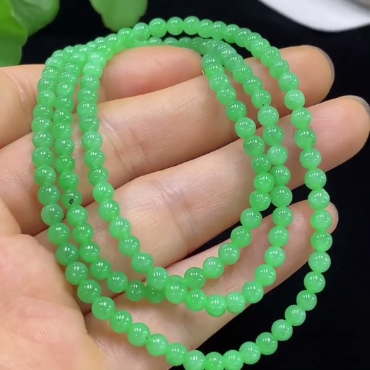 Jadeite Bead Necklace Approx. 3.6mm Non-Gold Total Weight Approx. 16.6g