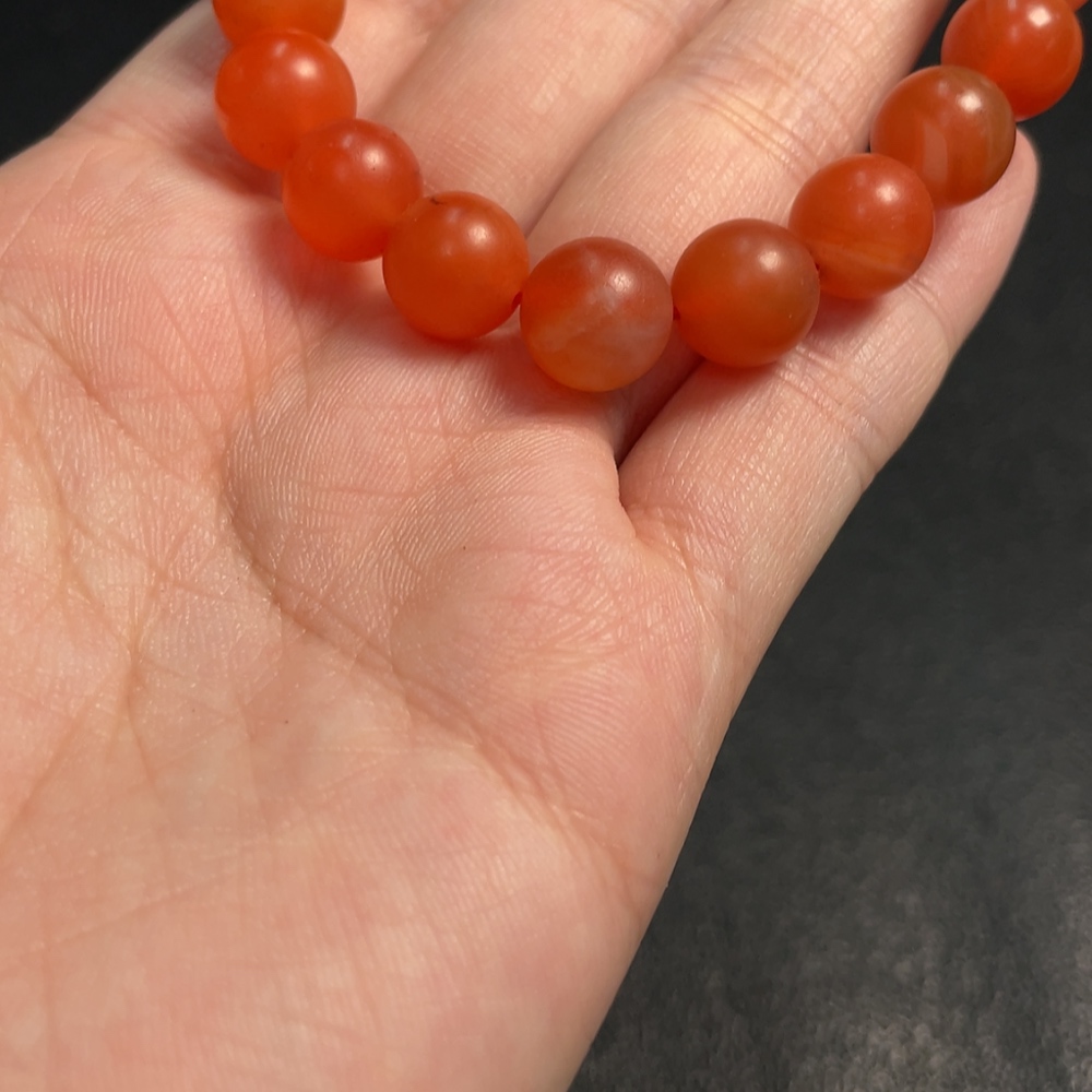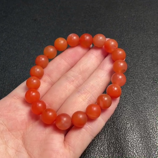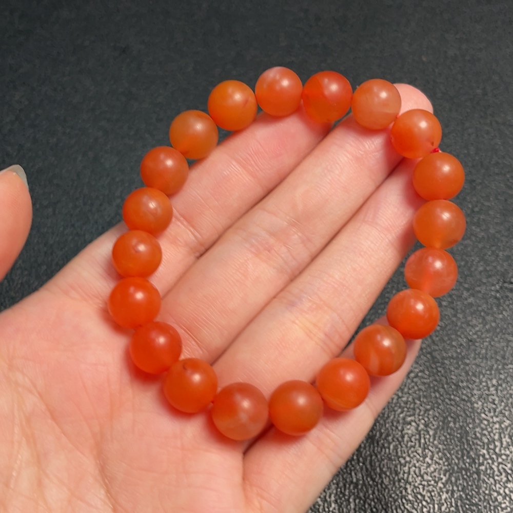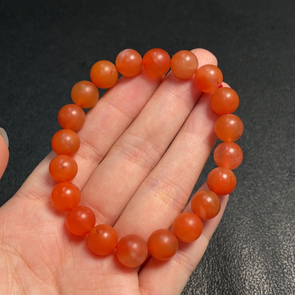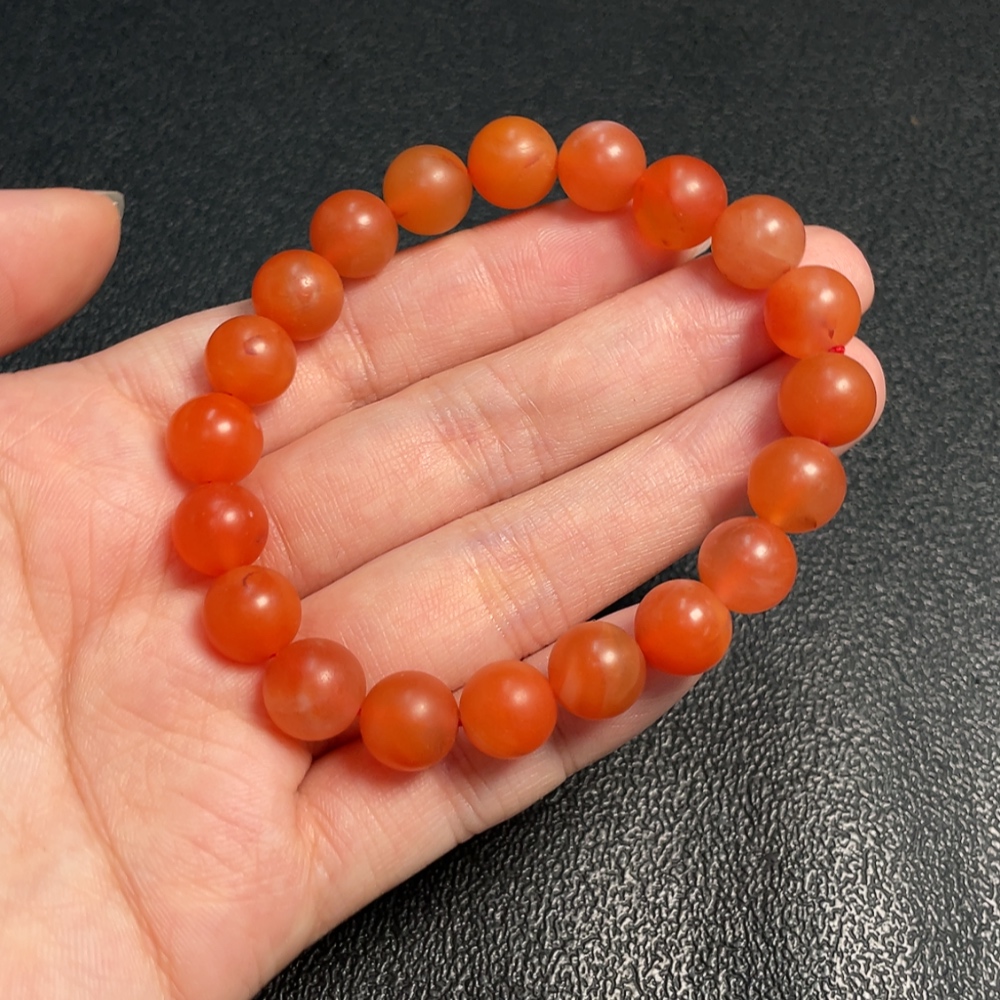Red Agate Bracelet with Visible Organic Matter, Total Weight Approximately 24.29g, Bead Size Around 9.5mm