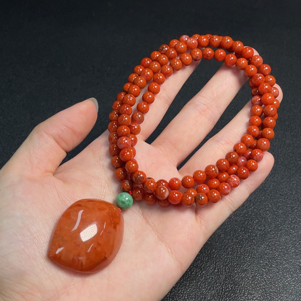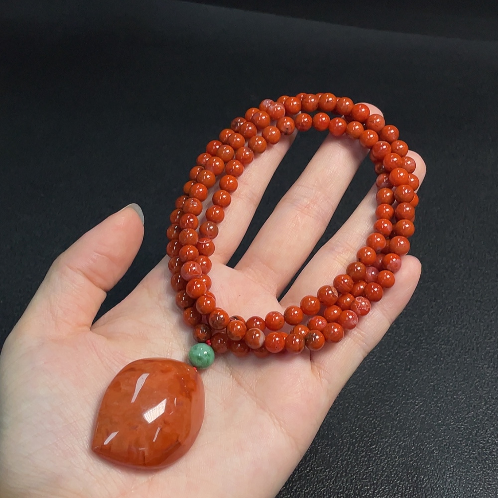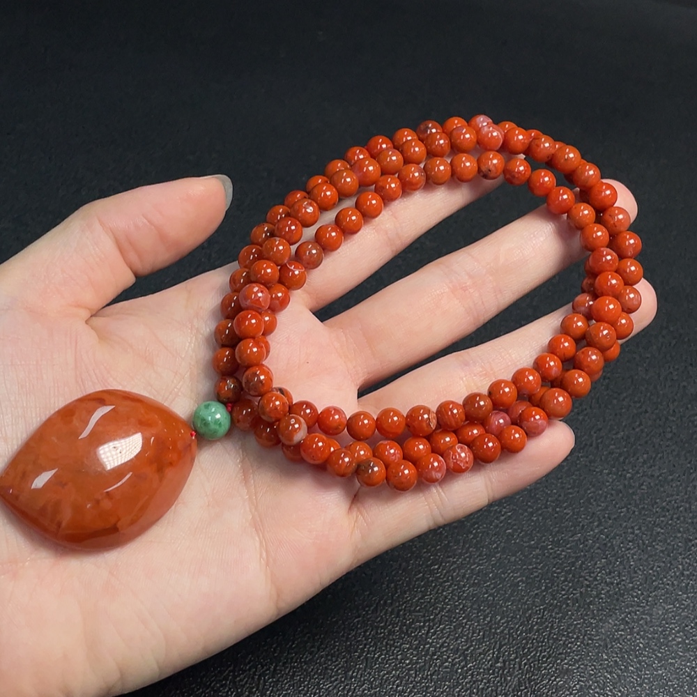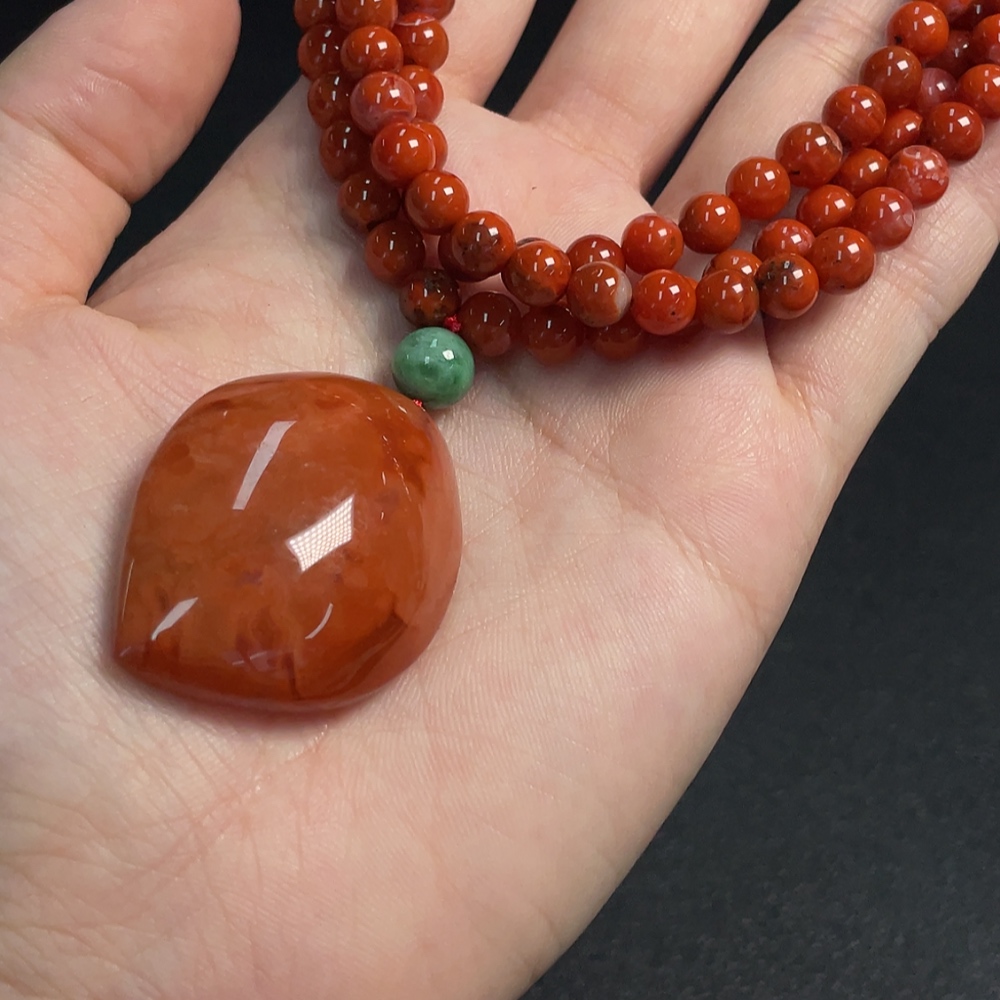 South Red Agate Pendant with Visible Organic Matter, Non-Natural Accent Stones, Total Weight Approximately 54.3g Including Chain