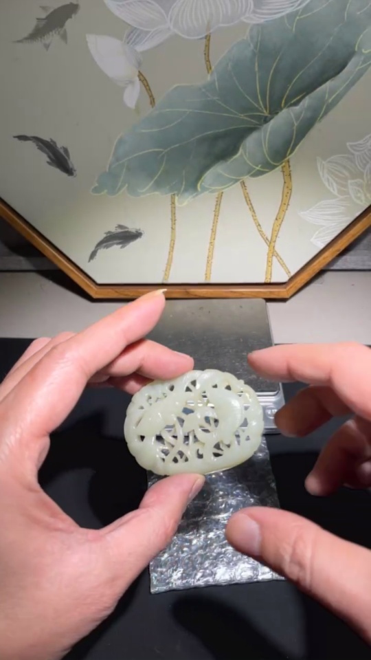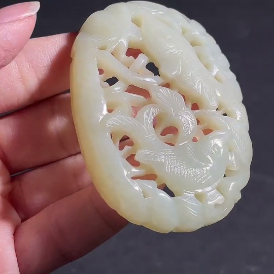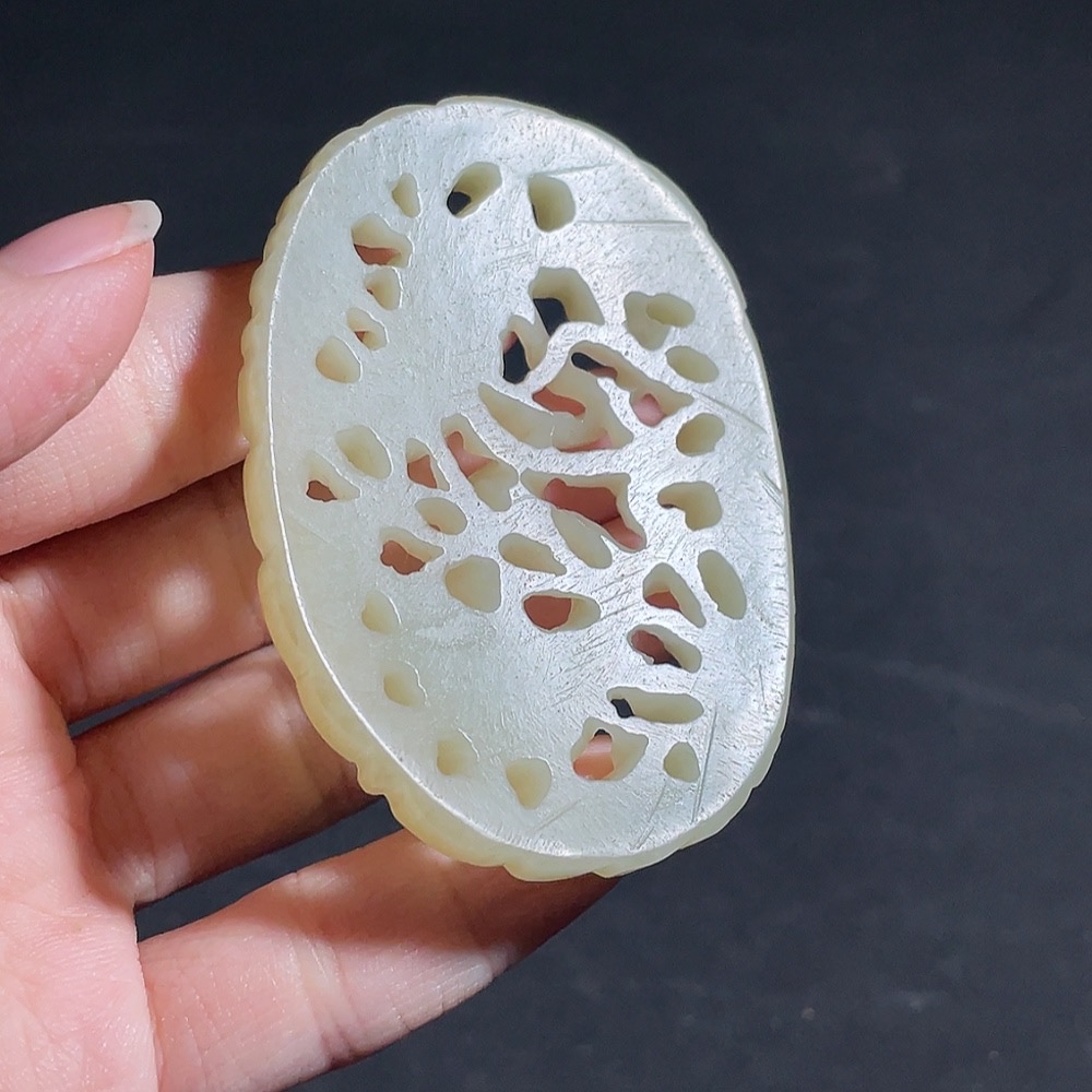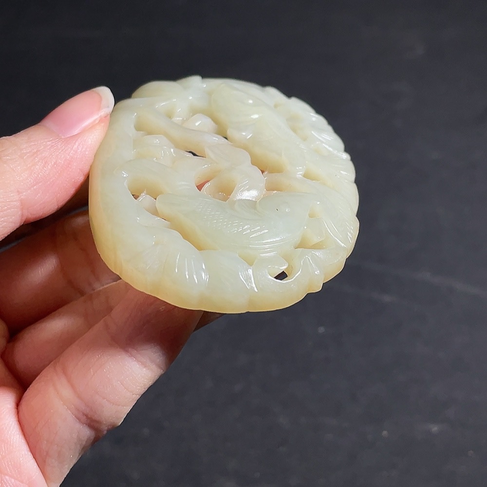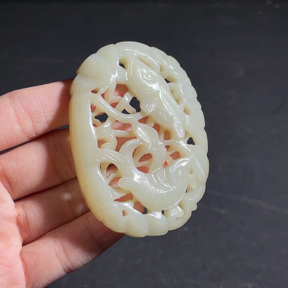 Qing Dynasty Hetian White Jade Openwork Double Fish Old Jade
