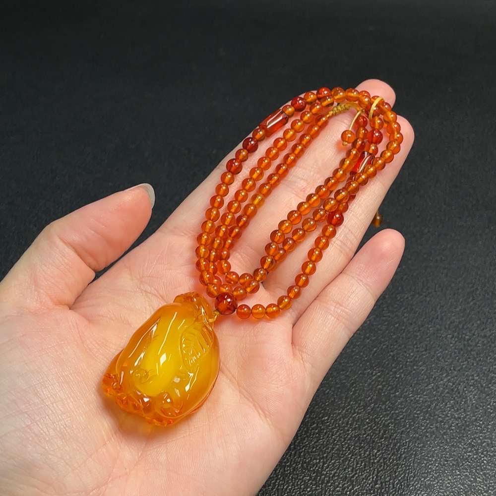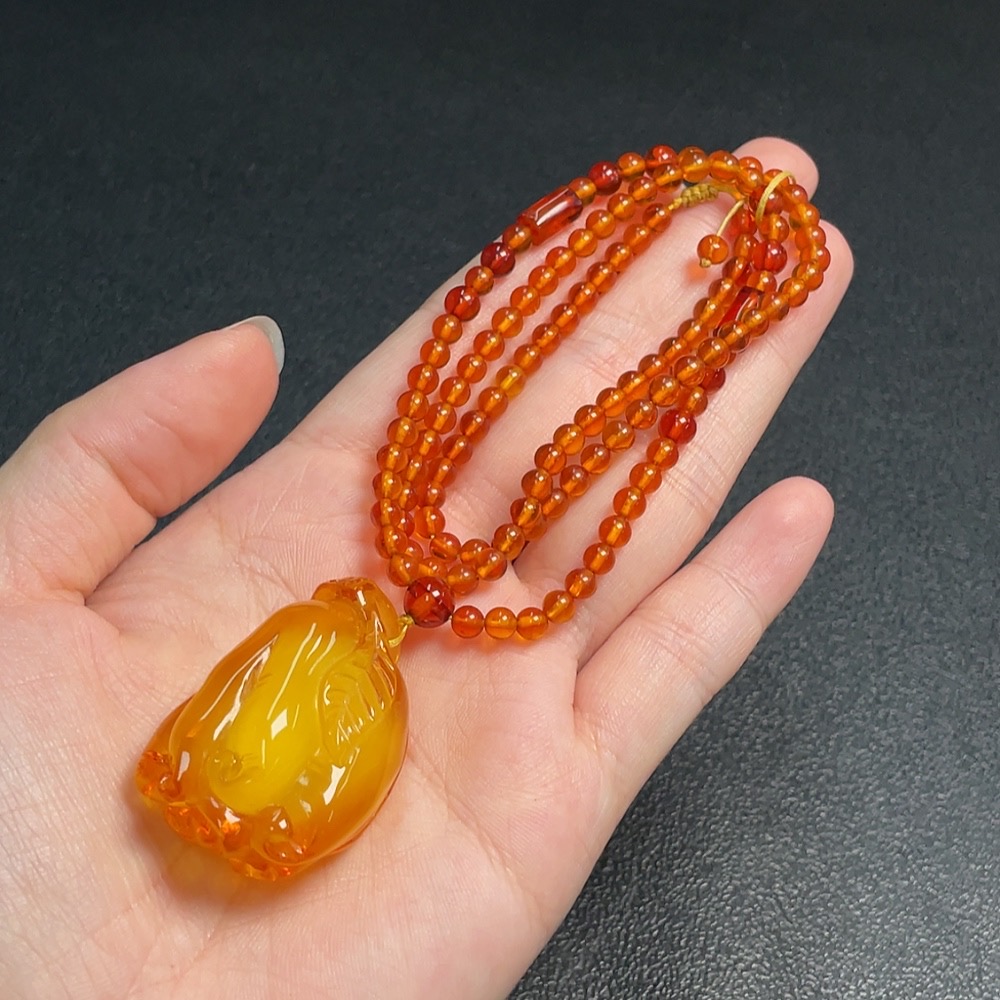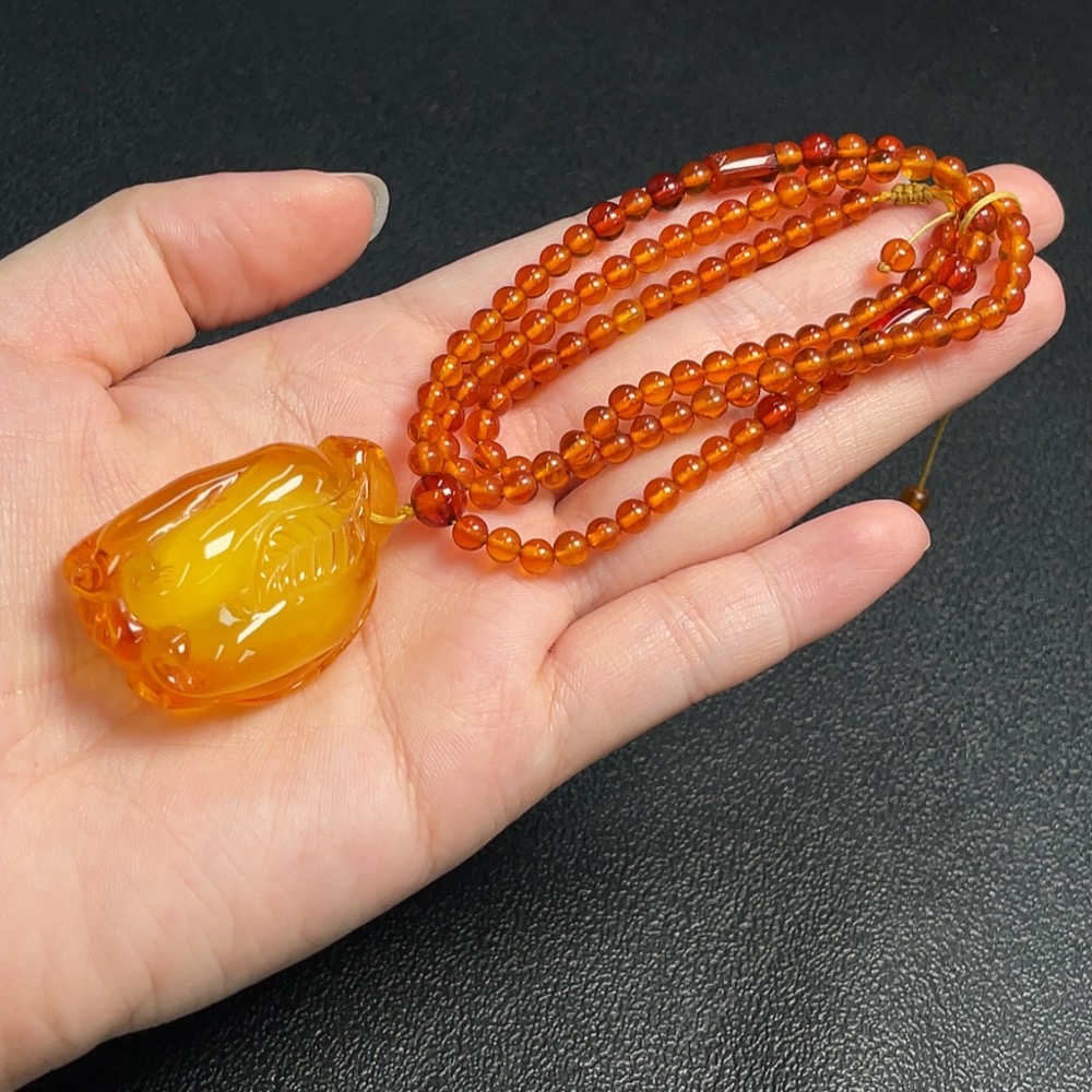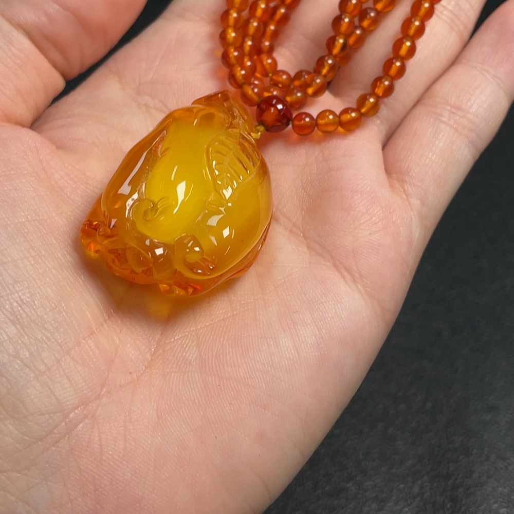 Amber Beeswax Pendant with Colorless Coating, Total Weight Approximately 15.7g