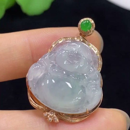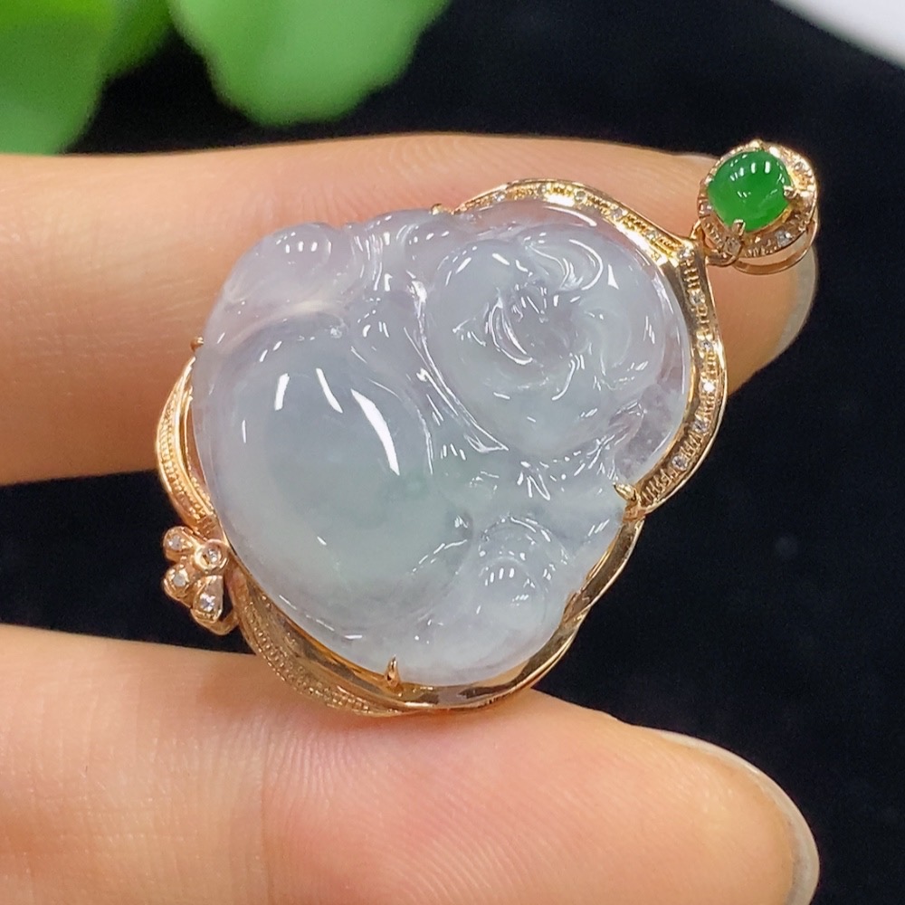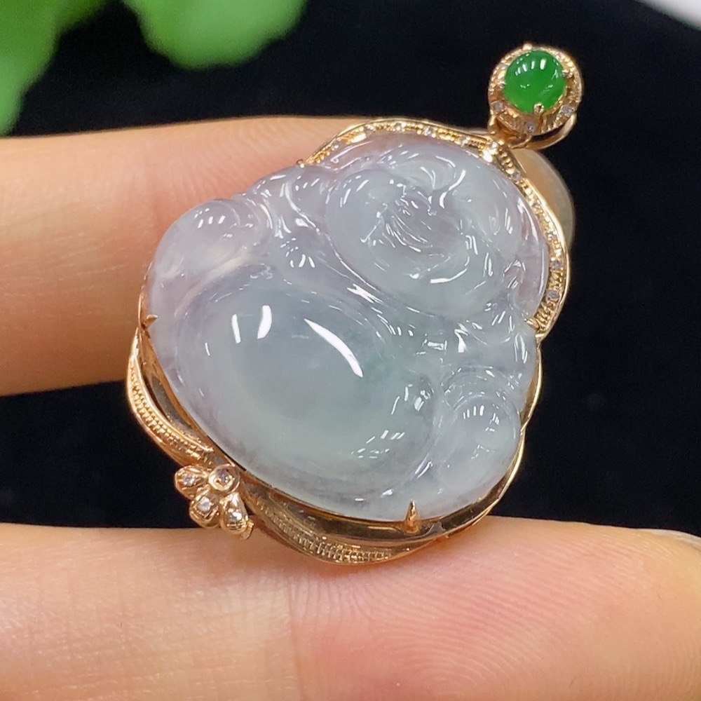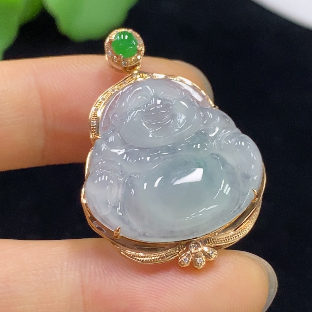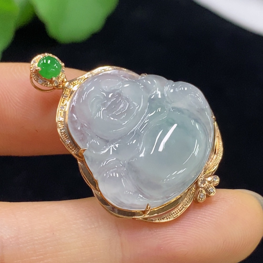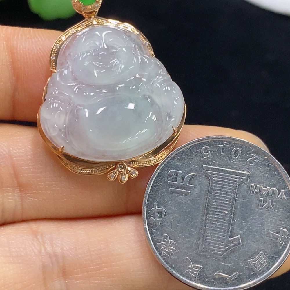 Jadeite Buddha Pendant with 18K Gold and Diamond Accents, Total Weight Approximately 4.37g