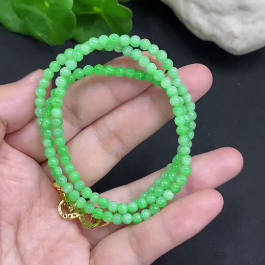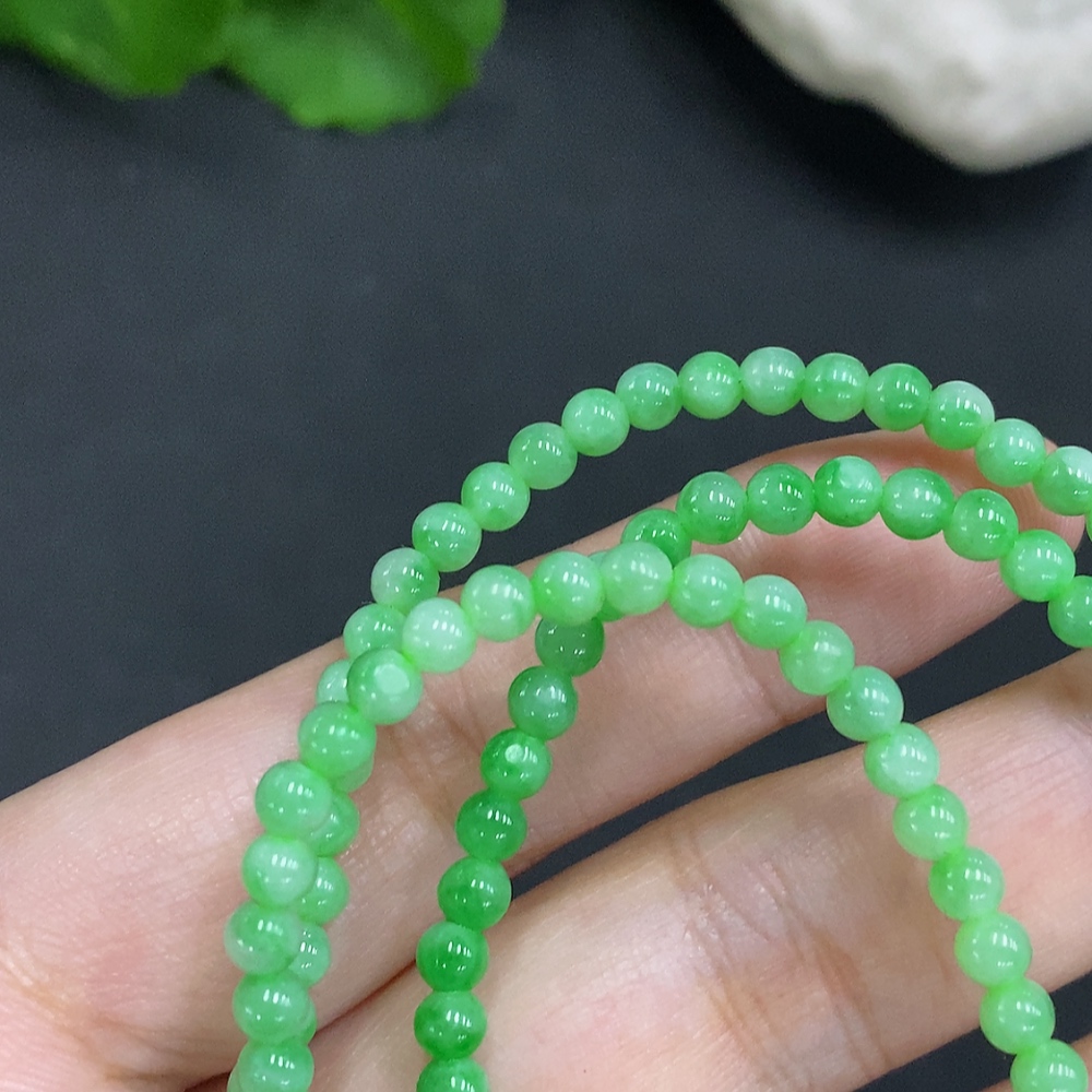 Jadeite Bead Necklace Approx. 3.7mm Non-Gold Total Weight Approx. 15.3g