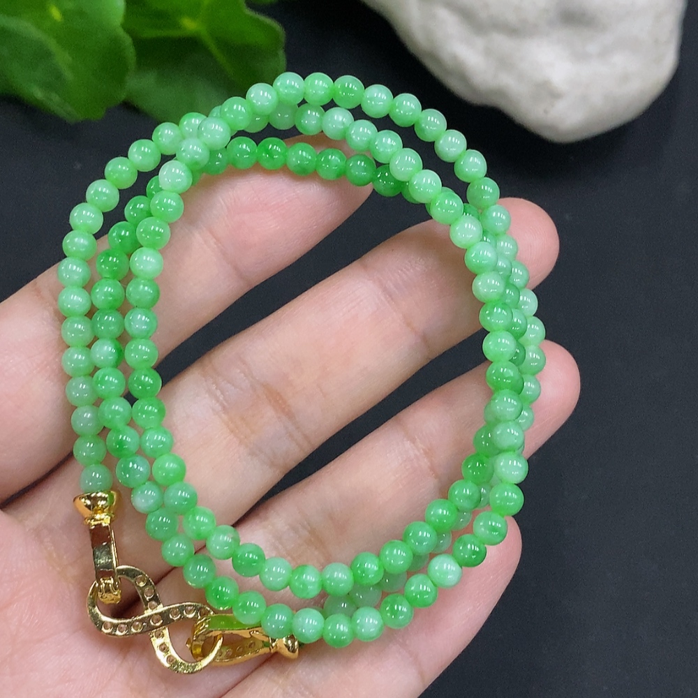 Trezaar - Jadeite Bead Necklace Approx. 3.7mm Non-Gold Total Weight Approx. 15.3g