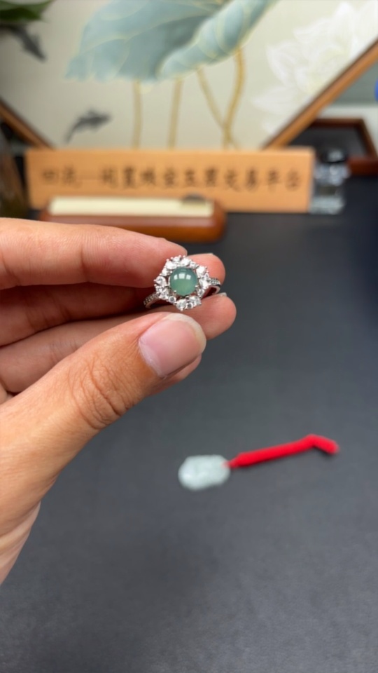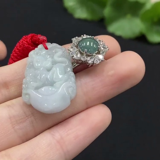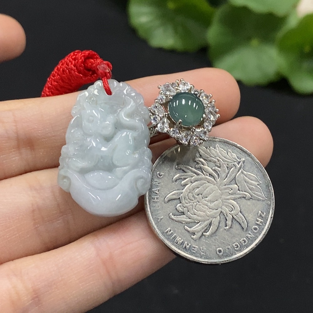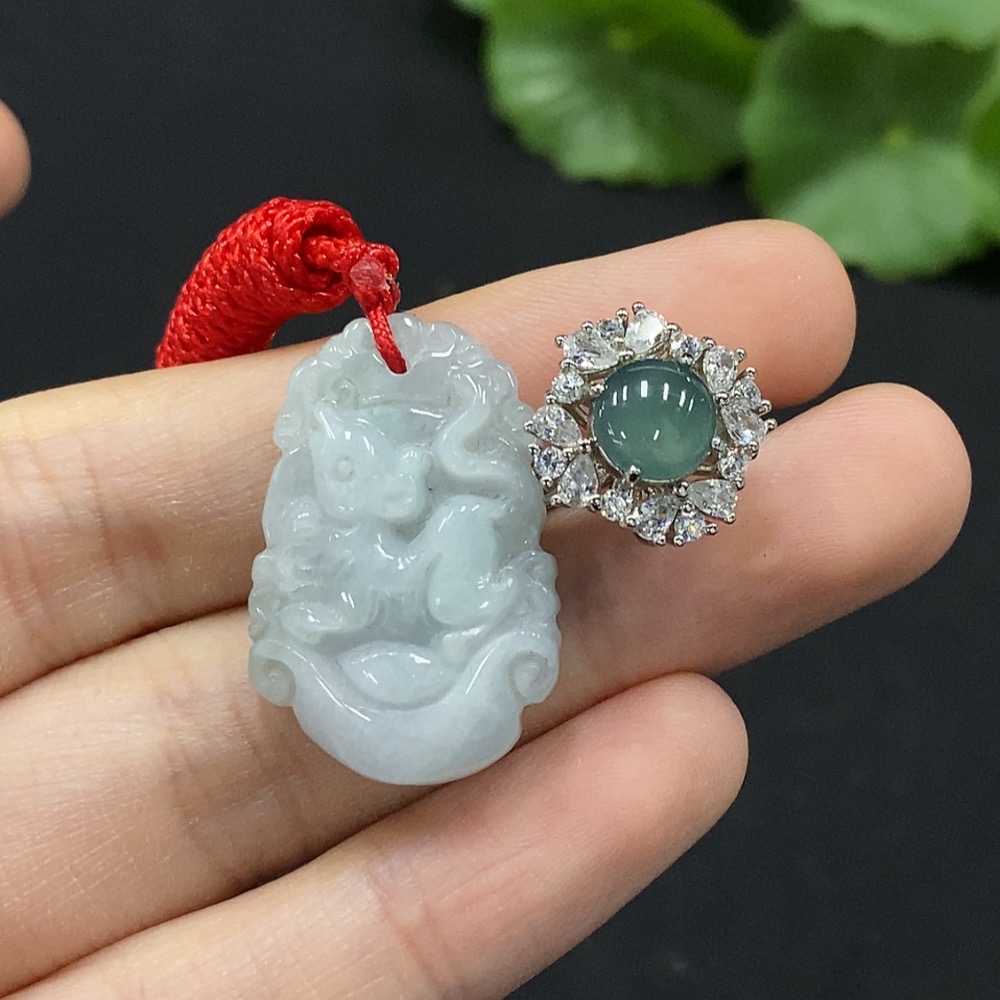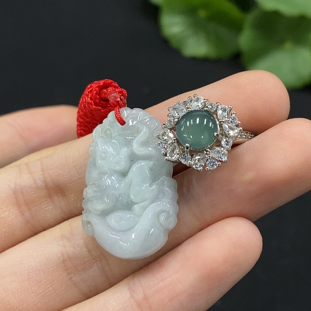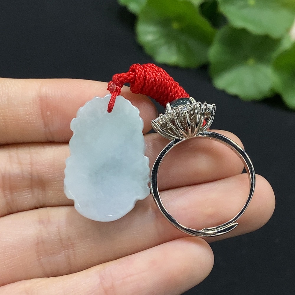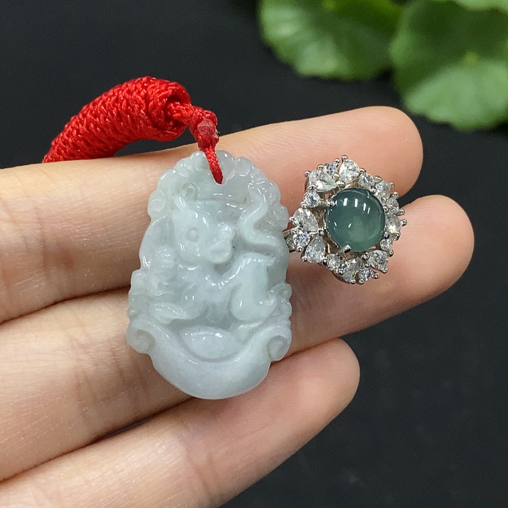 Jadeite Zodiac Rat Pendant/Adjustable Ring Non-Gold Inlaid