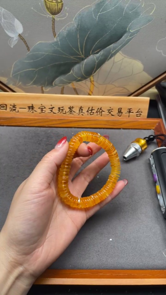 Amber Beeswax Bracelet, Total Weight Approx. 15.06g, Size About 10.2mm