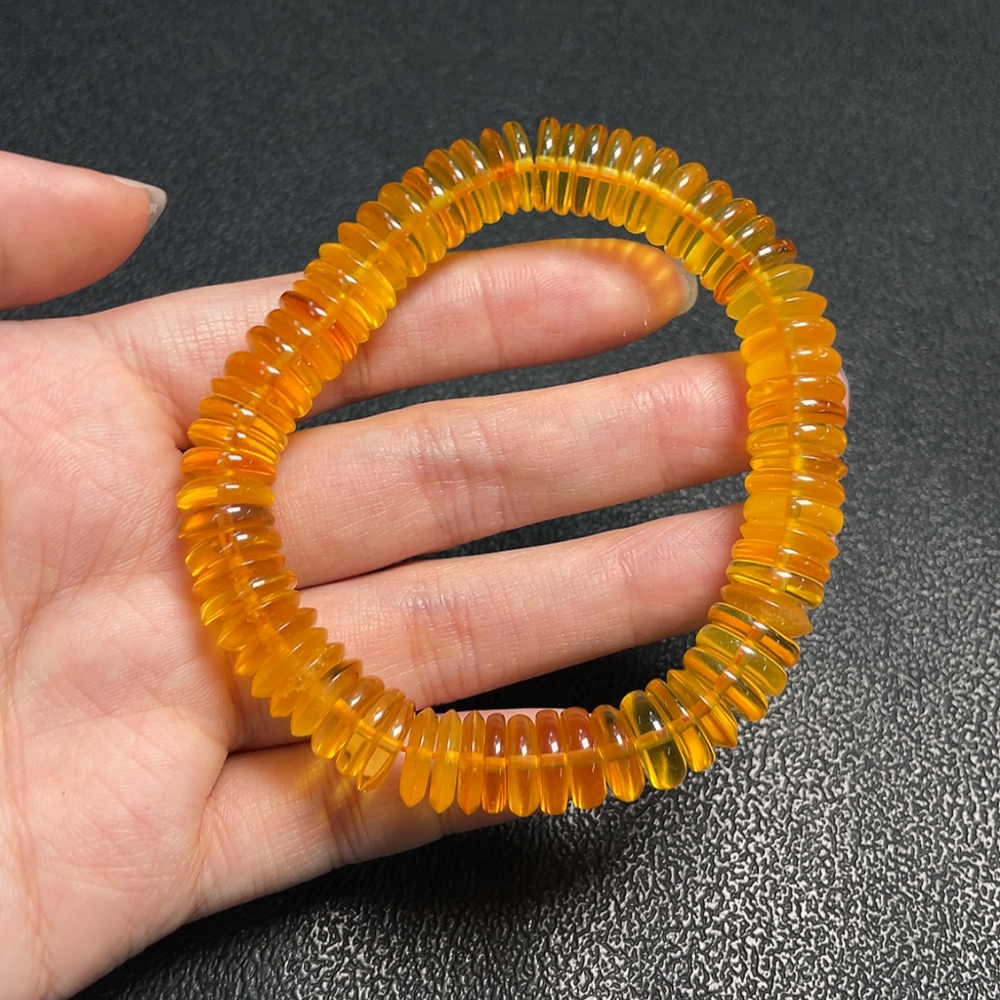 Amber Beeswax Bracelet, Total Weight Approx. 14.84g, Size About 10.2mm